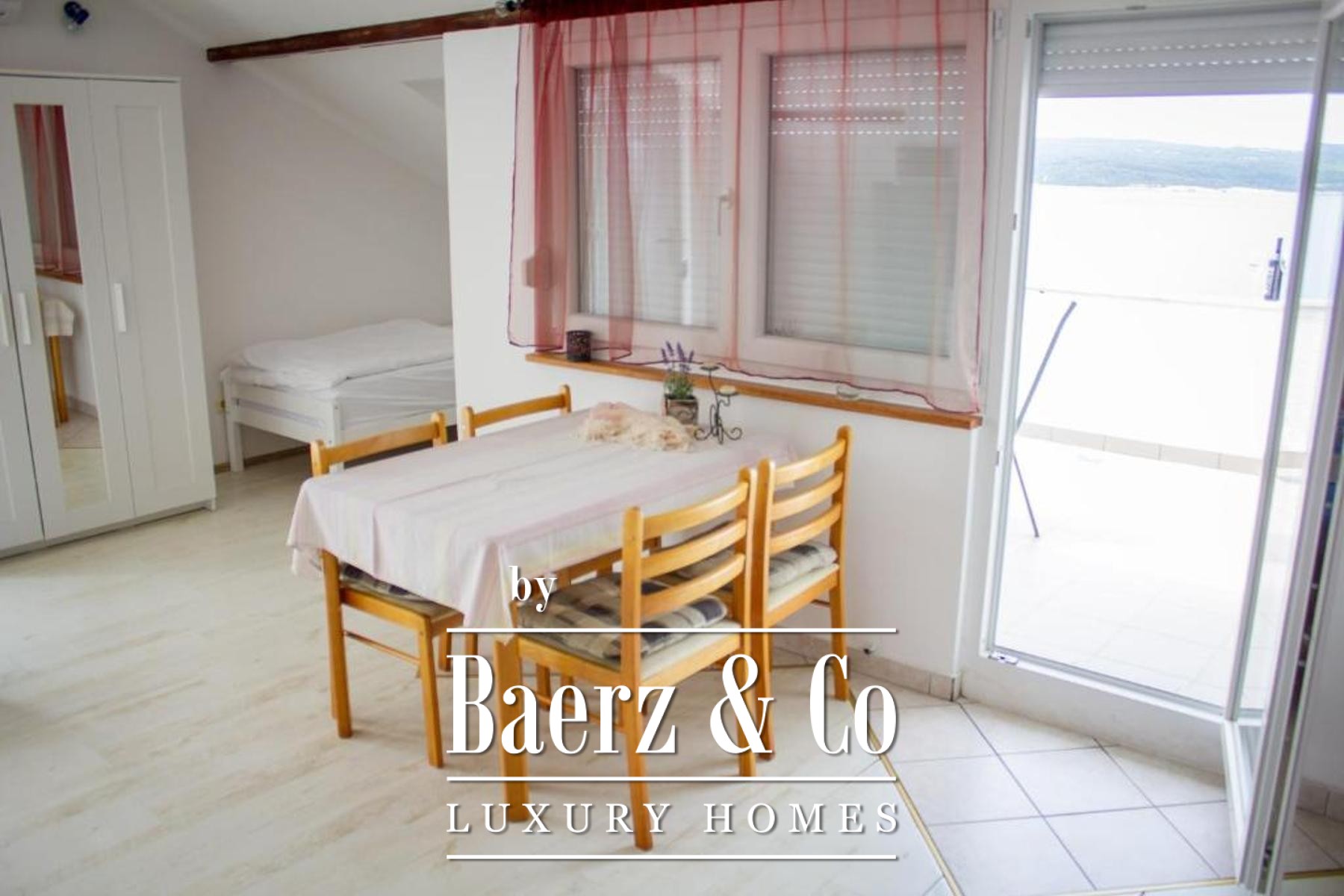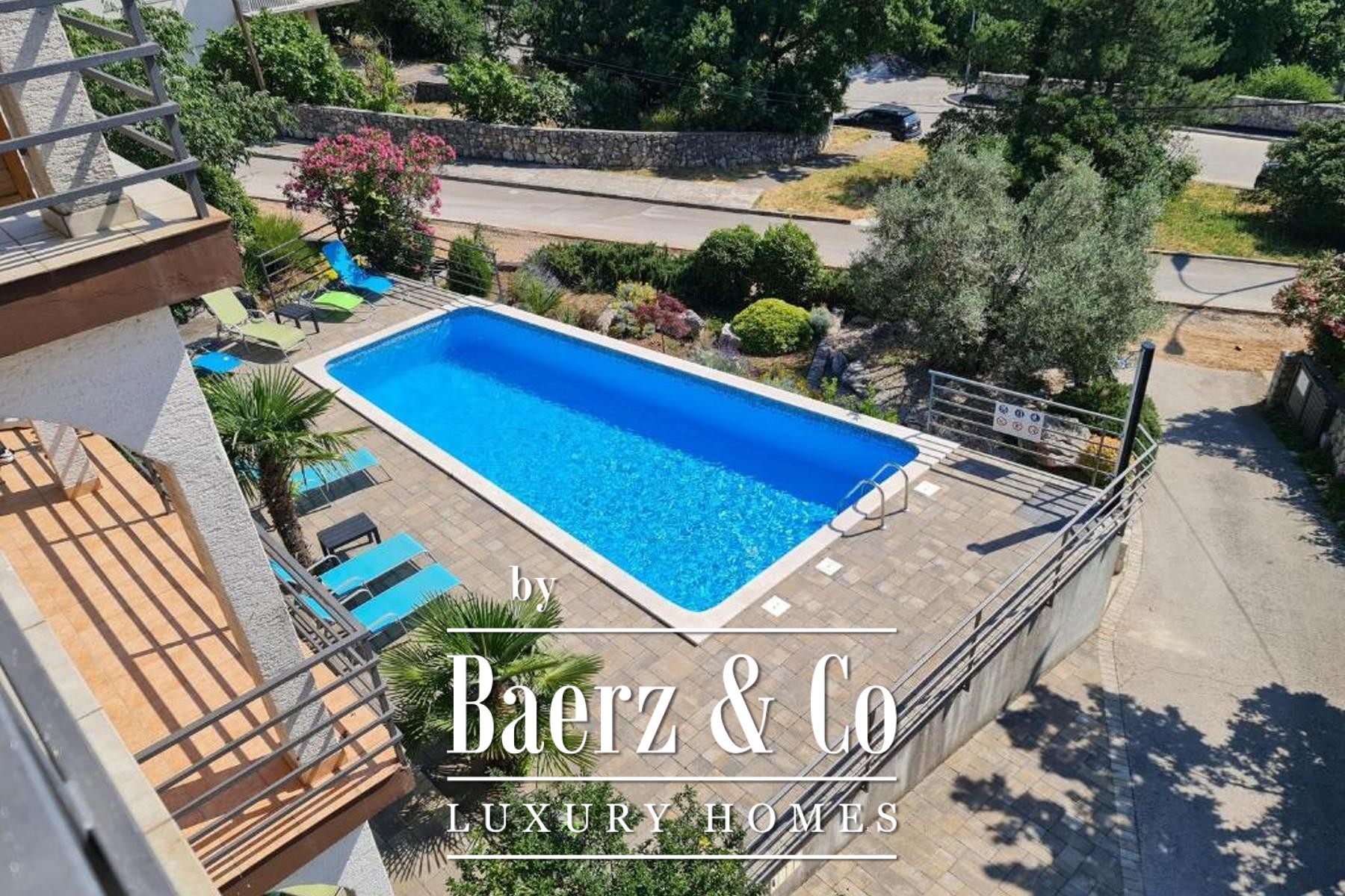 Apartment house Crikvenica offers a rare vantage point over the Adriatic, set on a landscaped 759 m² plot that commands sweeping sea vistas. This detached property encompasses 602 m² of living space across a ground floor, two upper levels and a high attic, quietly positioned just 500 metres from the coast.