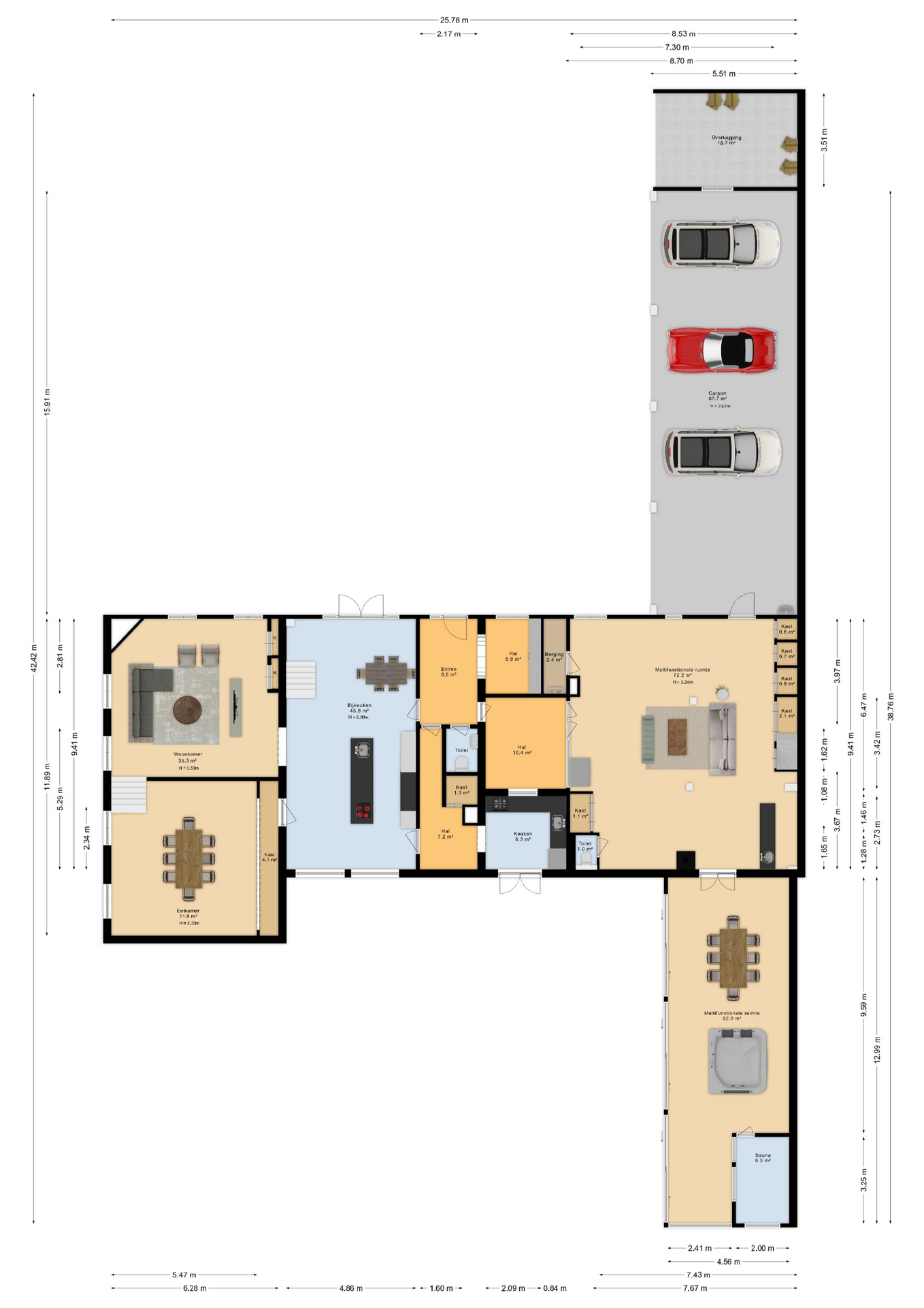 - Multifunctional stable space (85 m²) with bar and pantry;