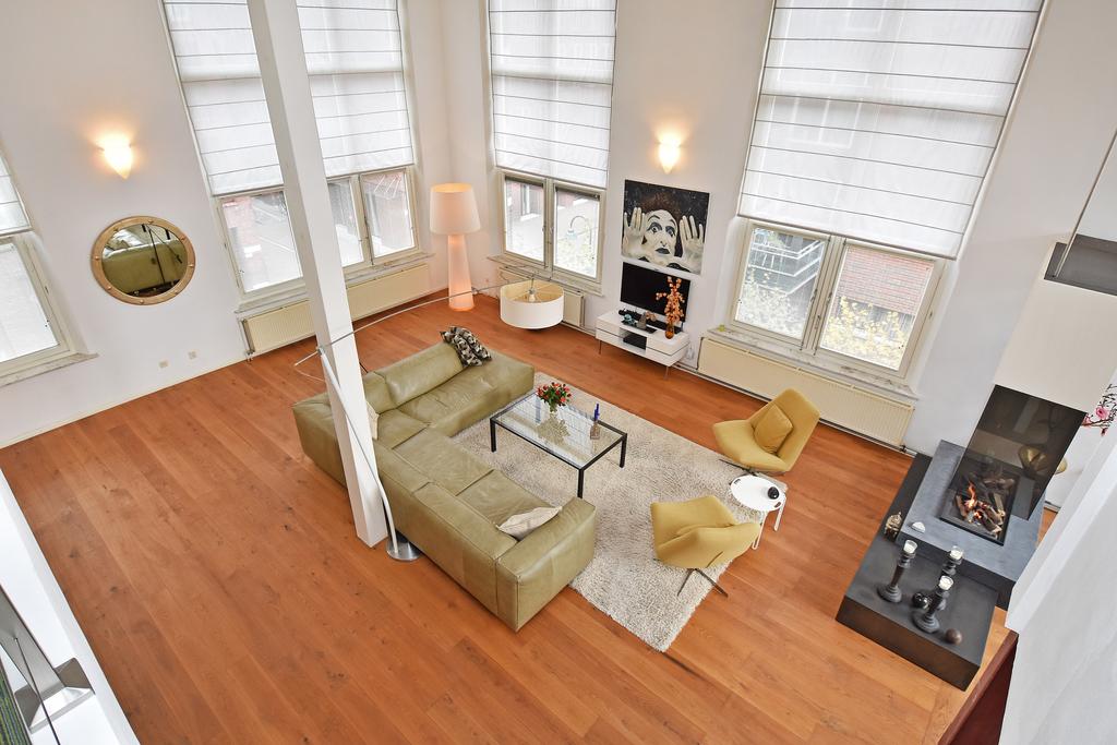 Het appartement is gelegen op de eerste verdieping en heeft twee woonlagen in een monumentaal complex dat is voorzien van een lift. Het appartement combineert de sfeer van een loft met de ruimte van een herenhuis.