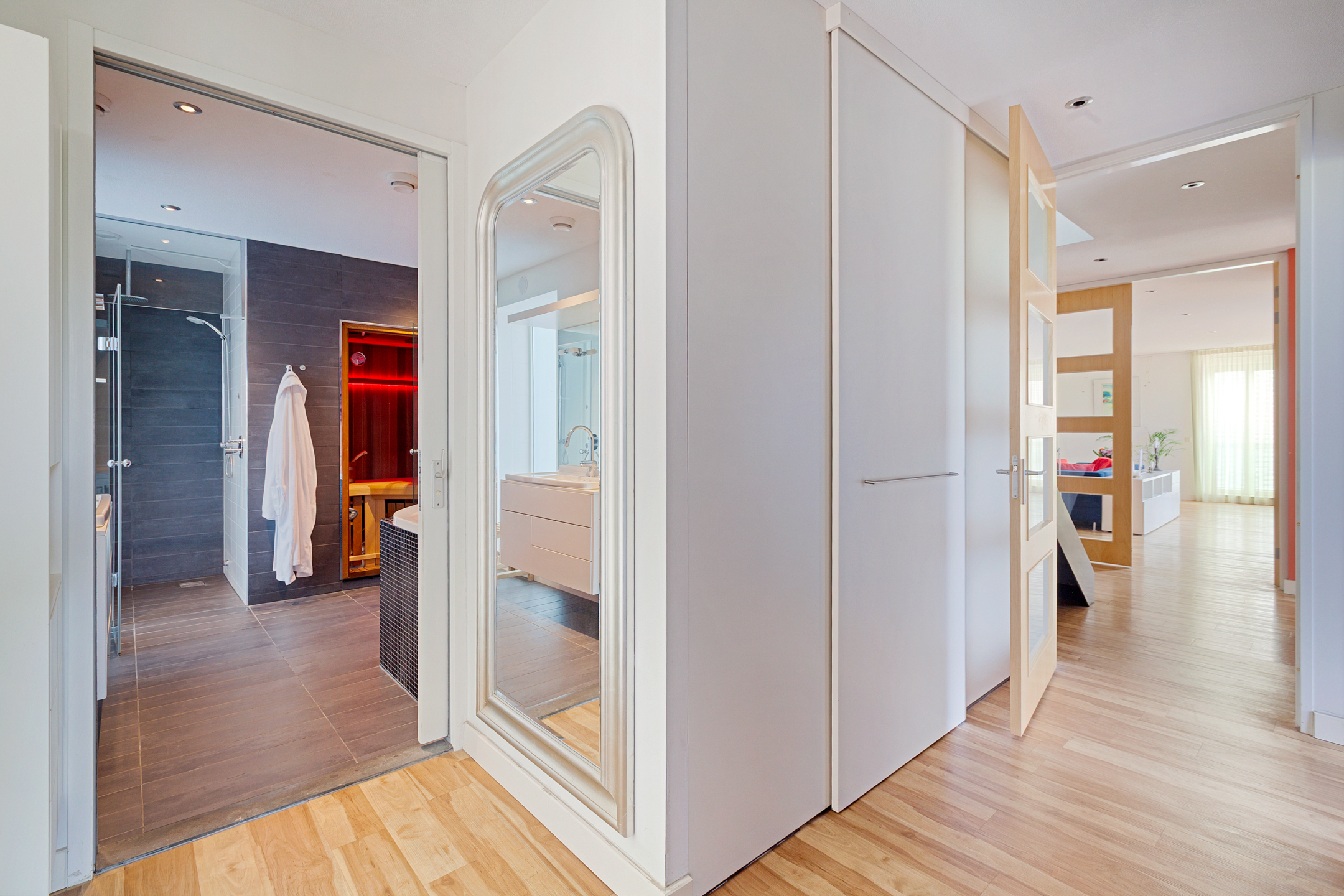 The entire apartment is equipped with underfloor heating and cooling.