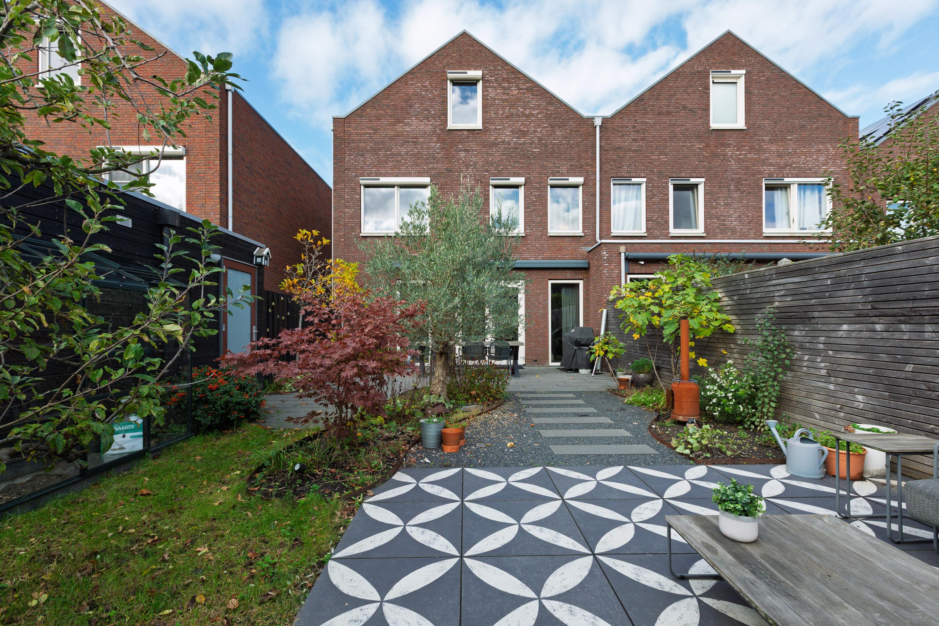 This spacious semi-detached house is located on a child-friendly and popular street and offers a living area of no less than 175 m², a beautiful sunny south-facing garden and a driveway on private property.