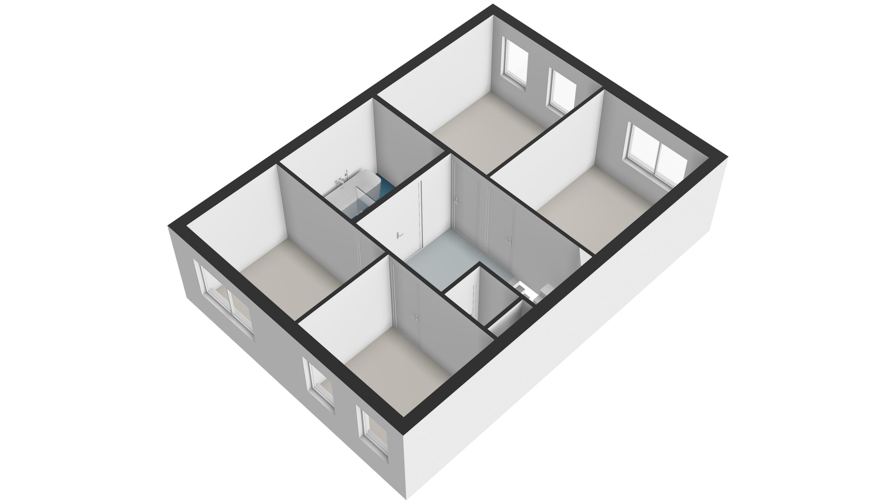 There are two spacious rooms at the rear, while two more bedrooms are located at the front. In the middle is the luxurious bathroom with a walk-in shower, bathtub, double sink and designer radiator. There is also a separate second toilet on this floor.