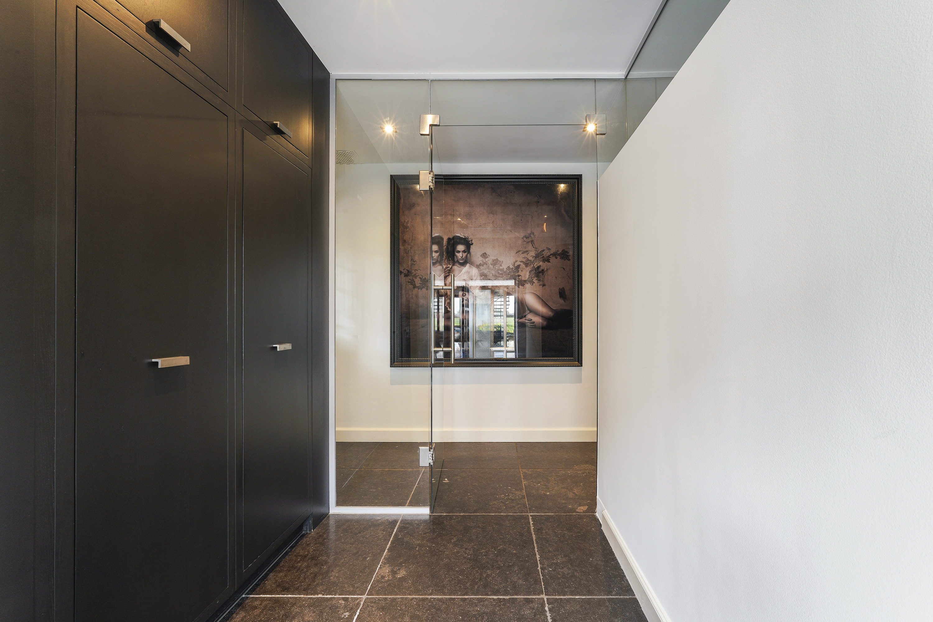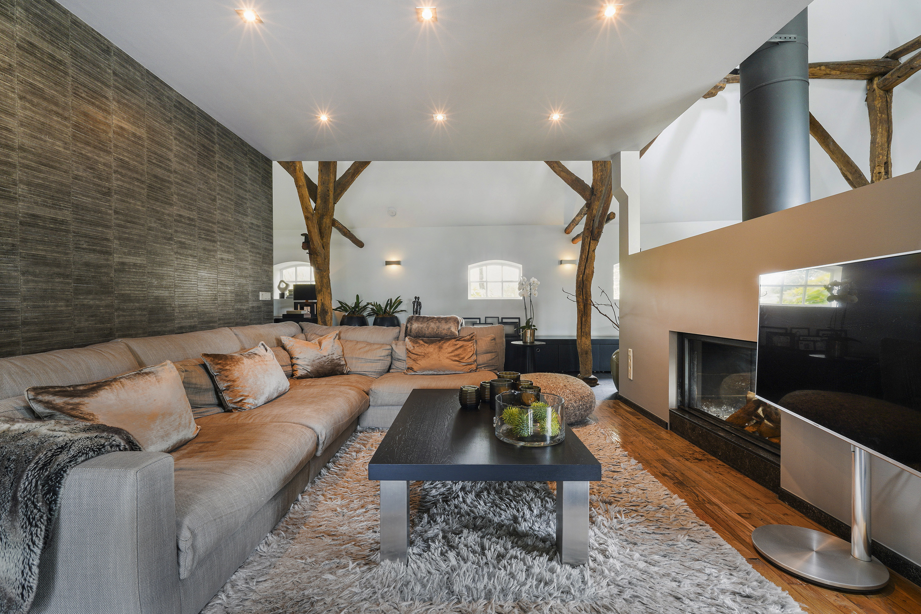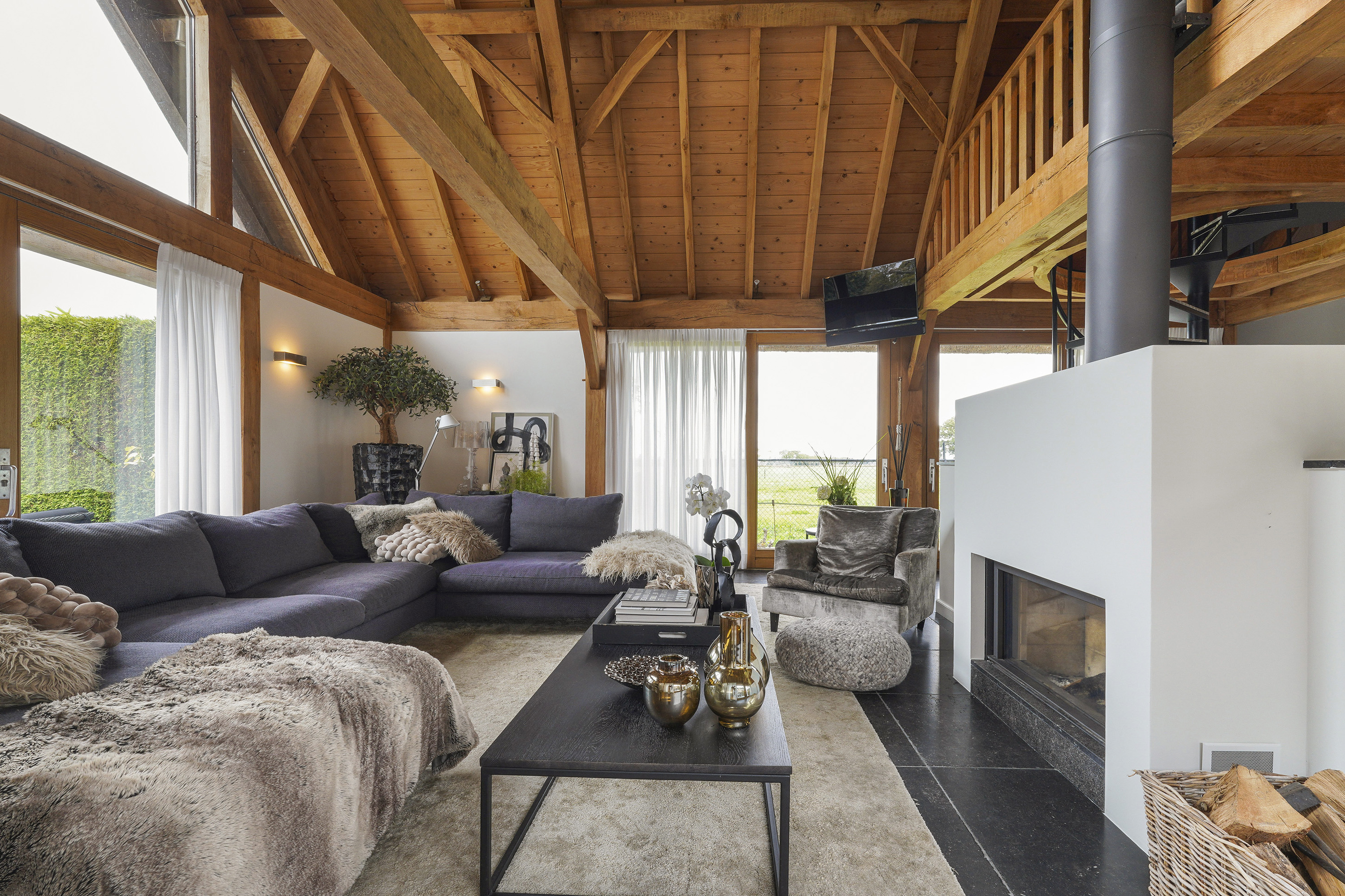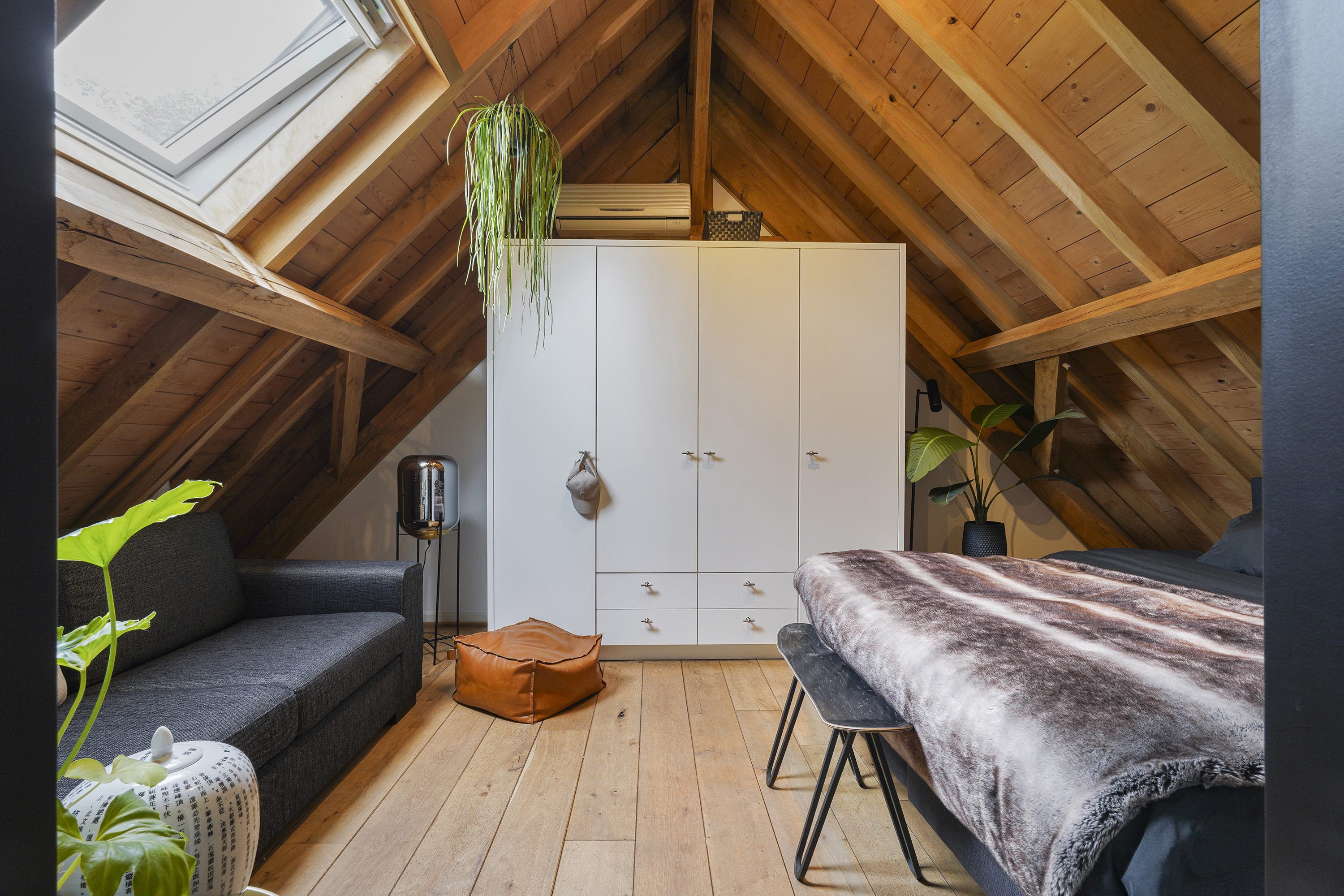 The “Handmade by Rasenberg” guesthouse is a true gem, with a spacious living area, a four-person sauna, a pantry kitchen, and an open fireplace. The guesthouse is beautifully insulated and features large sliding doors, allowing natural light to flood the space. A steel spiral staircase leads to the study and private bedroom on the upper floor. The high-quality thatched roof complements the farmhouse, creating a harmonious and luxurious atmosphere.