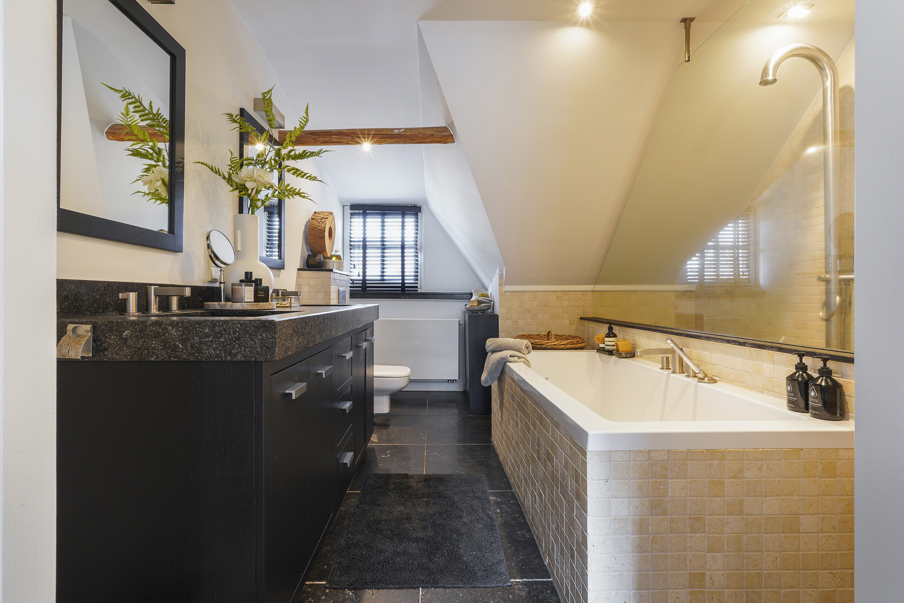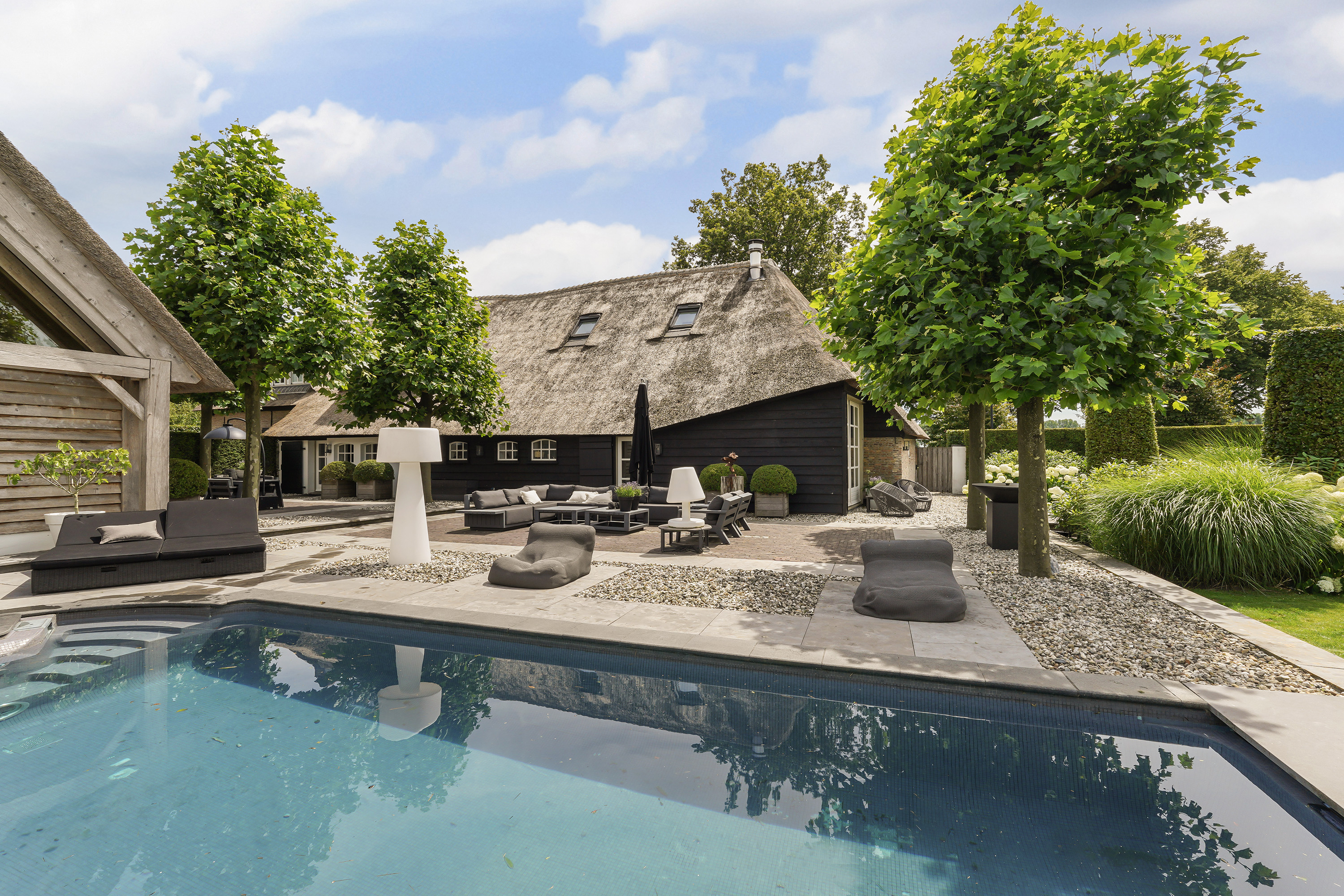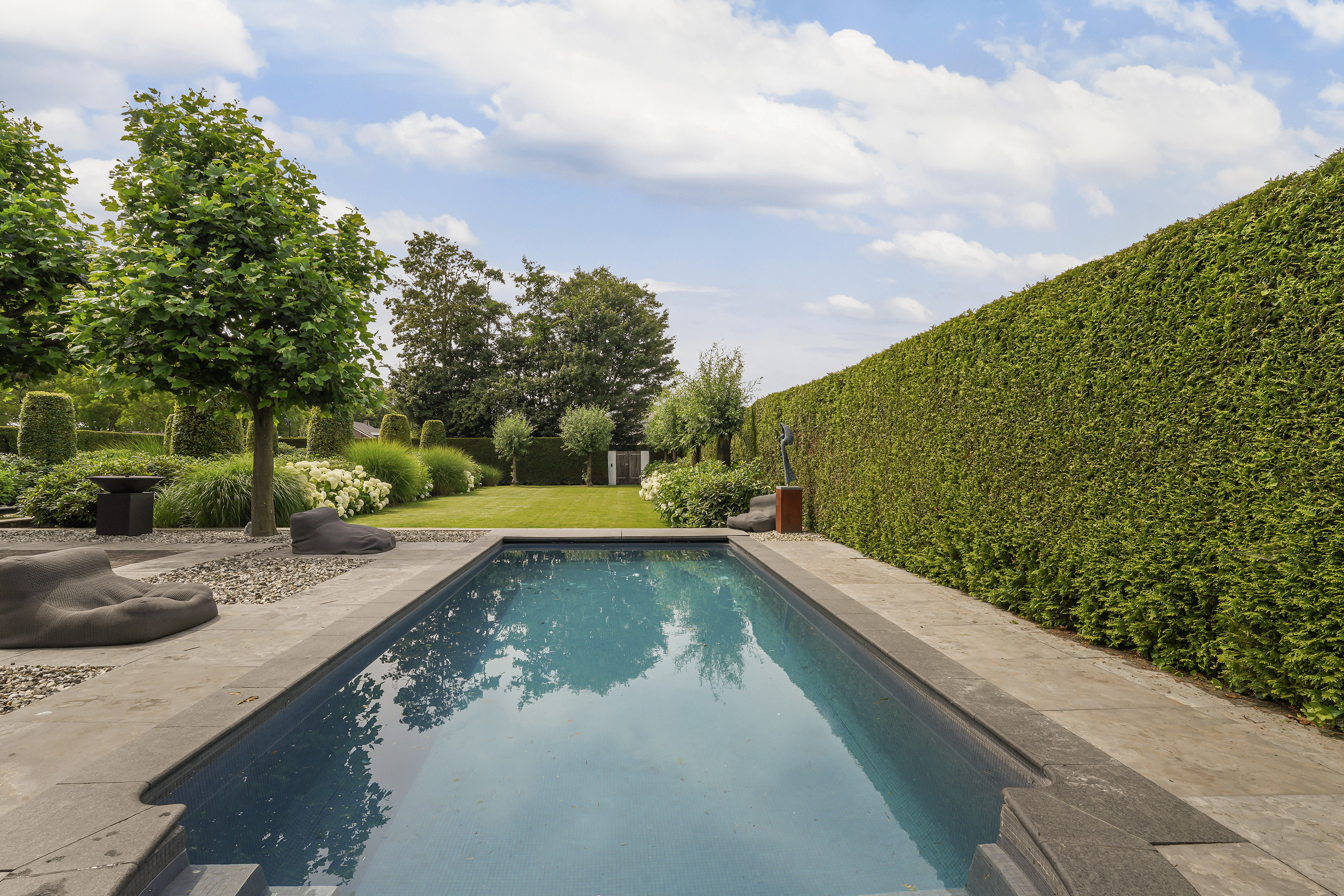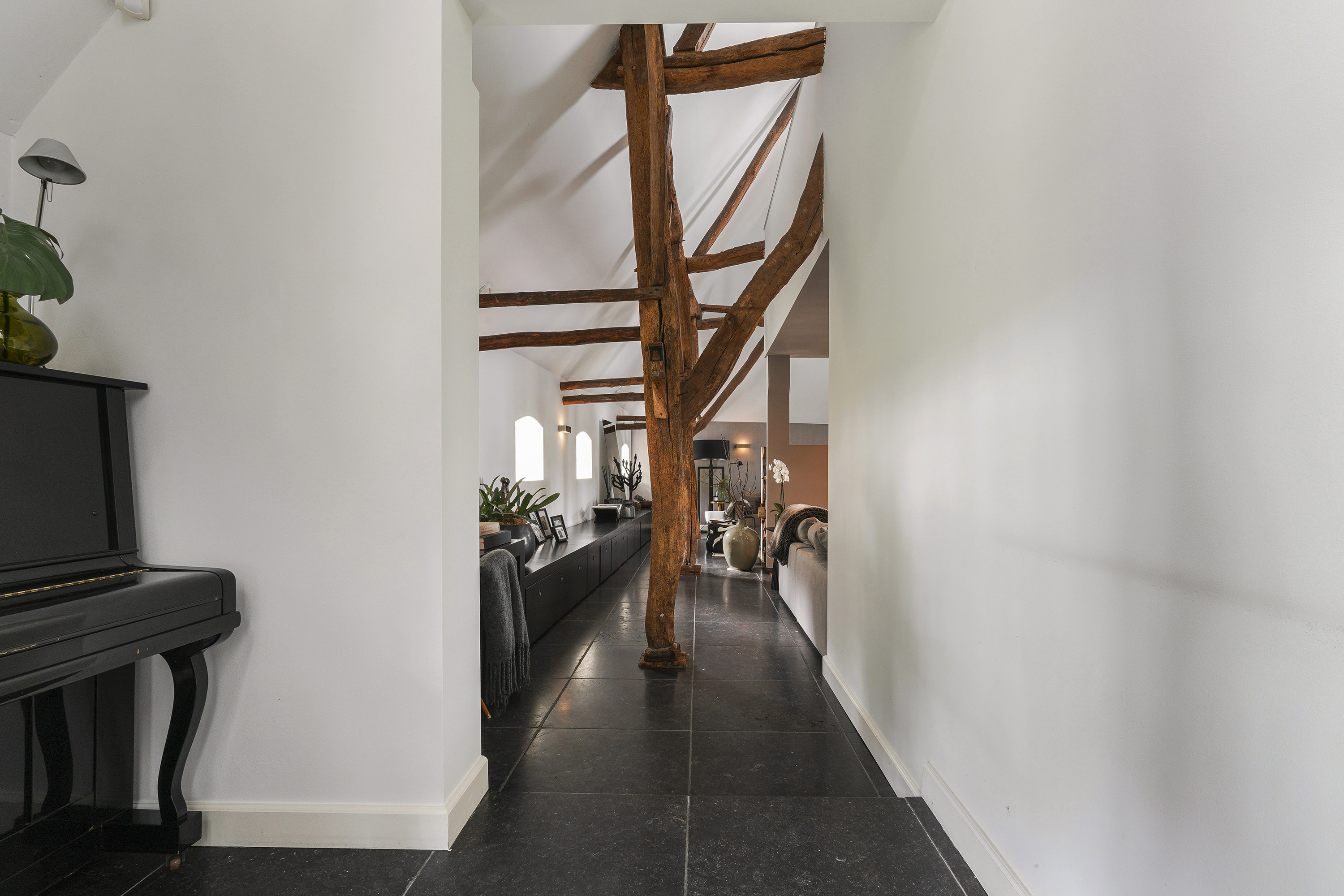 This fully renovated 18th-century Brabantian long farmhouse, designated as a national monument, seamlessly combines historic charm with modern comfort. Set on a generous 3610 m² plot, the property features a stately driveway, an exquisitely landscaped garden with multiple ponds, a heated swimming pool, and a luxurious guesthouse complete with a kitchen, sauna, and mezzanine. Every aspect of the home has been carefully restored and upgraded, preserving its historic integrity while offering every modern convenience.