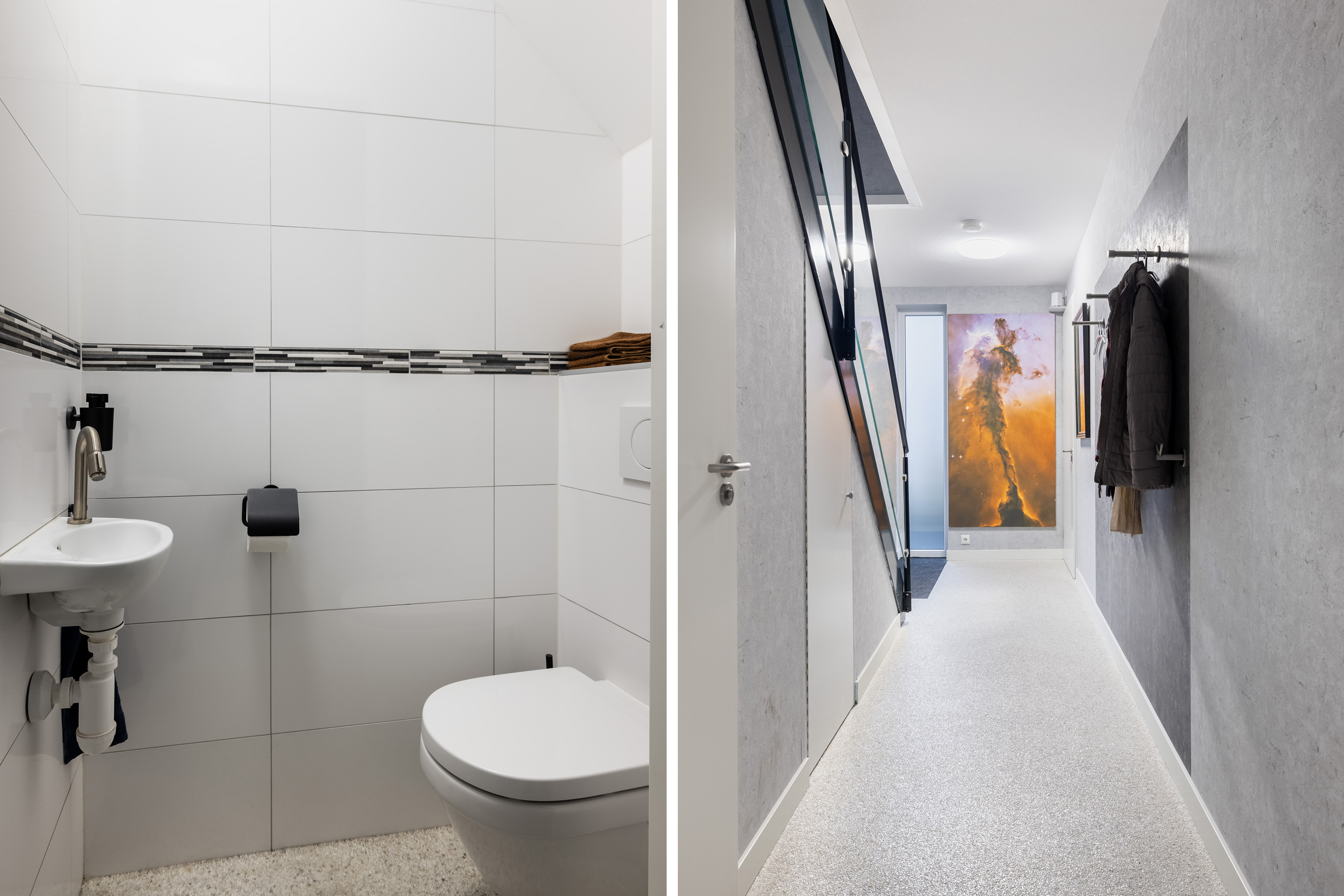 Of course, sustainability was a key consideration in the construction of this home. Heating is provided via a (ground source) heat pump, which supplies both hot water and underfloor heating across all rooms. This system also allows for cooling. Naturally, the home is optimally insulated, contributing to an outstanding Energy Label A++++.