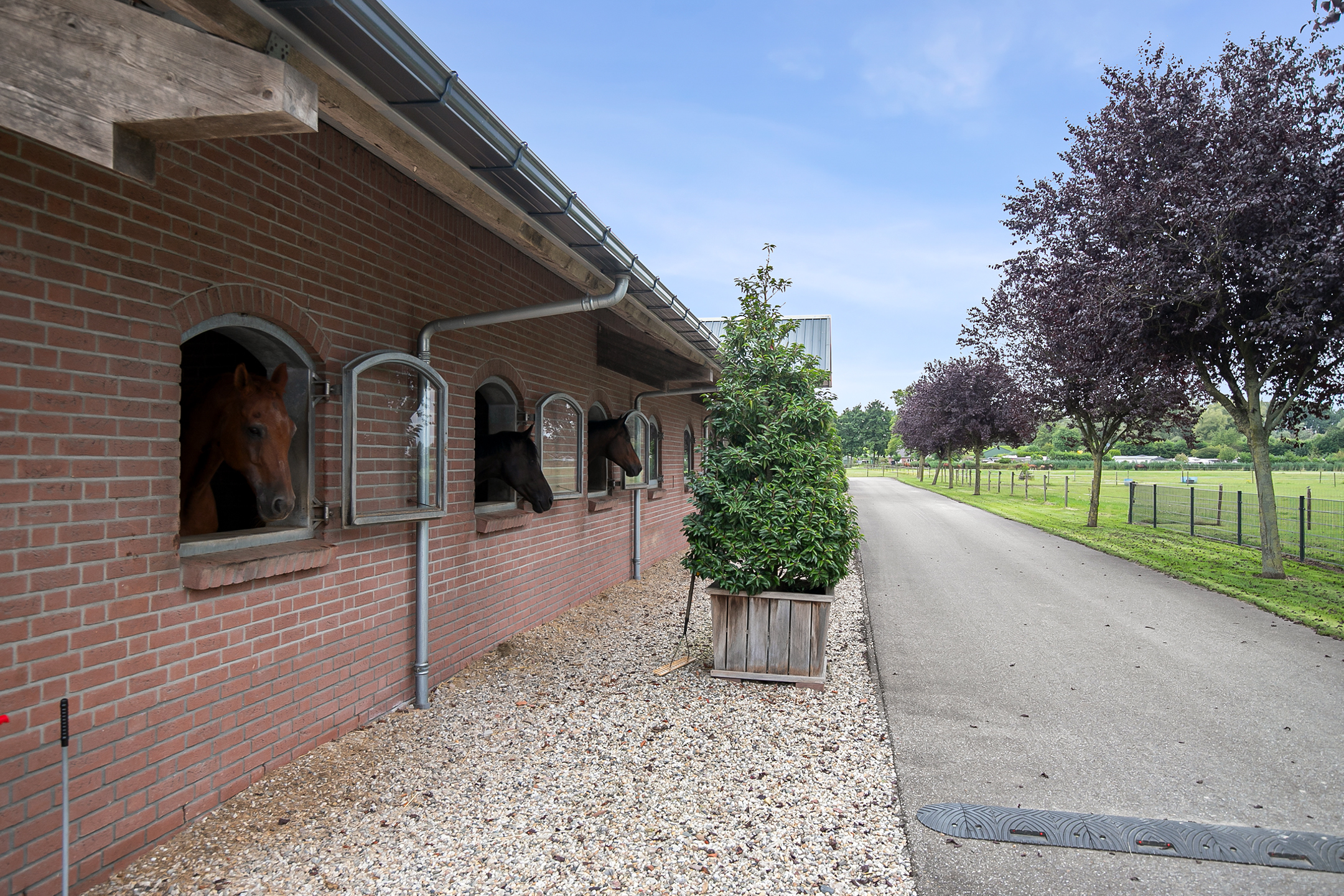 This beautiful, complete and well-maintained equestrian accommodation offers plenty of possibilities due to the presence of a beautiful luxuriously finished detached house, a total of 39 horse stables, a spacious indoor and outdoor arena (approx. 21x61 metres), a reception area, two flats which are perfect for groom's quarters, a covered horse walker and various meadows. All this is situated on a generous plot of no less than 4 ha in an excellent, central location in the middle of the Netherlands.