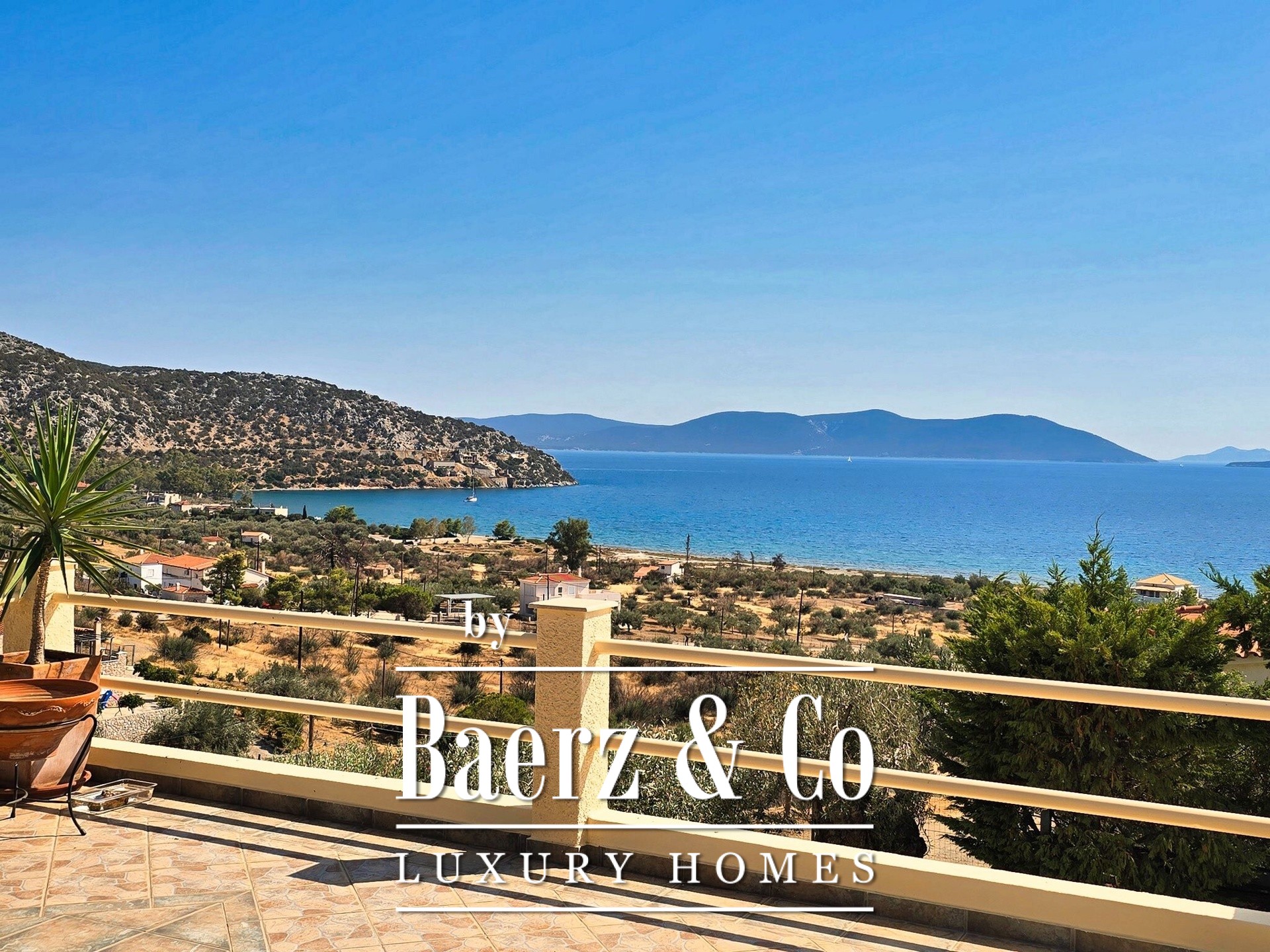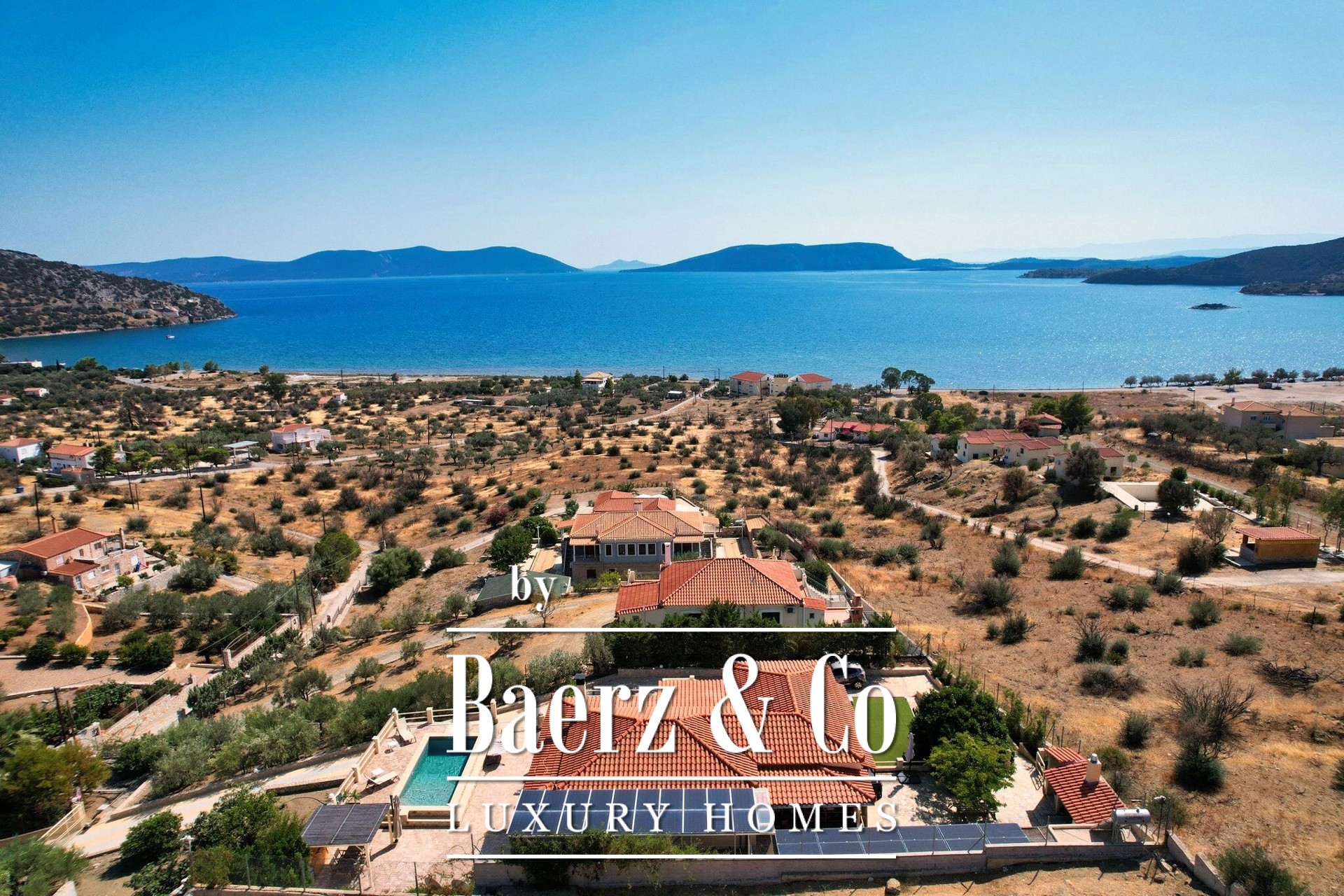 Tranquility, luxury and unobstructed sea views are the elements that characterize this unique residence, which is located just 500 meters from the nearest beach in the area, in a quiet and well-kept neighborhood characterized mainly by luxurious holiday homes.
