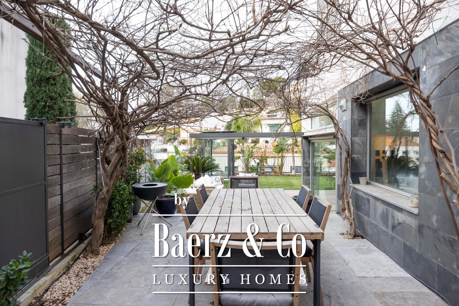 Luxury villa Esplugues de Llobregat presents a synthesis of contemporary architecture and serene Mediterranean living. This residence, renovated in 2025, offers 314 m² across three polished levels, featuring four bedrooms and four bathrooms. Unfolding within a 602 m² plot, light becomes a defining element as floor-to-ceiling windows bathe the living spaces with warmth throughout the day.
