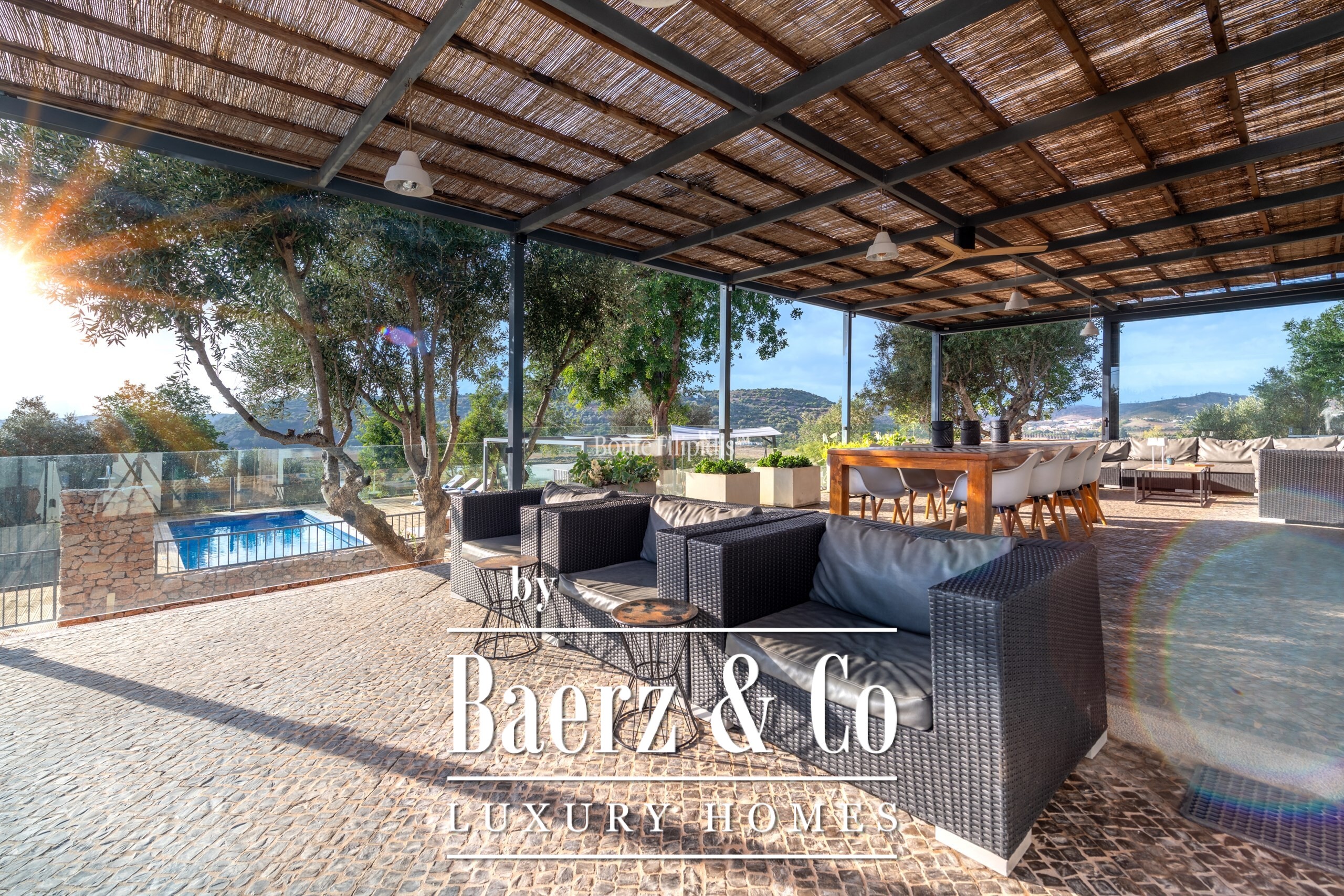 Villa in Silves offers a distinctive balance of contemporary architecture and natural serenity along the banks of the River Arade. Designed by Studio Arte of Portimão, this four-bedroom villa places you a short distance from the medieval heart of Silves, while ensuring each day is shaped by the soft cadence of the Algarve countryside. The property encompasses 180 m² of refined interior living space across two levels, with four spacious suites and a guest bathroom. Walls of glass open to a 260 m² covered terrace, drawing in river and mountain views and bridging interior and exterior with thoughtful simplicity.
