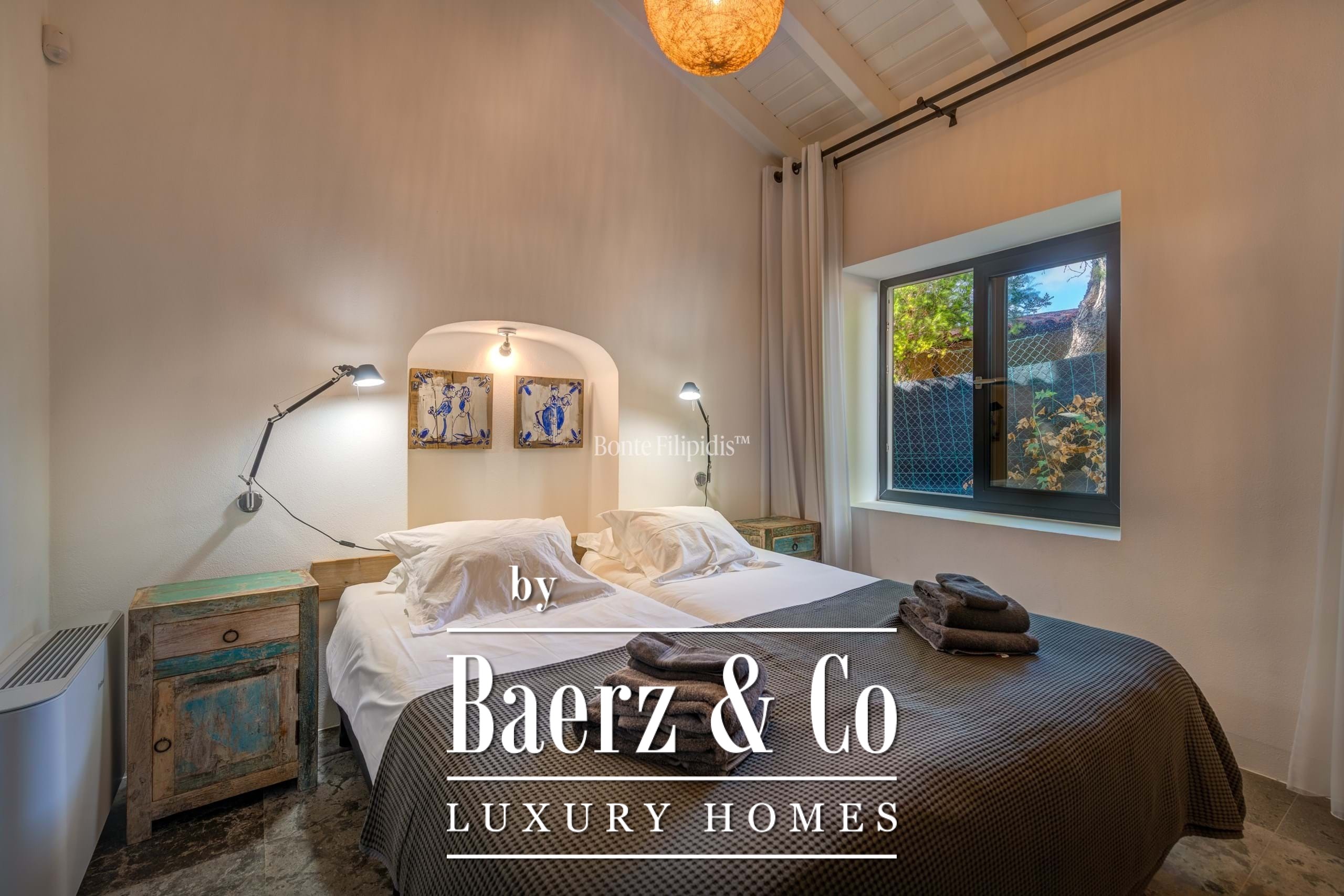 Set on a 2,440 m² plot, mature olive groves and vineyards frame landscaped gardens, while a private pool and jacuzzi for six evoke privacy and ease. Energy efficiency defines the experience, with a 48-panel photovoltaic system, underfloor heating, and a Salamander fireplace offering year-round comfort. Indoors and out, fully equipped kitchens anticipate both quiet mornings and convivial gatherings.