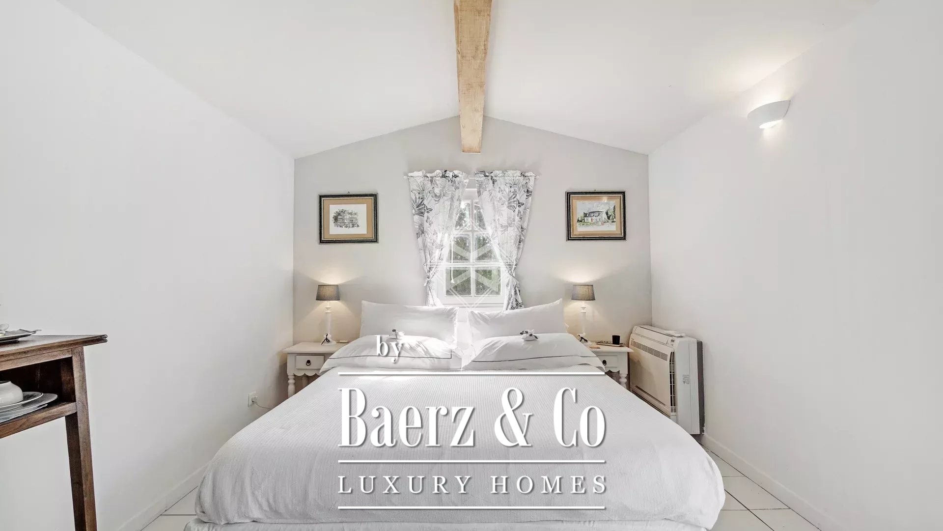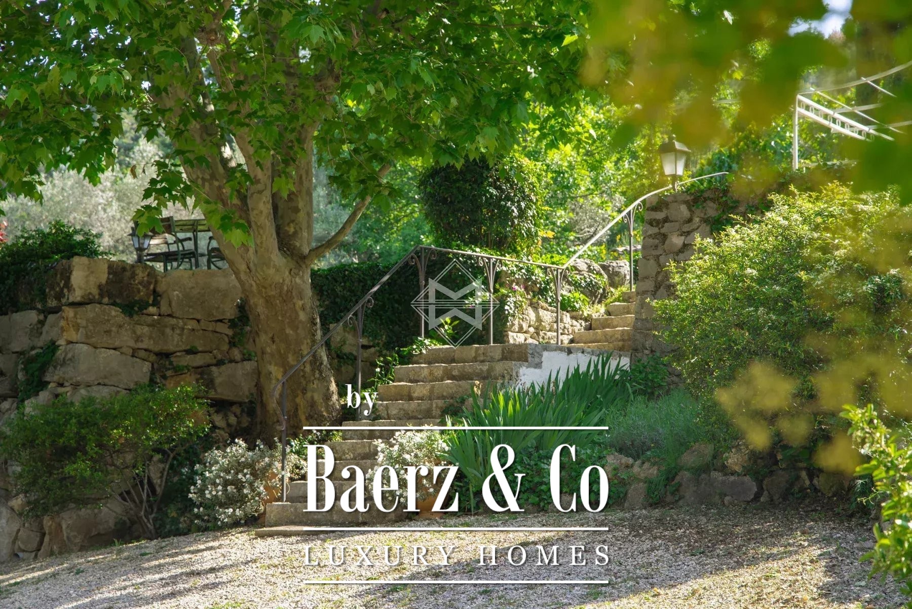 Nestled on a beautifully landscaped plot of over one hectare, adorned with olive and century-old oak trees, the property is completed by a heated swimming pool, perfect for year-round relaxation.