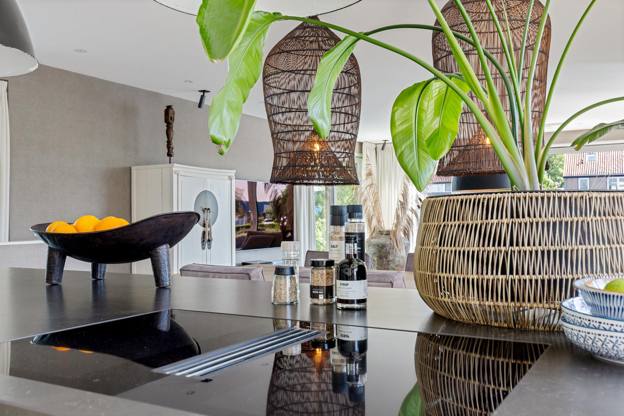 The kitchen is fully equipped with a high-end Miele appliance package: an induction cooktop with integrated extractor, combi-oven, dual fridge/freezer units, dishwasher, and Quooker. Adjacent to the kitchen, the 22 m² sundeck faces west and enjoys afternoon and evening sun with unobstructed views of the Franeker Canal. At water level, there's space to moor an additional boat alongside the main berth.