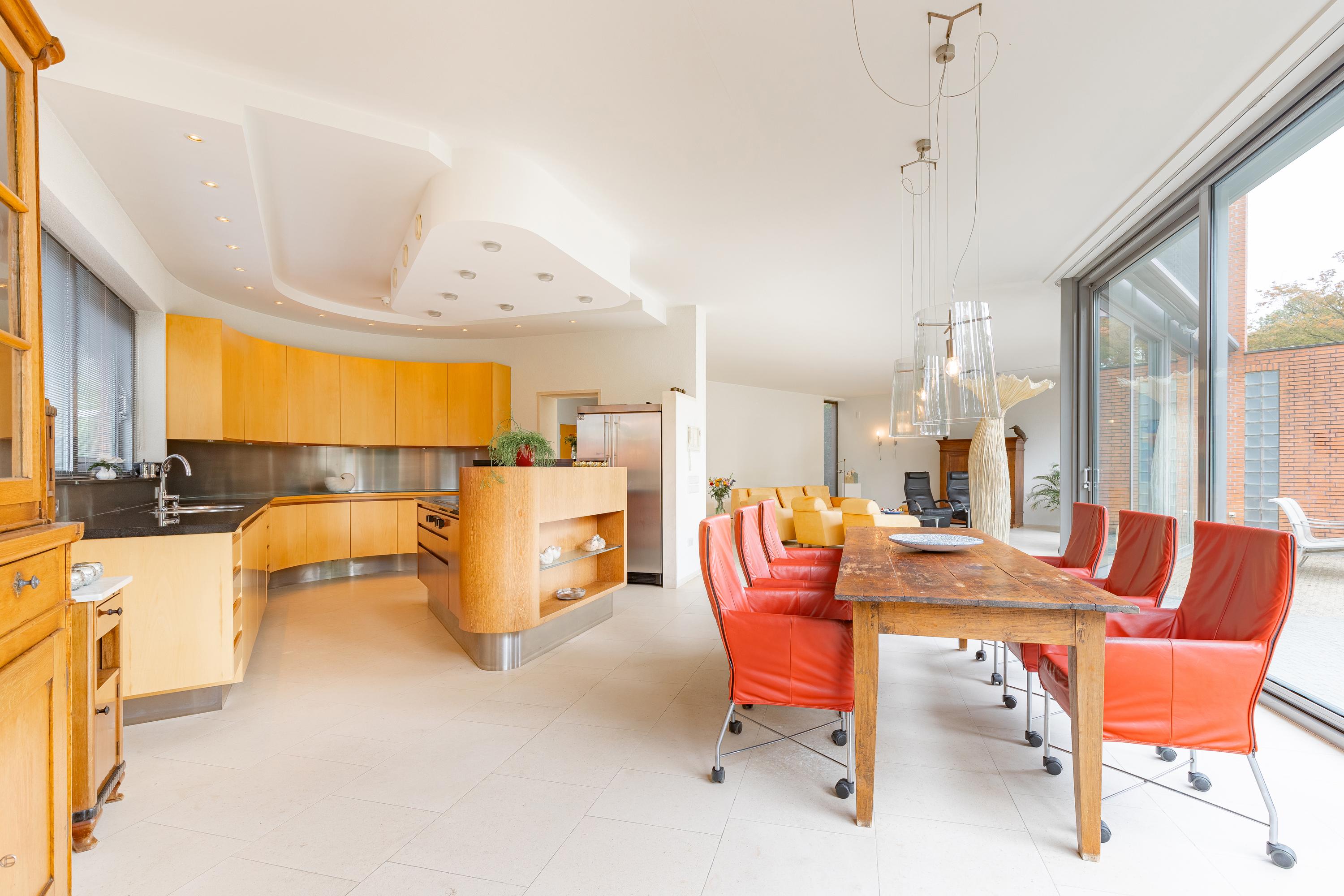A great location, just steps away from downtown with (secondary) schools and nature within walking distance in Heerlen South we offer under architecture built detached villa, to a design by architect Frans de Leij. The villa was built in 2000 and finished with durable and high quality materials. The front facade of the house has 15 centimeters thick marl stone.