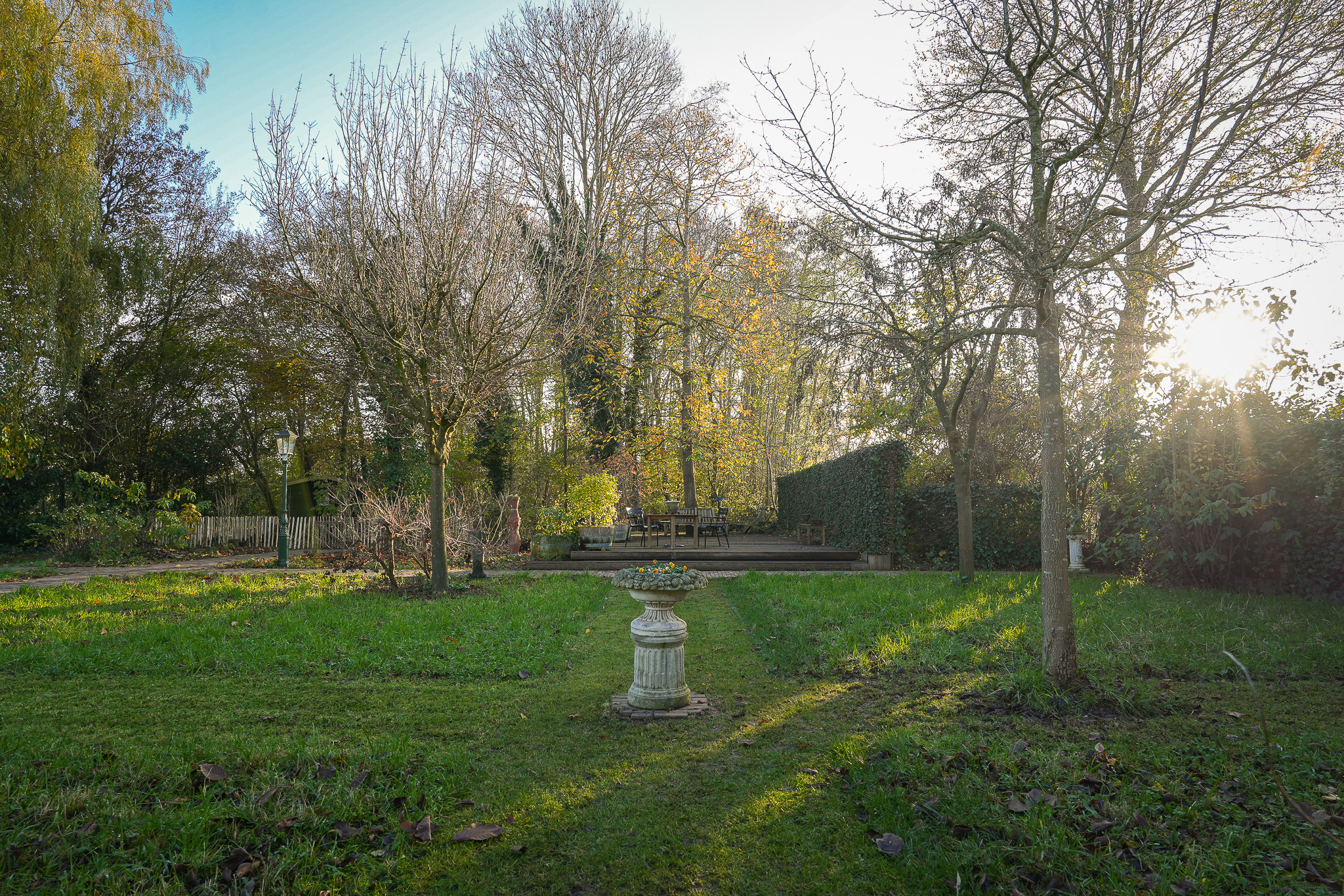 The nearly 5,000 m² plot — including a low-maintenance flower garden — is a true haven for birds and insects. The grounds are bordered by pollard willows, while an old plum tree and a characteristic weeping willow grace the front garden. To the left of the farmhouse is a driveway for several cars, with space for two vehicles beneath the carport.