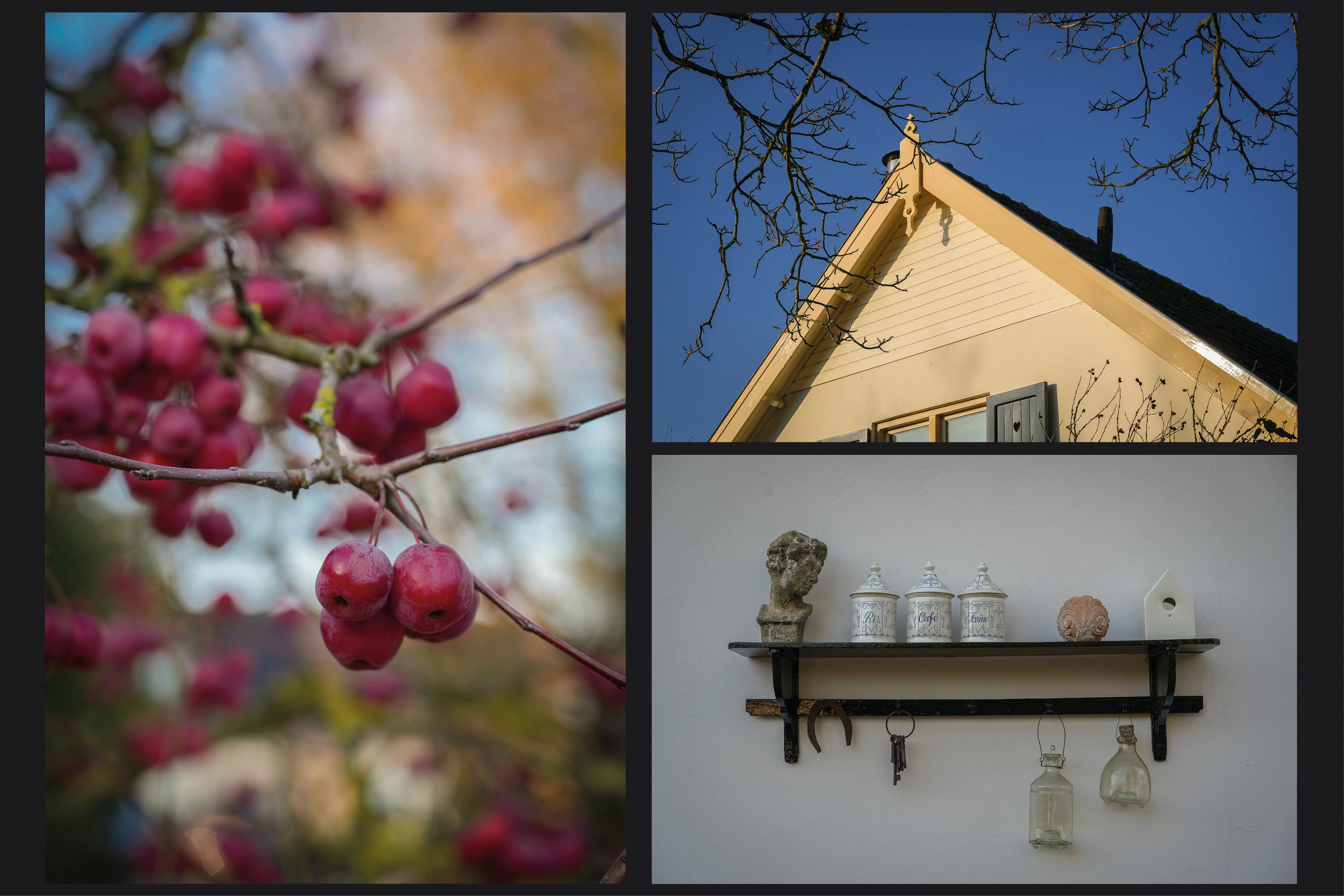 Behind the outbuilding lies a flower meadow and orchard with pear, apple, plum, medlar and quince trees.