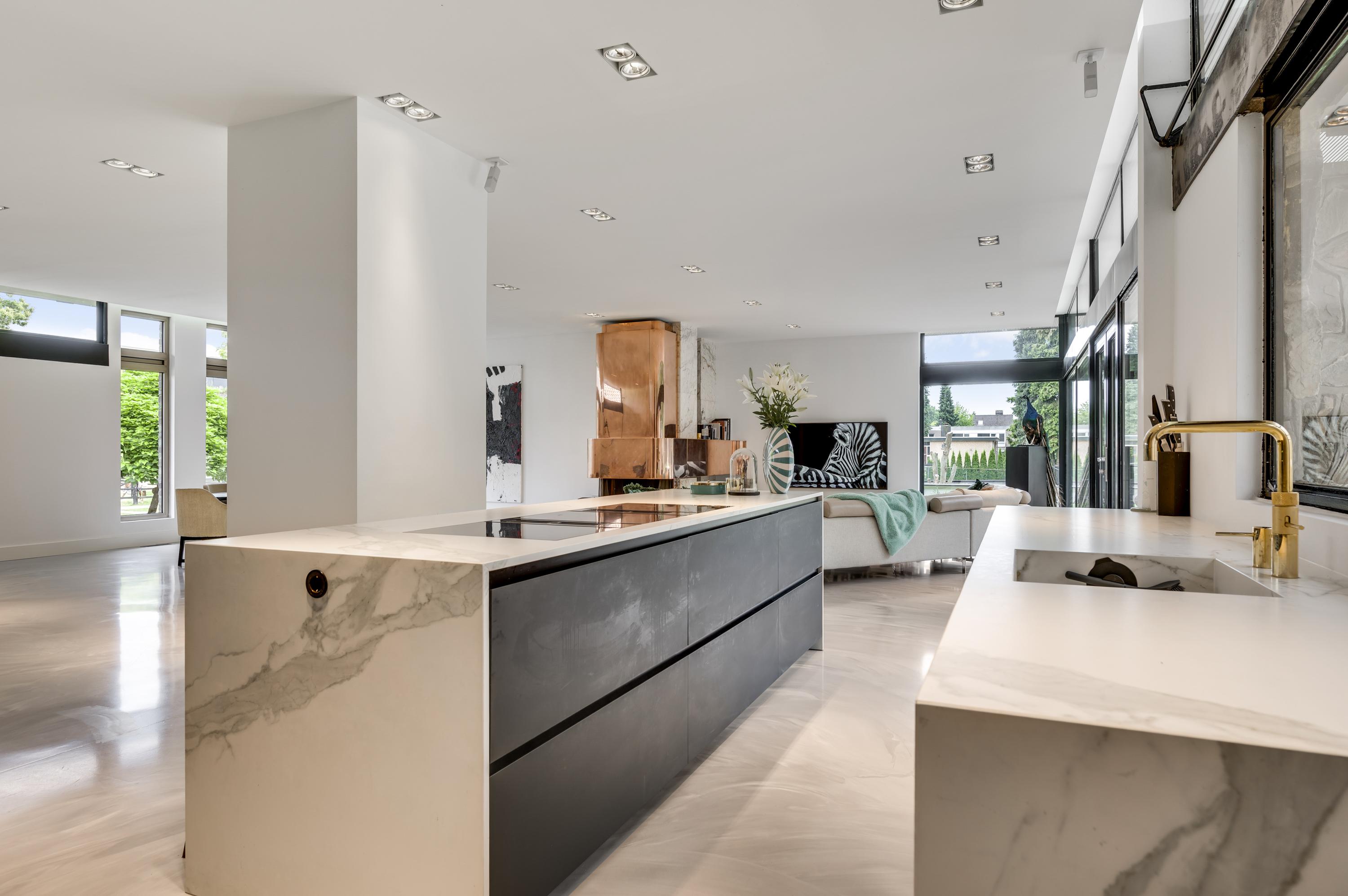 The south wing of the house features a spacious living room with large windows and a cozy fireplace. The modern open kitchen (2020) forms the heart of this wing, complete with high-quality built-in appliances. Adjacent to this is a multifunctional room, ideal as a home office, playroom, or library.