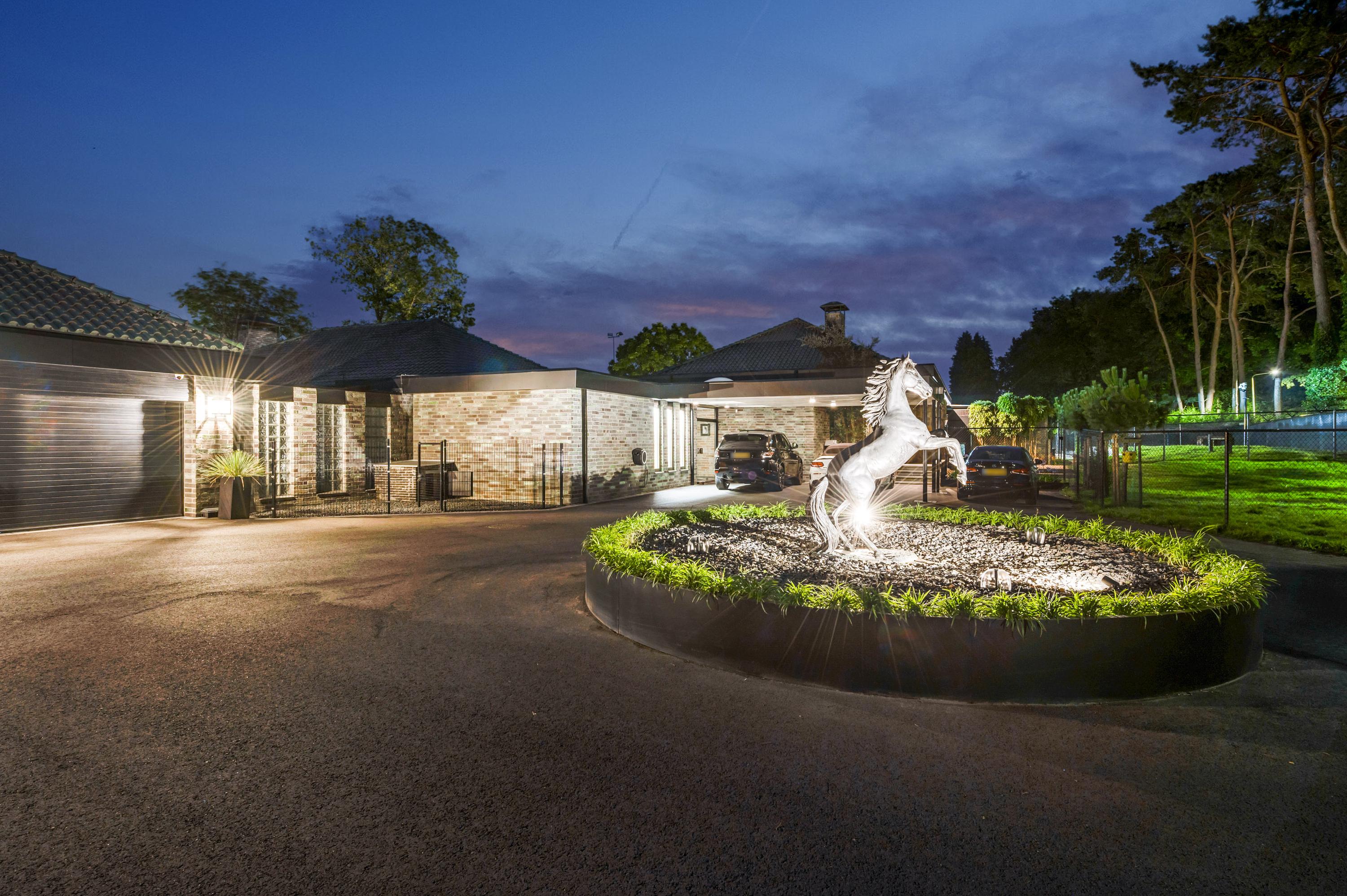 In a breathtaking location, adjacent to De Meinweg National Park and a stone's throw from De Herkenbosche Golf Course, this exclusive and fully modernized villa is situated on a spacious plot of no less than 11,171 m². A unique living experience where luxury, comfort, and tranquility come together with the outdoors. Thanks to the extensive horse facilities, including a lighted riding arena, 6 luxurious horse stalls, tack room, wash area, and several surrounding pastures, this is a dream location for horse lovers or offers plenty of space for other uses such as an indoor swimming pool or wellness center.