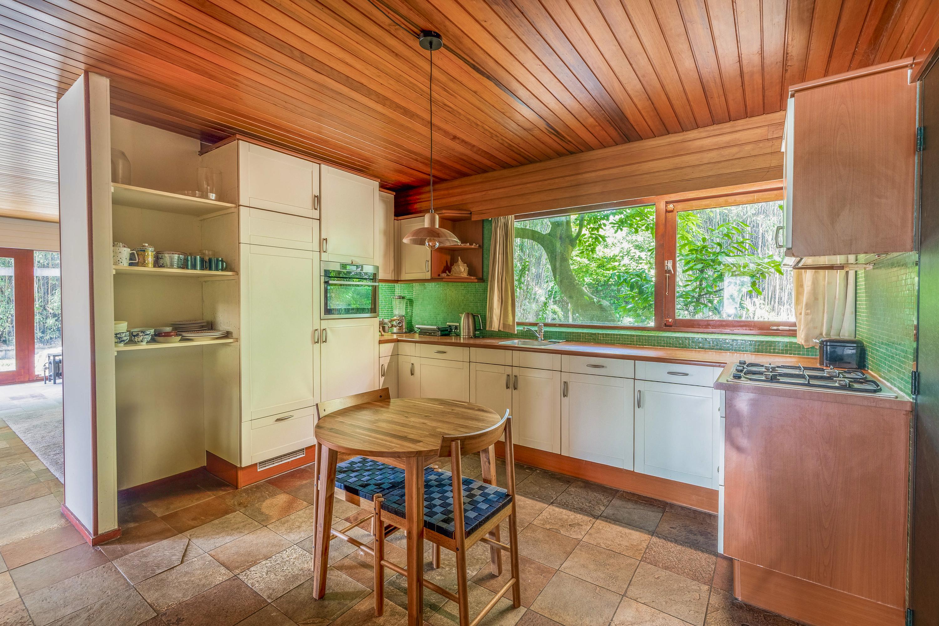 The lush garden offers plenty of opportunities for gardening enthusiasts and is equally perfect for those who just want to relax in peace and quiet. Set within an exclusive, small-scale residential park outside the dike, the location provides a unique sense of privacy, minimal traffic, and freedom. From the expansive rooftop terrace on the first floor, you can enjoy stunning views over the River Lek and the iconic windmills of Kinderdijk.