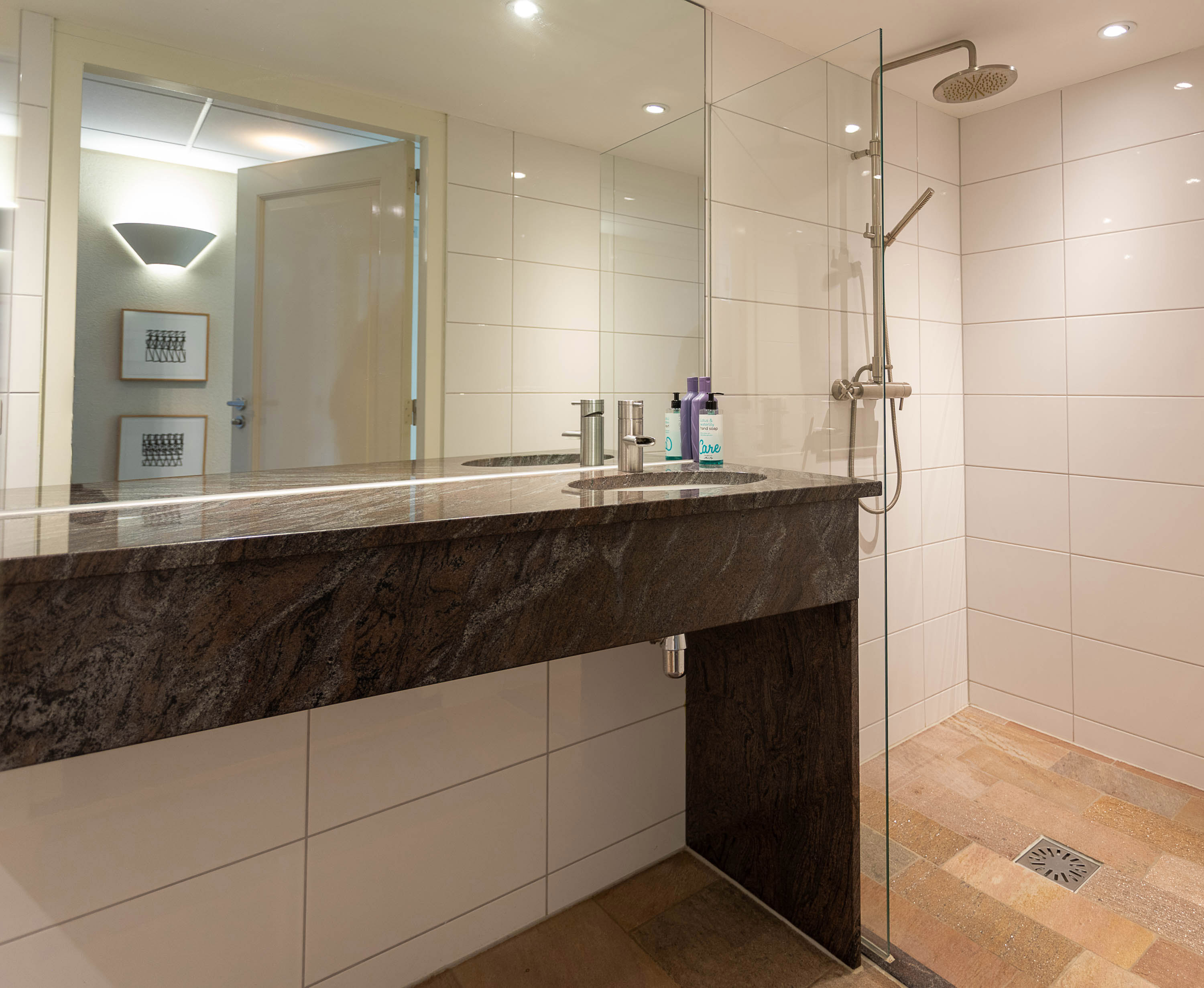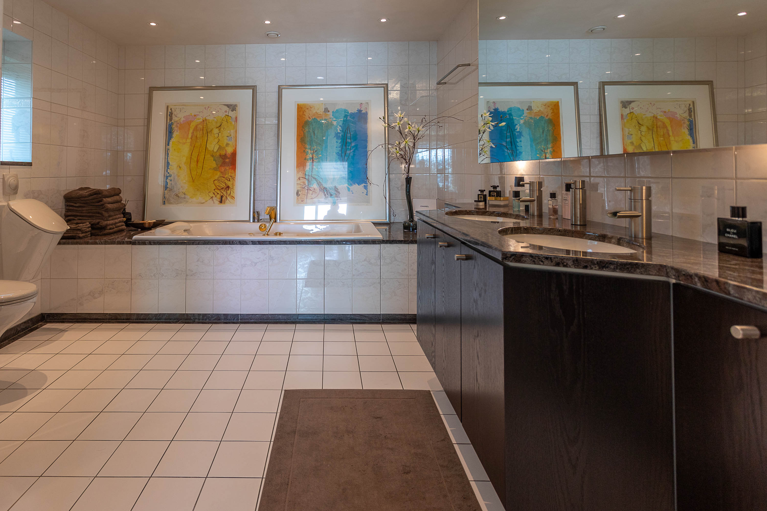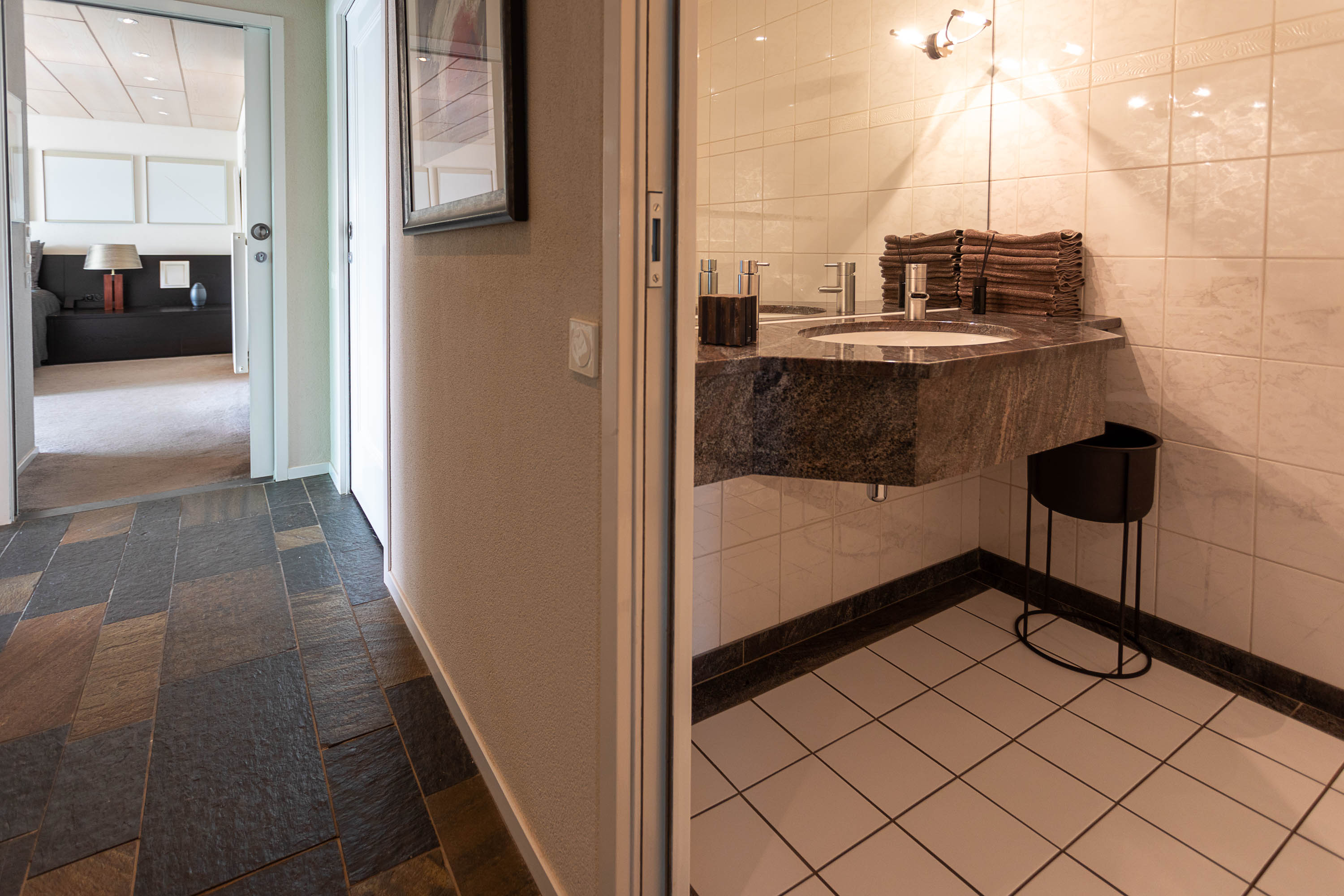 The basement features a complete wellness area, transforming this villa into your own private resort. Unwind in the swimming pool with jet stream, relax under the waterfall, enjoy the bubble plate and wall jets, or rest on the whirlpool bench. An oasis of relaxation — right at home.
