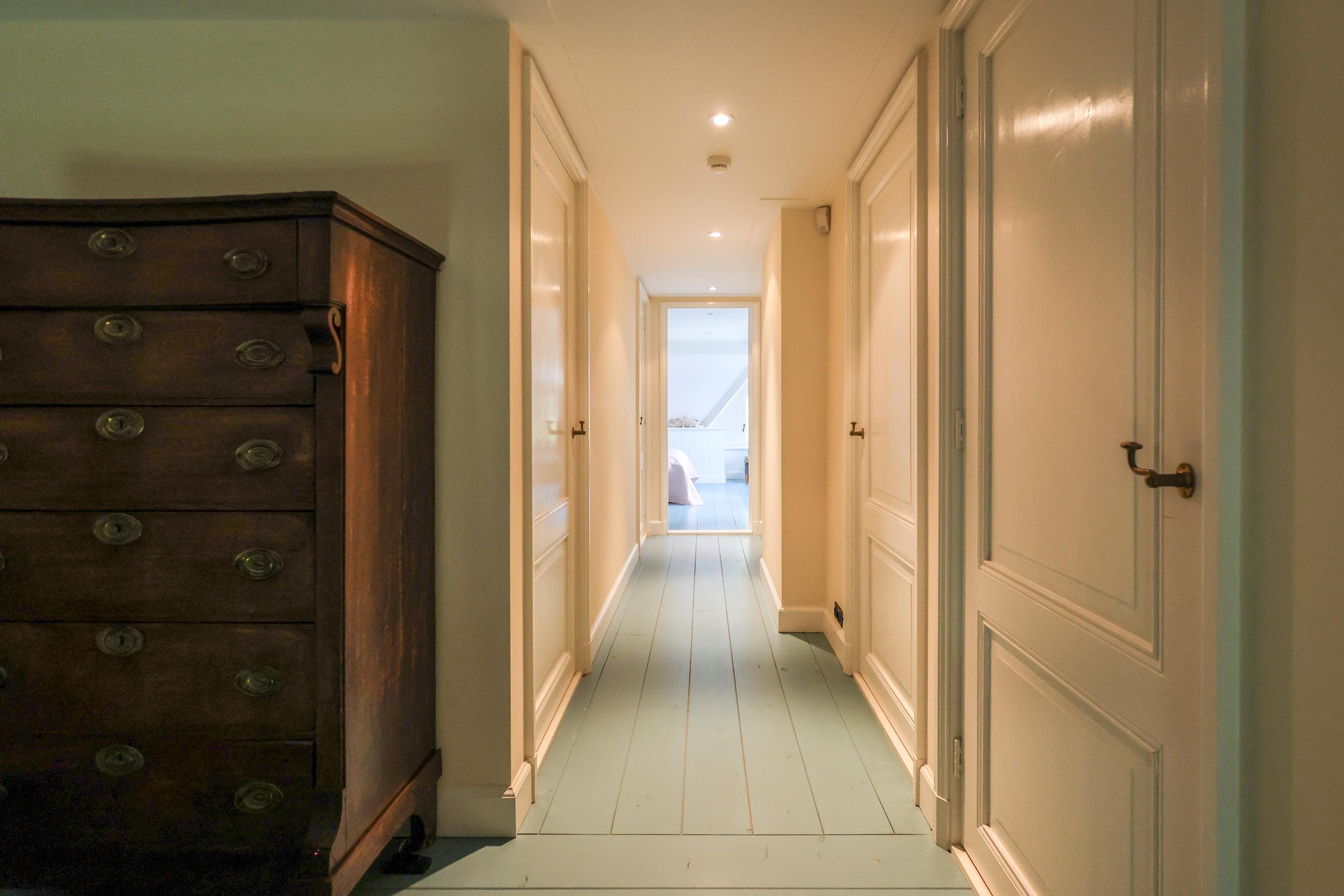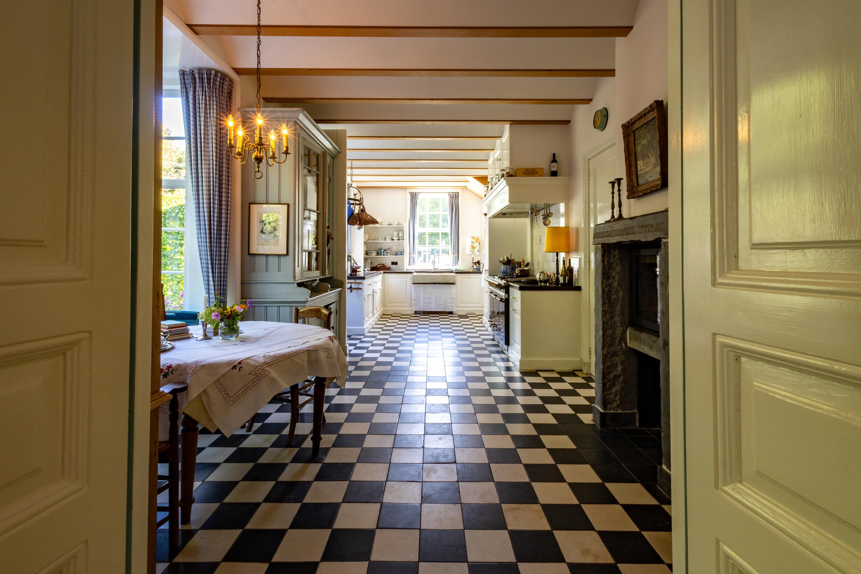 What truly sets this home apart is the soul with which it was built. Designed in 2012 by architect Van Asbeck, the villa owes its unique character to the carefully sourced, reclaimed materials. Parquet floors that once graced historic buildings, centuries-old children’s play tiles incorporated into the skirting and kitchen, doors with a story, roof tiles from a former Utrecht barracks, and even old cheese boards that have found a new purpose. In the kitchen stands a cabinet from an Amsterdam canal house — fitting seamlessly into the home’s atmosphere. Every detail breathes history and authenticity, together giving the house a rare sense of spirit and depth.