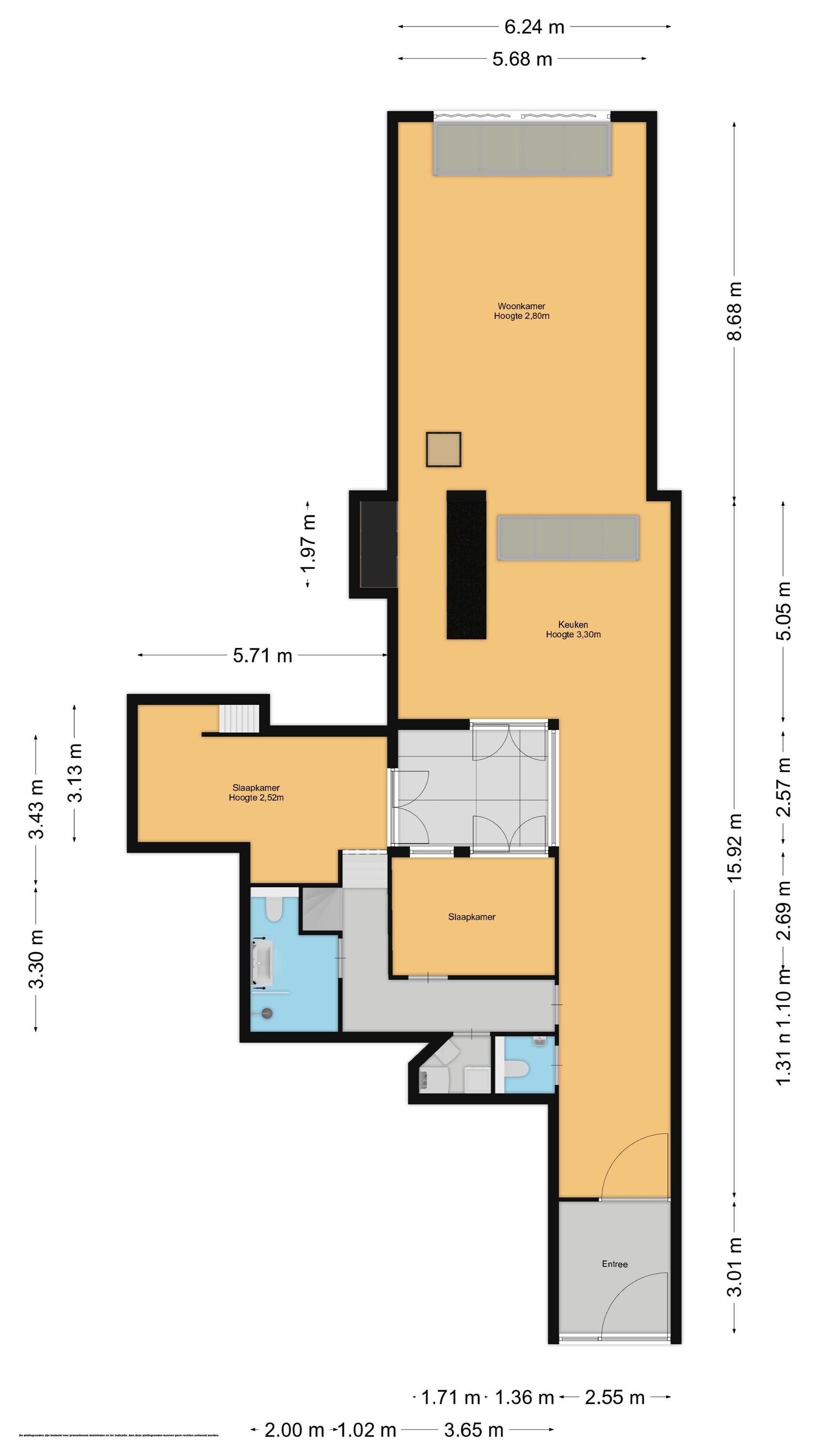 Naast de riante woonkamer biedt dit appartement drie volwaardige slaapkamers grenzend aan de patio. Twee moderne badkamers zorgen voor luxe en comfort, terwijl praktische ruimtes zoals de technische ruimte en de berging annex wasruimte bijdragen aan het dagelijkse gemak.
