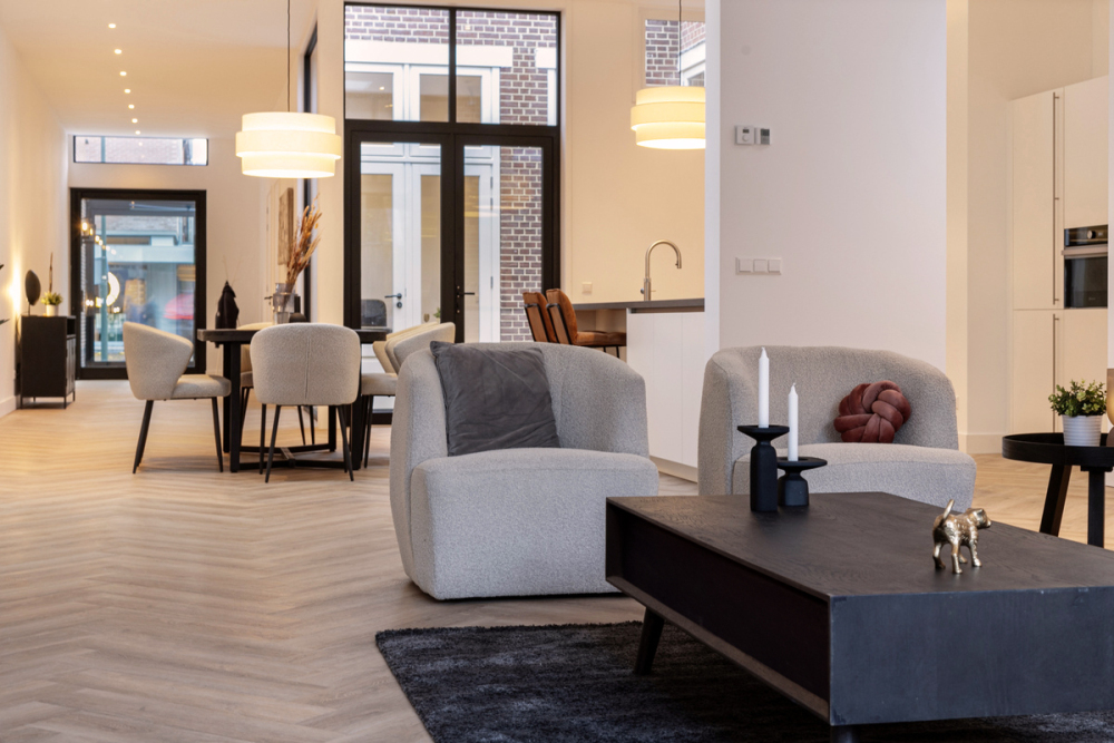 De moderne keuken met kookeiland vormt het hart van de woning – een uitnodigende plek voor borrels, diners en lange avonden met vrienden. Alles is tot in detail afgewerkt, waarbij comfort en stijl hand in hand gaan.