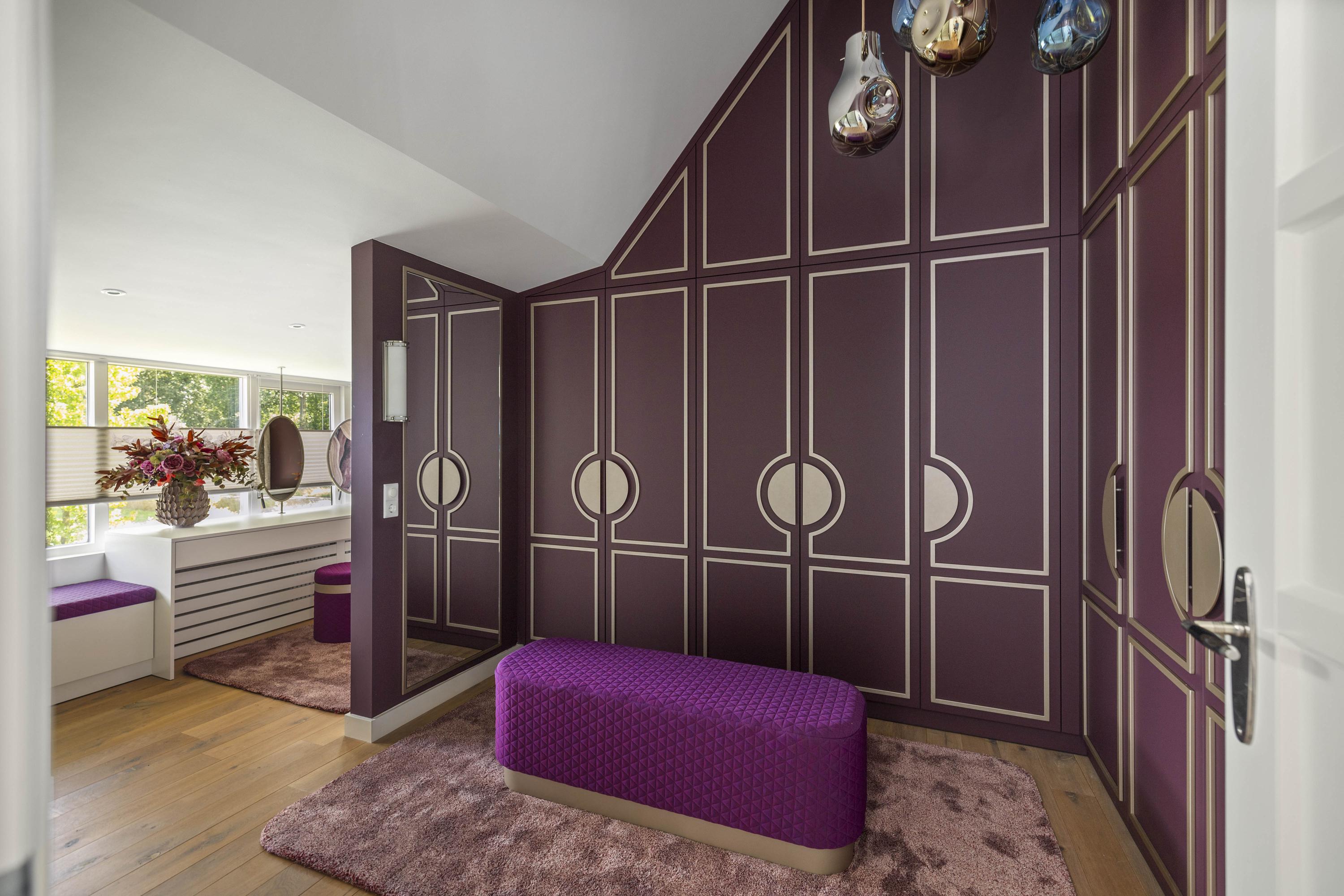 The kitchen itself is a masterpiece of design and craftsmanship by Arclinea, centred around a striking bronze-coloured island topped with green marble, fitted with an extra-wide induction hob (Gaggenau) with down-draft extractor, a Quooker Cube, recessed sockets, and, of course, extensive drawer storage.