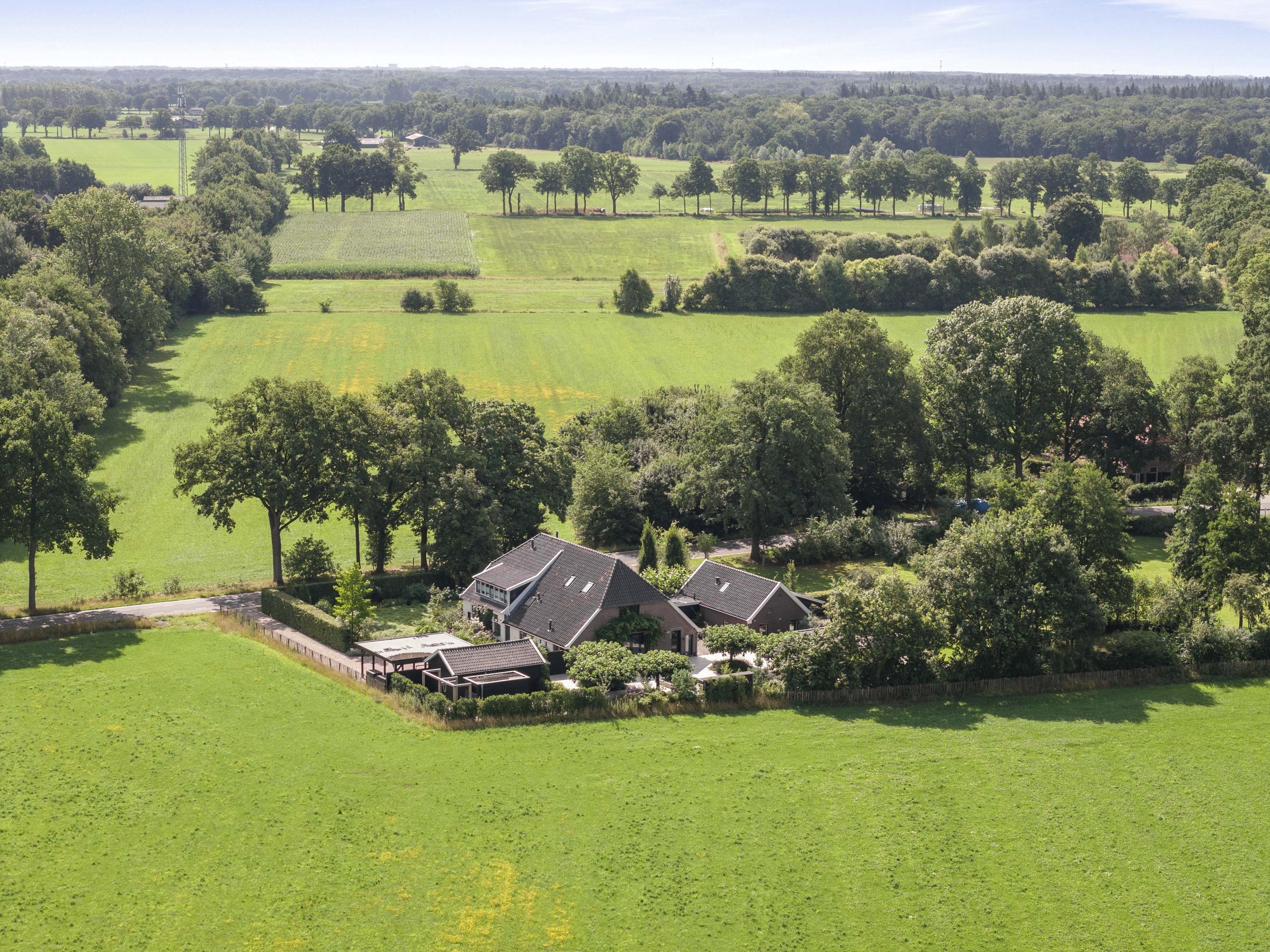 This remarkable manor is located in the green outskirts of Laren, a village defined by the Achterhoek’s patchwork landscape of winding country lanes, historic hedgerows, and expansive fields. Laren is a charming village with various shops and a supermarket, a world-(famous) bakery, and lively cafés and restaurants whose terraces fill at the first rays of sun. The area is renowned for its natural beauty, surrounded as it is by estates and woodland.