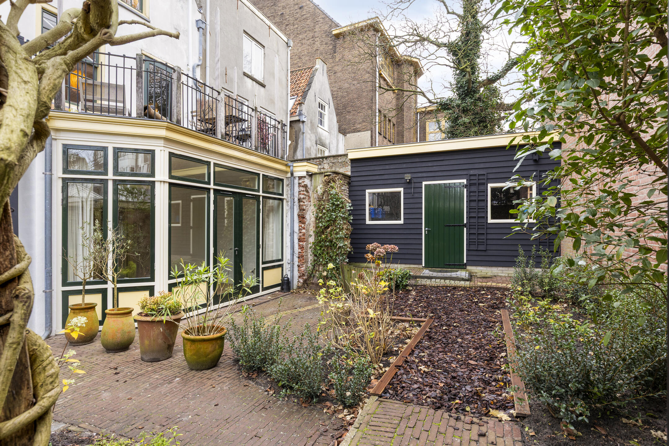 Een buitenkans in de binnenstad is de uitzonderlijk brede, beschutte achtertuin op het zuiden: circa zeven meter diep en maar liefst veertien meter breed. Een ware oase midden in de stad. Perfect voor wie droomt van groen, privacy én ruimte. De tuin beschikt over een twee bergingen en achterom aan twee zijden, een combinatie die maar zelden te vinden is binnen de singels. Binnen zorgen strak gestuukte wanden, oude steentjes en eikenhouten vloerdelen voor een stijlvolle en warme afwerking die past bij de historische ambiance.