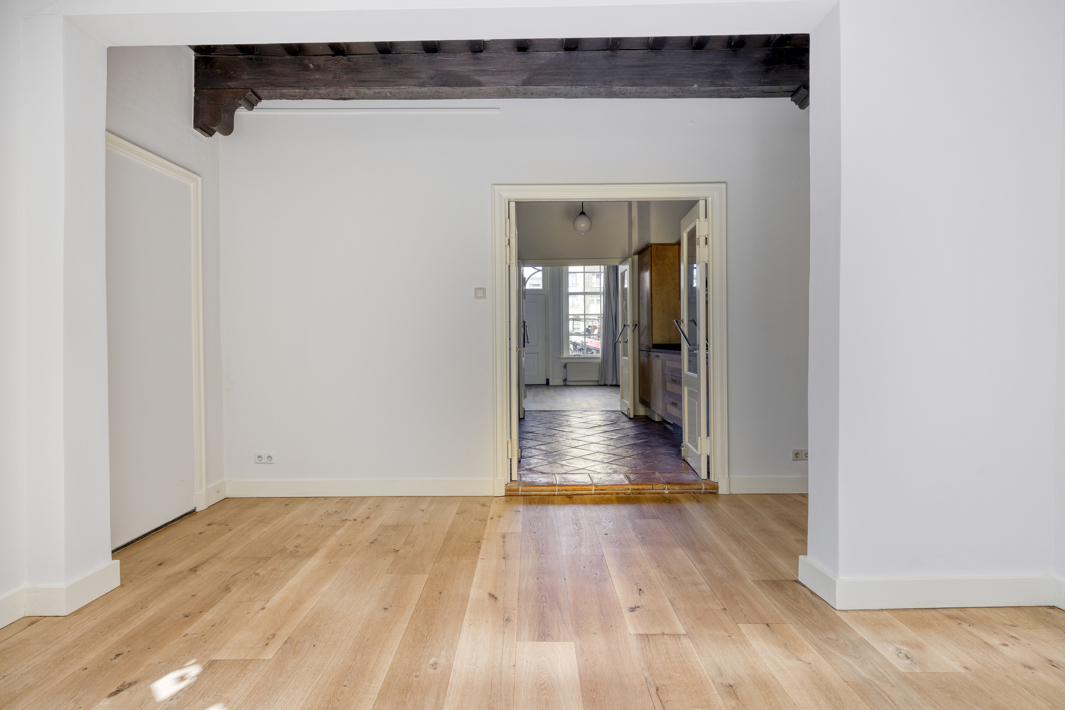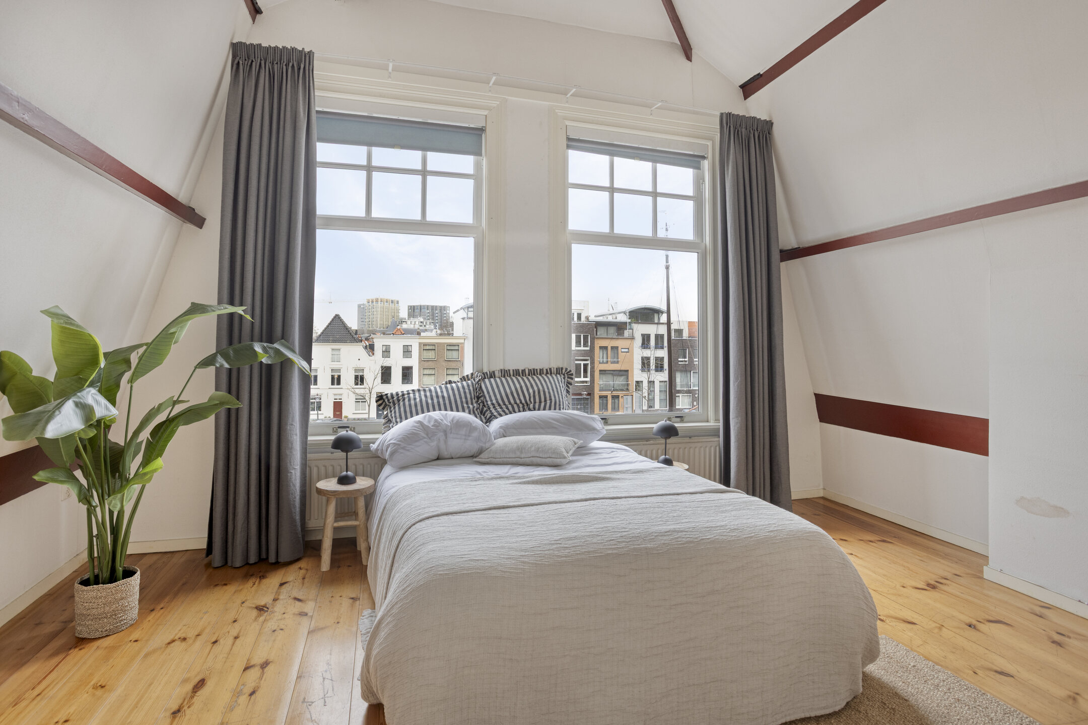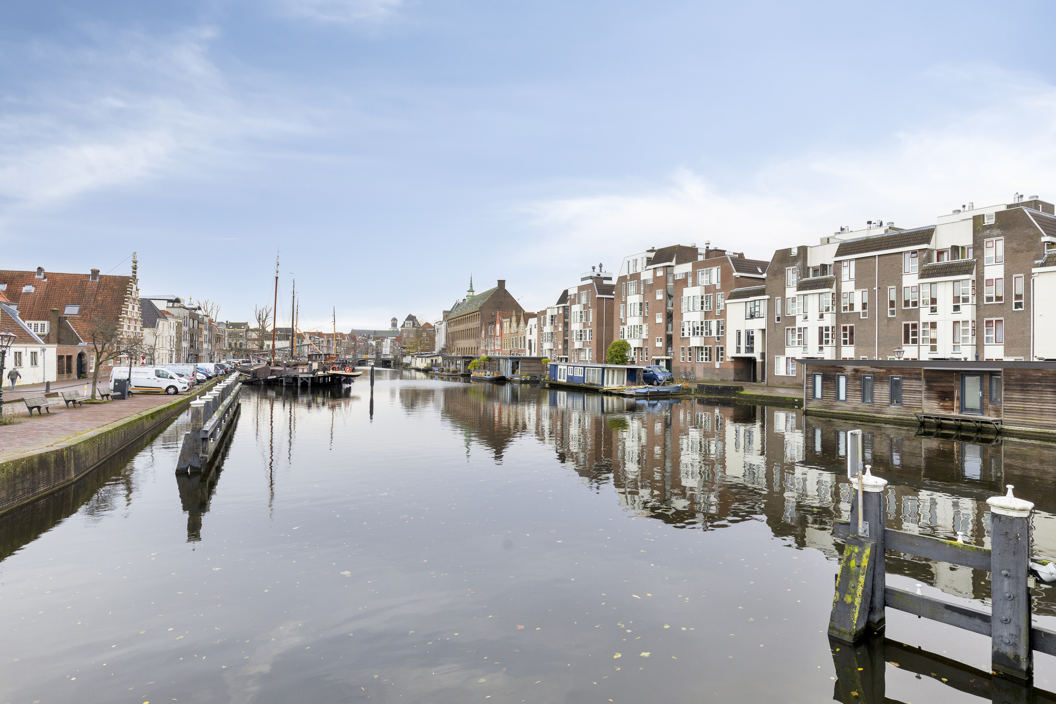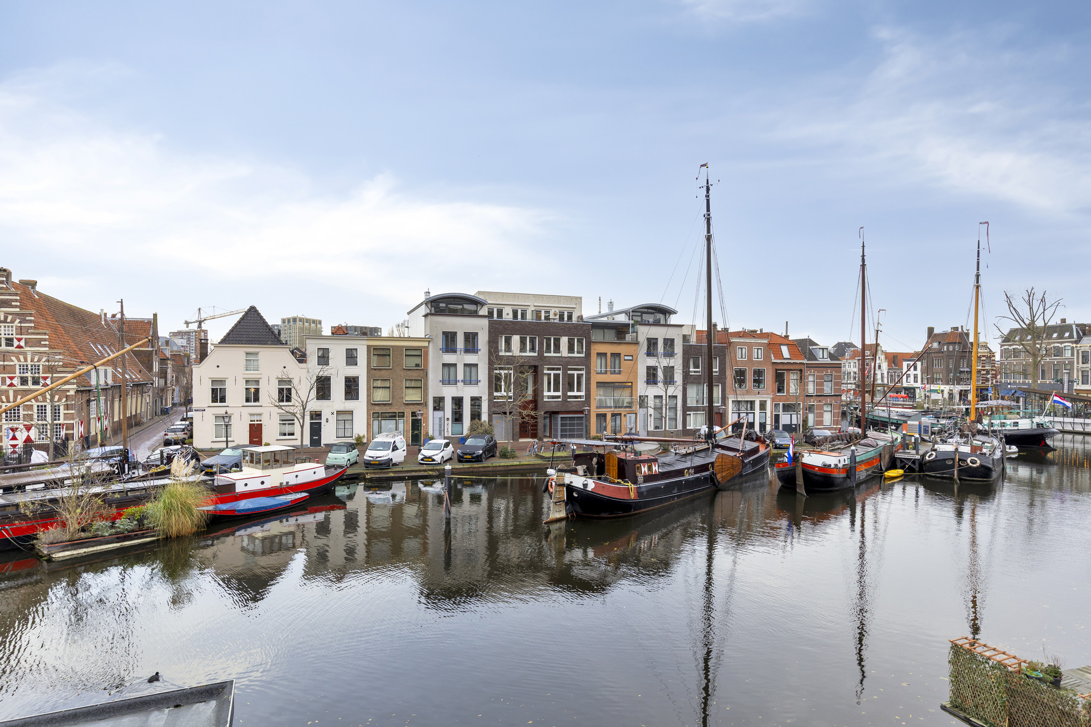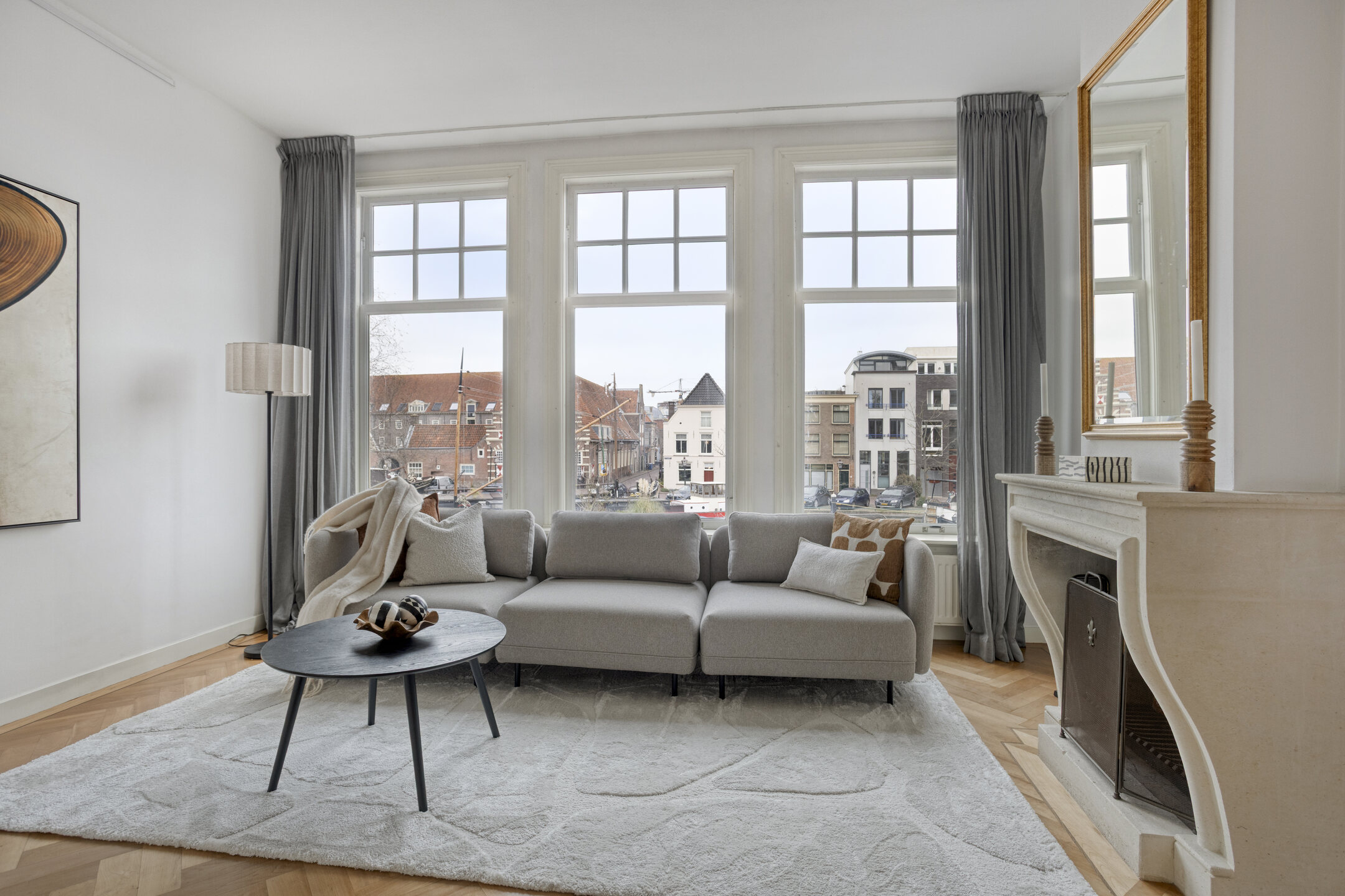 Op de plek waar eeuwen geleden de stadsmuren de stad beschermden, kijk je nu uit over de haven met haar historische schepen en monumentale panden. Het huis draagt nog altijd de charme van de vroege 20e en de 17e eeuw, met royale plafondhoogtes en een overvloed aan natuurlijk licht dat door de ramen naar binnen stroomt.