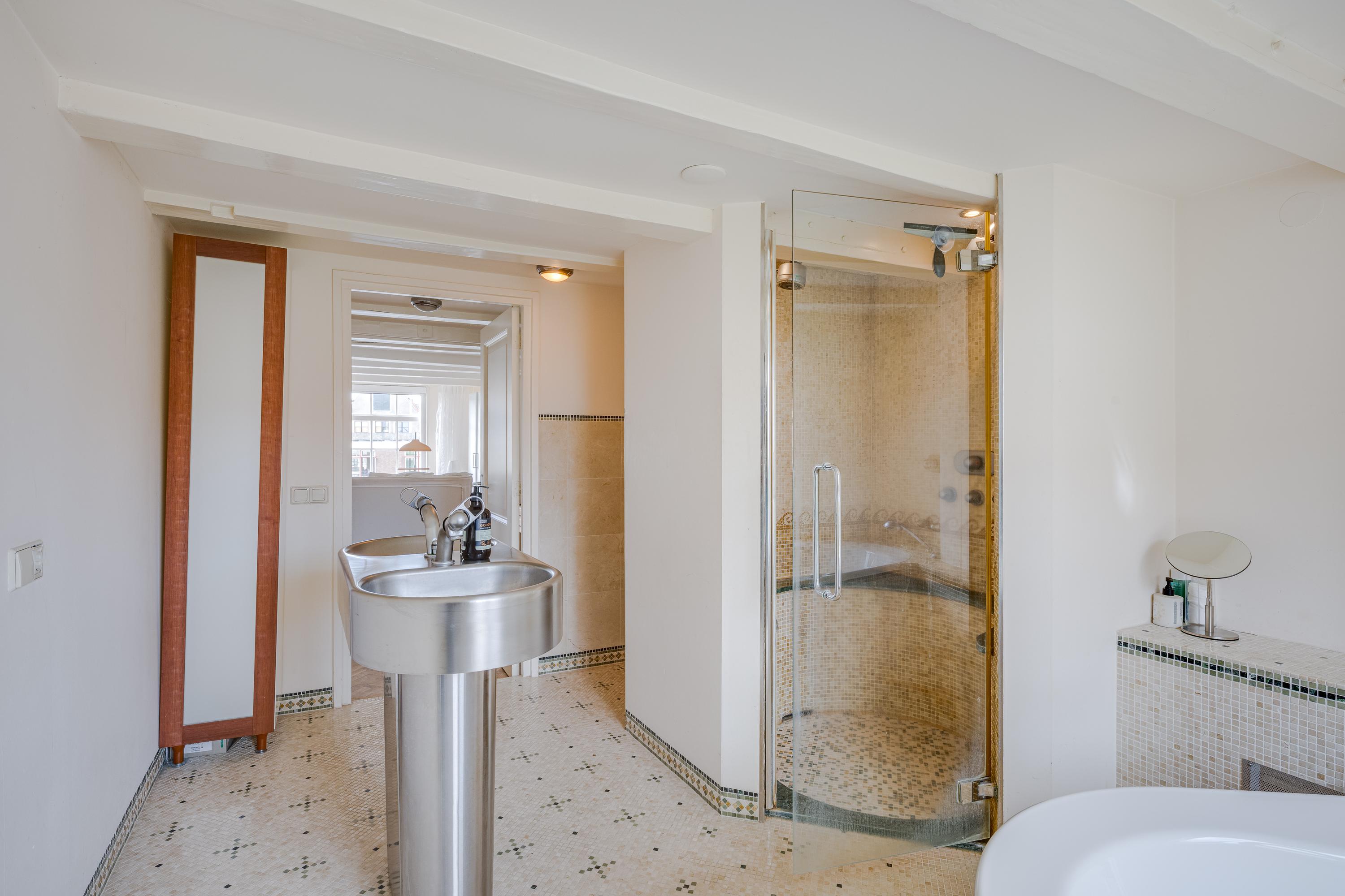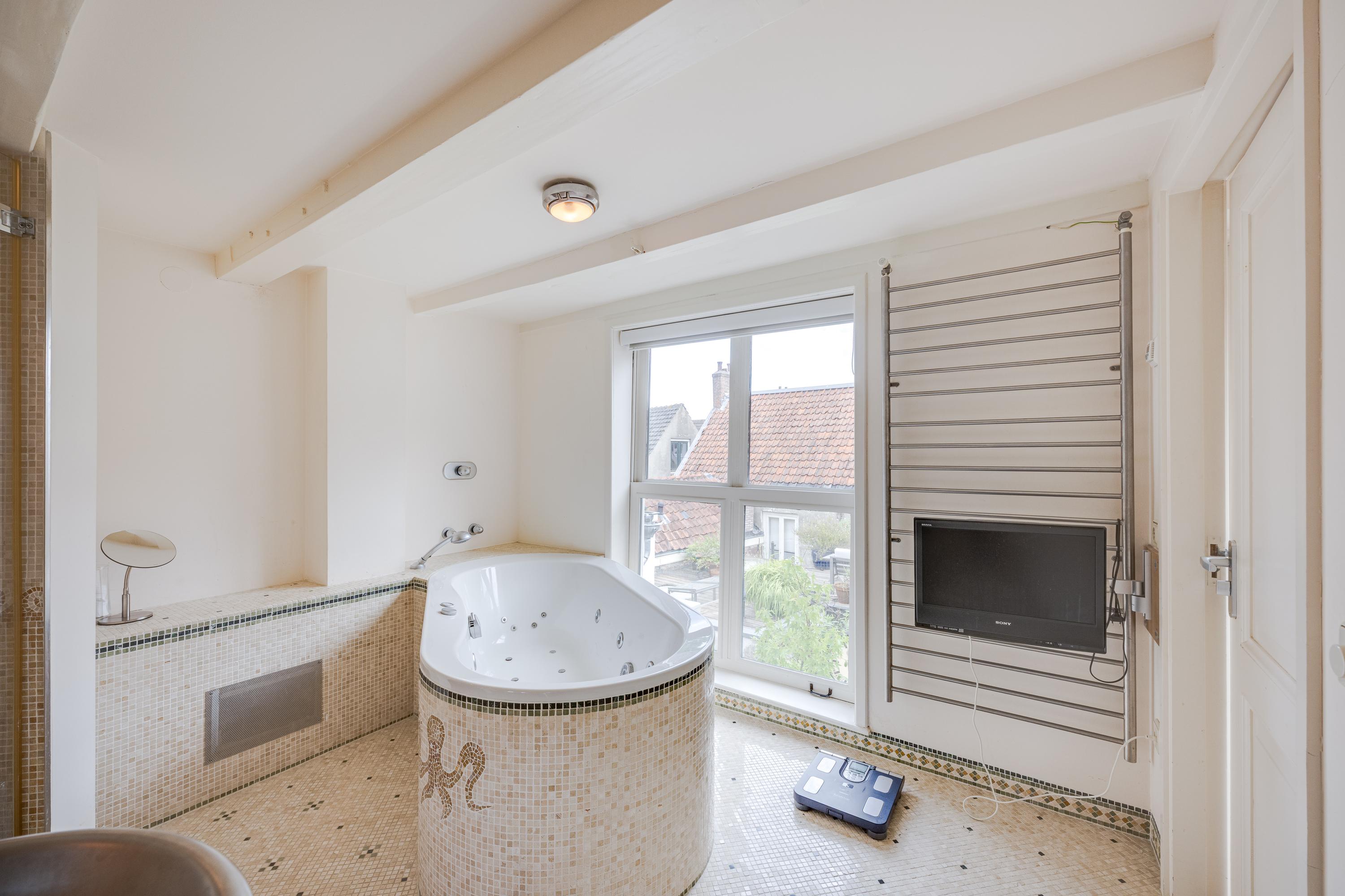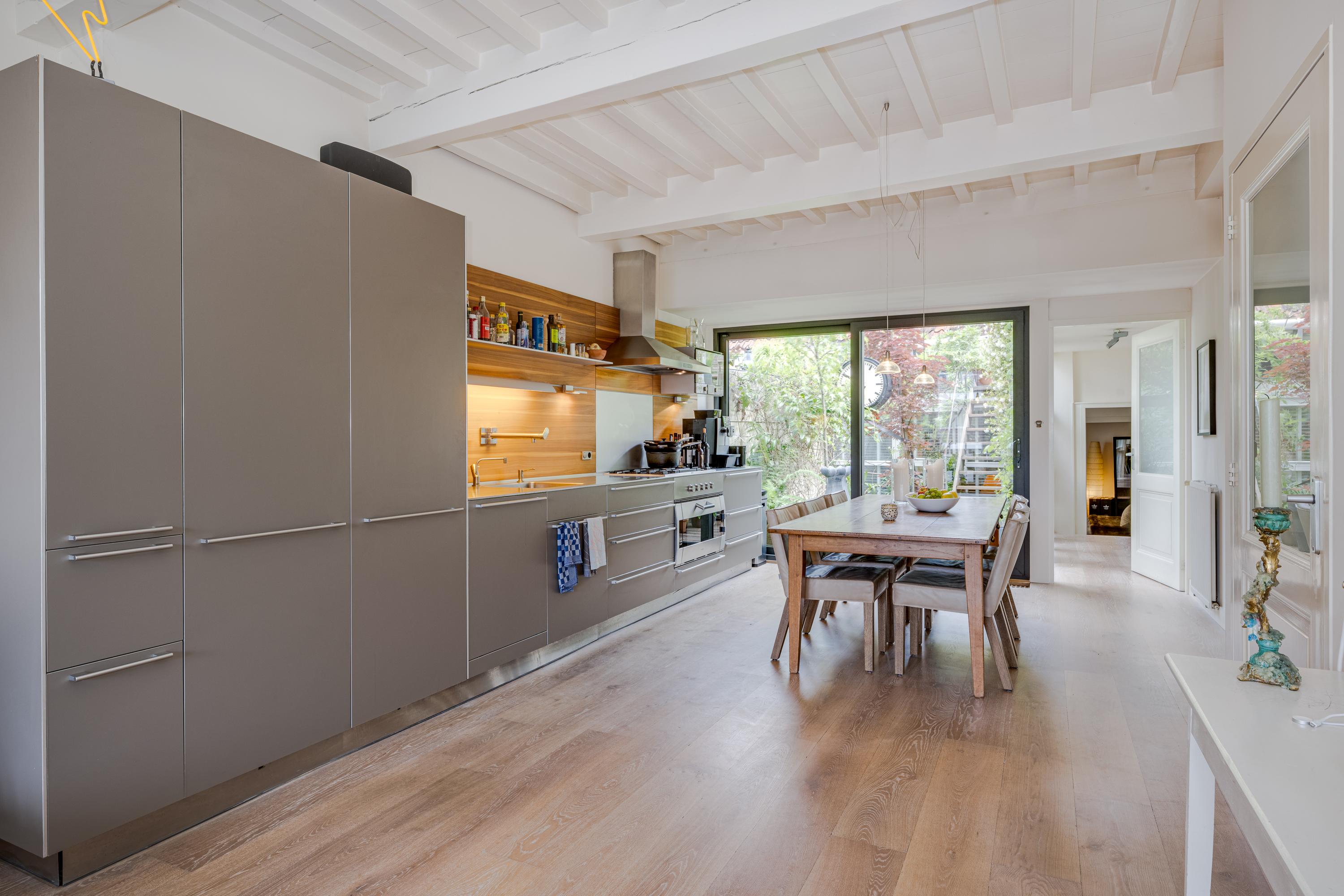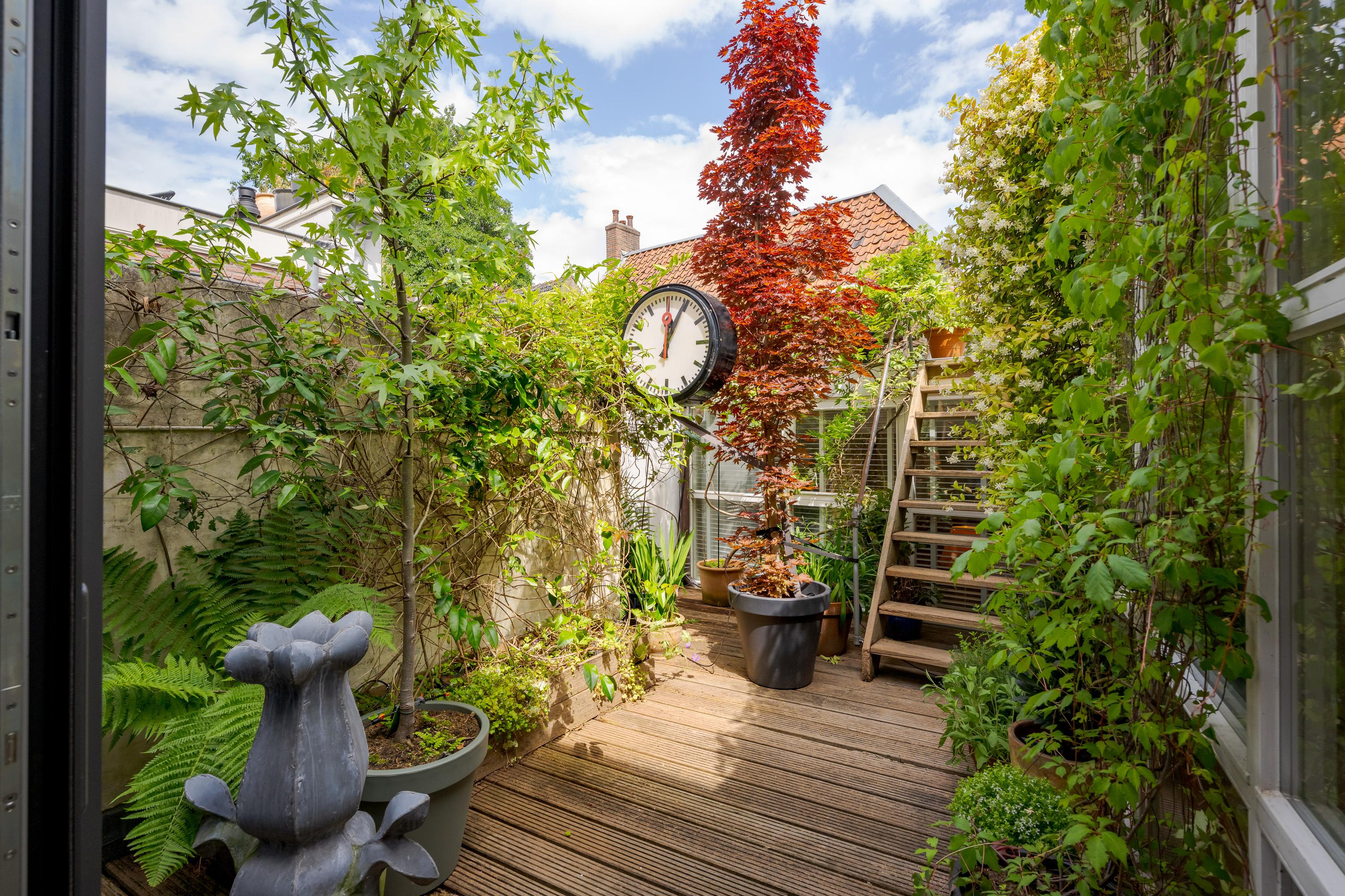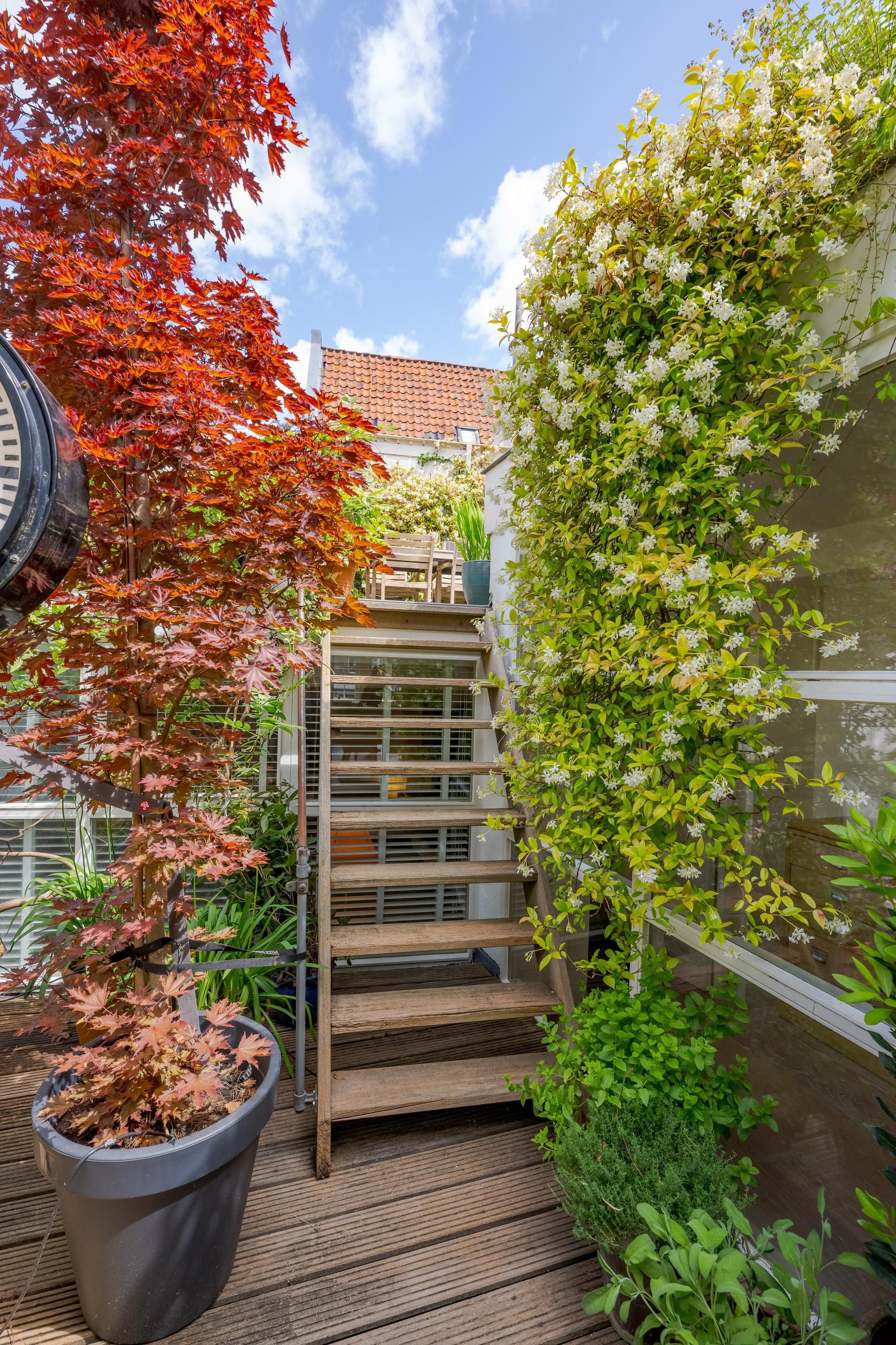 What also makes this property unique is the remarkable combination of a stately, classic façade on the canal side (three windows wide, facing south) and a surprisingly spacious rear garden of over nine meters. On the first floor, at the heart of the house, lies a colorful courtyard garden, and a dozen steps up, a spacious and sunny roof terrace with plenty of privacy and several seating areas.