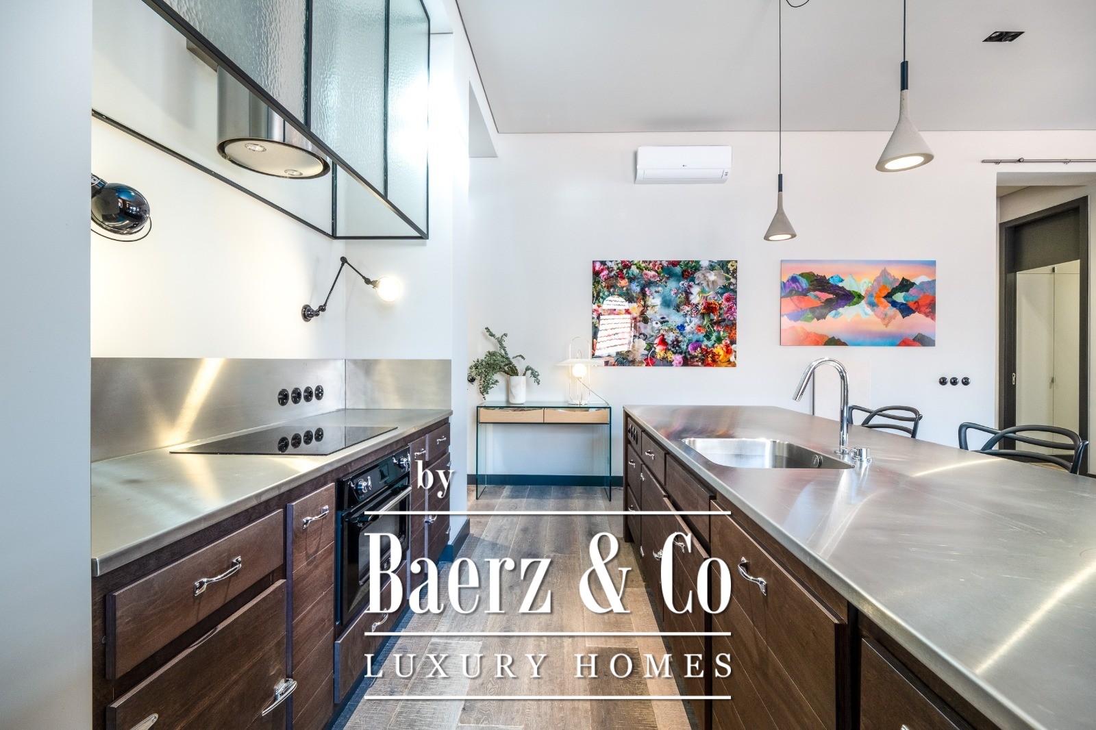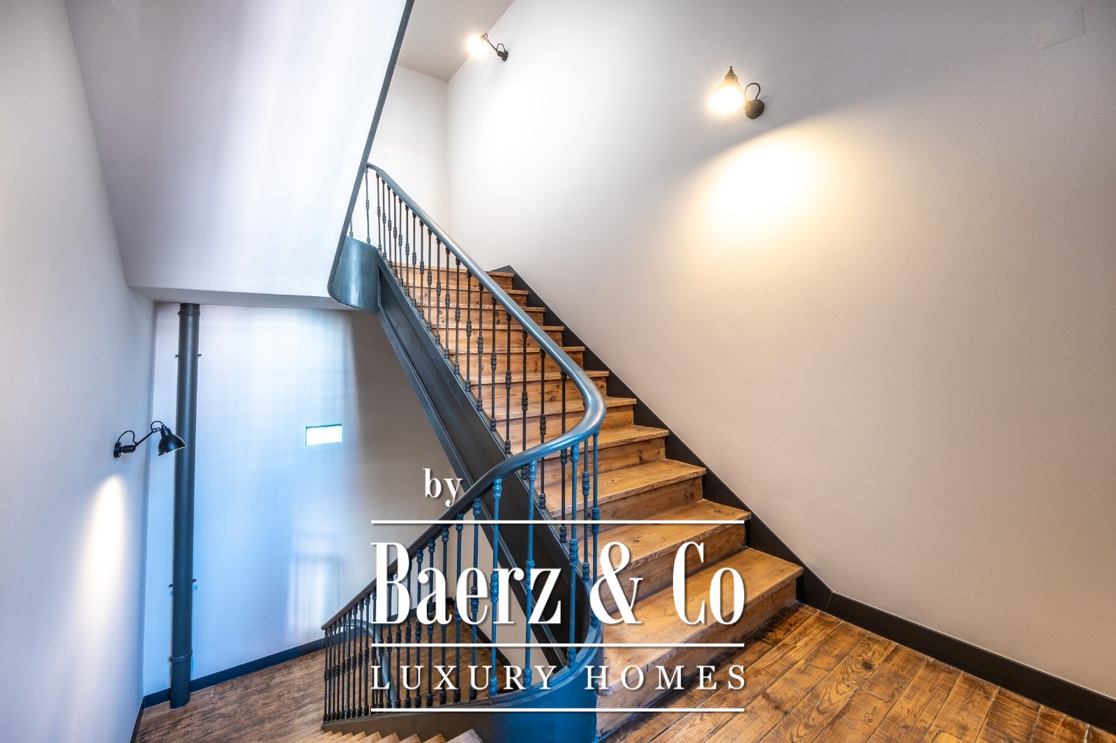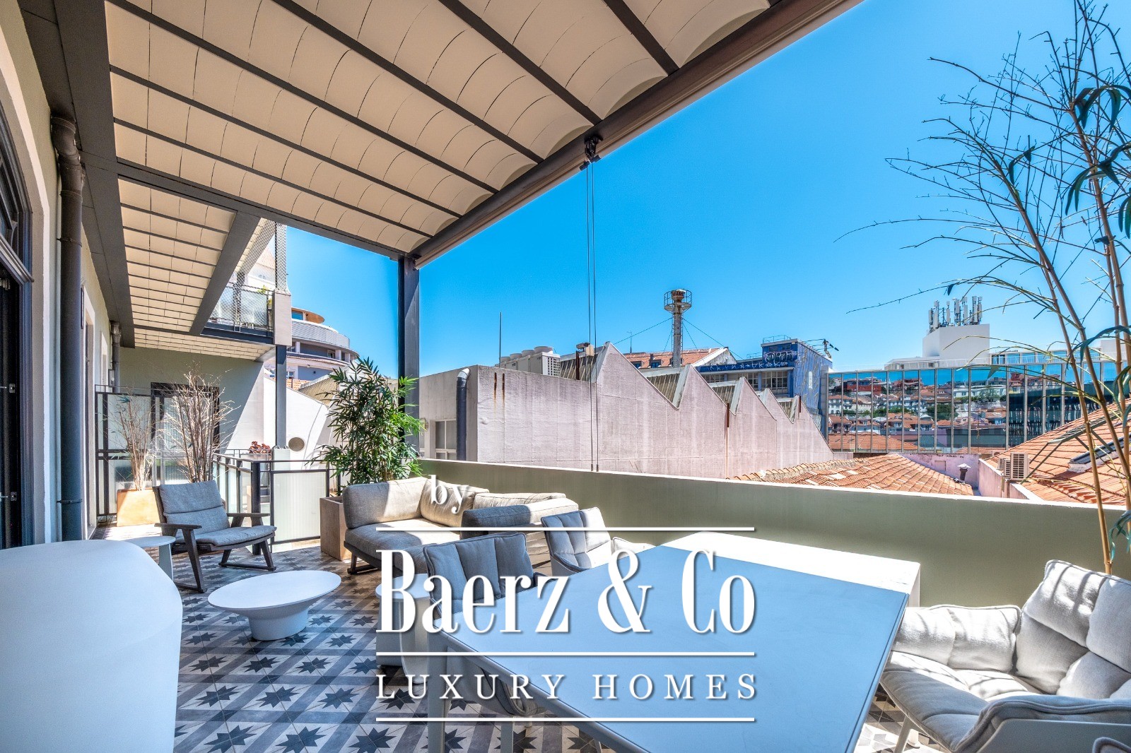 Located on a quiet cul-de-sac in Cais do Sodré, one of Lisbon’s most vibrant and historic neighborhoods, this 173 m² two-bedroom apartment offers a loft-style design with a distinct contemporary touch. Set on the second floor of a 19th-century building with elevator access, it underwent a full renovation in 2019 with meticulous attention to detail and high-quality materials.The generous living area impresses with 3.7 m high ceilings, a striking 14 m exposed stone wall, and large arched windows that fill the space with natural light thanks to its south and east orientation. The kitchen is seamlessly integrated with the living room, combining design and functionality with stainless steel countertops, oak cabinetry, and statement lighting.The living experience extends