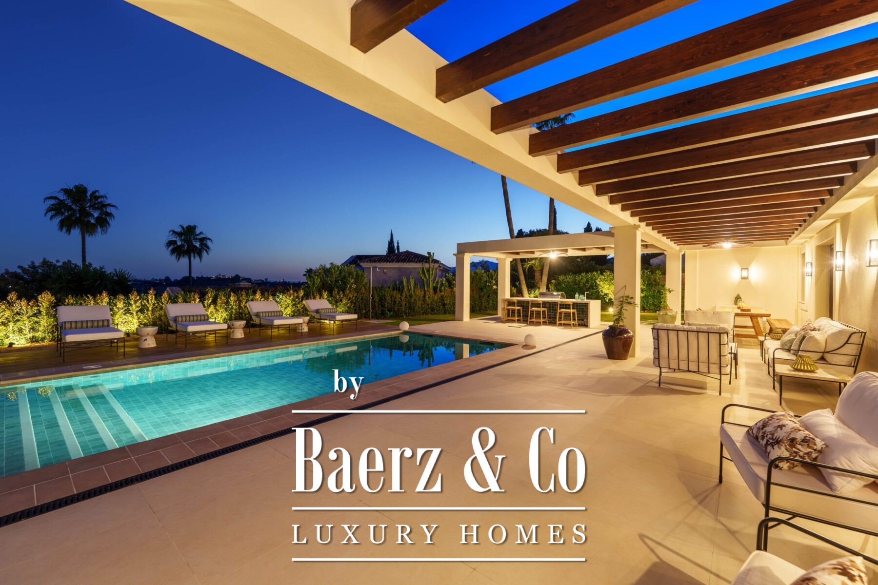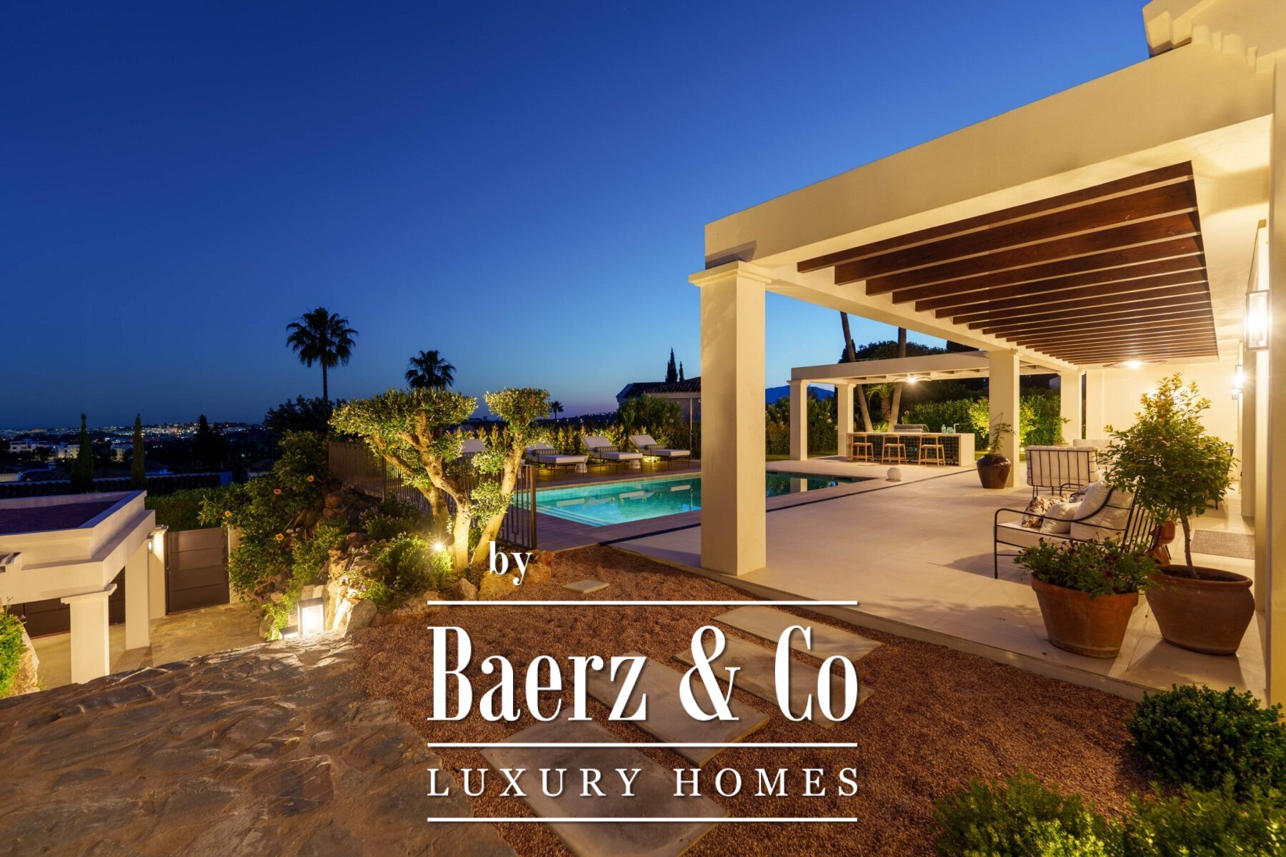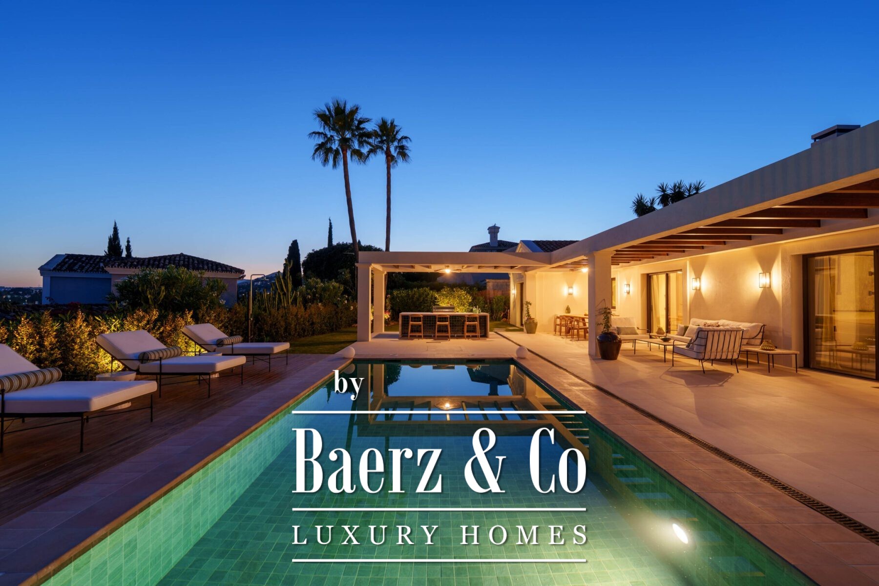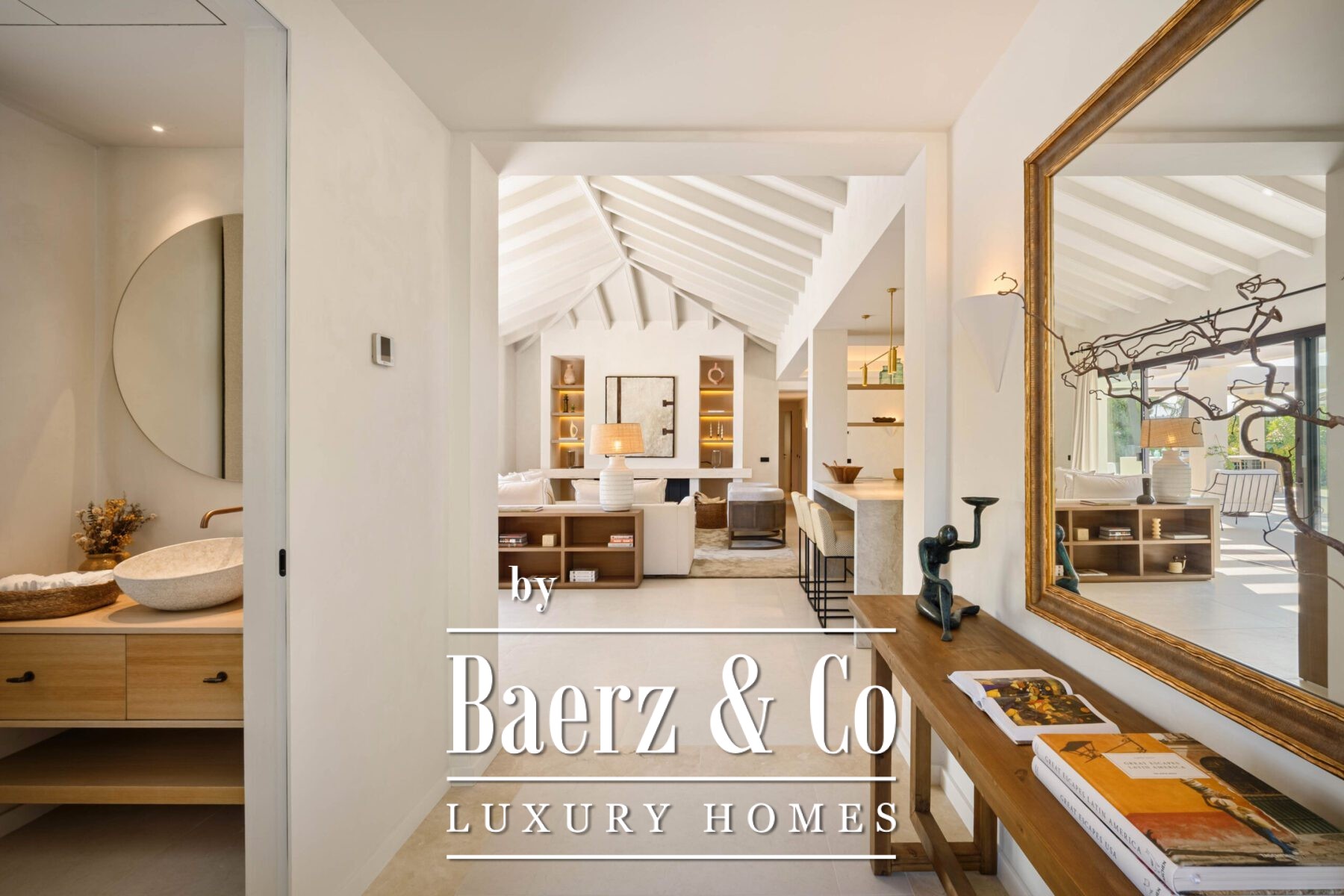A beautifully reimagined single-level villa nestled in the heart of Nueva Andalucía, just minutes from the renowned Los Naranjos Golf Course. Designed and developed by known developers, this exquisite 4-bedroom home merges Mediterranean elegance with contemporary comforts. Set on a lush, elevated plot, the villa offers privacy, tranquillity, and breath-taking views across the valley to the sea, all while being moments away from Marbella’s best golf, dining, and beach experiences.