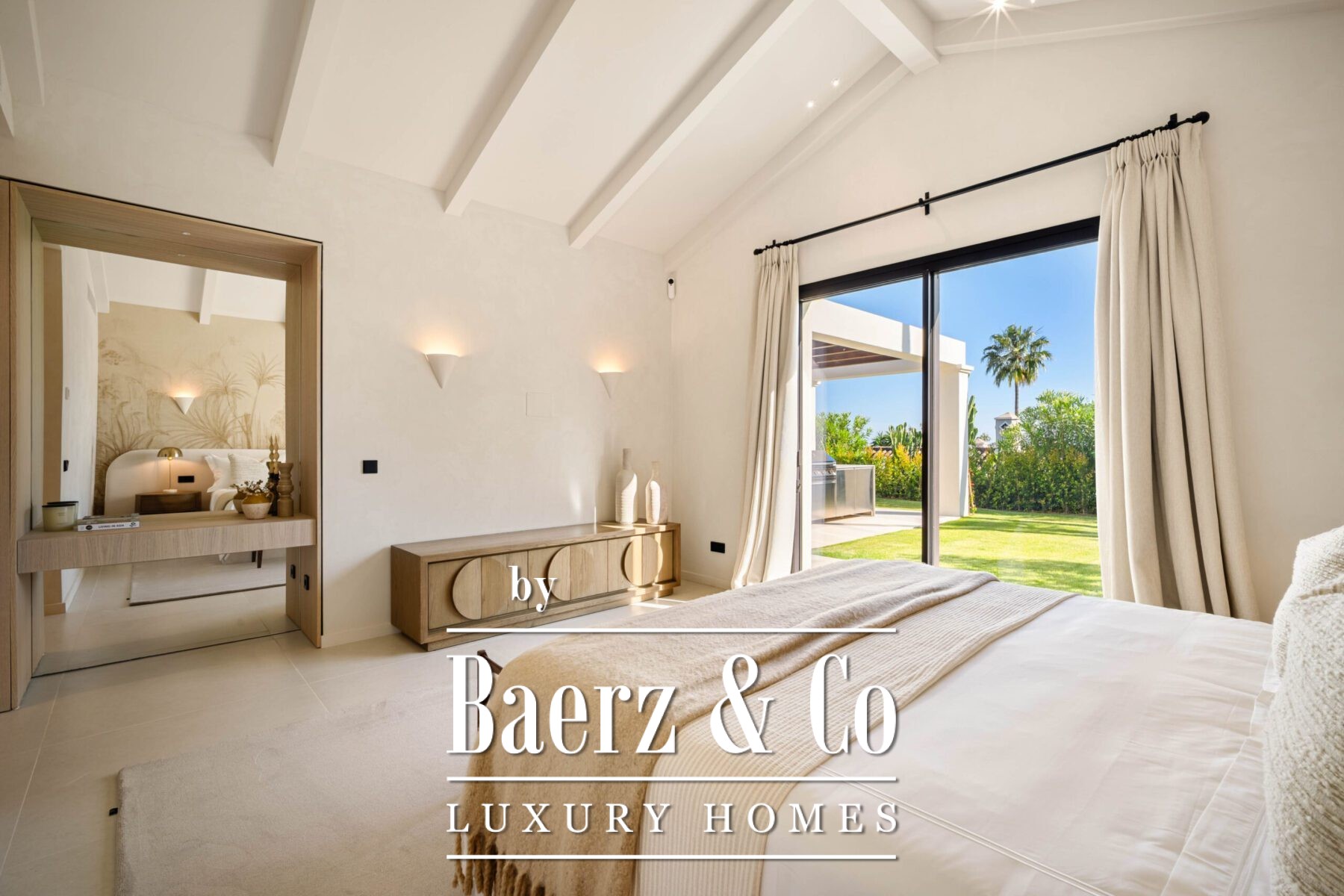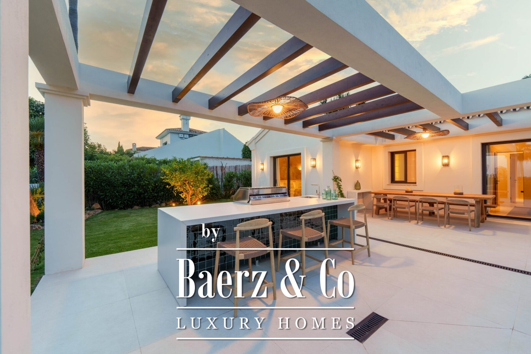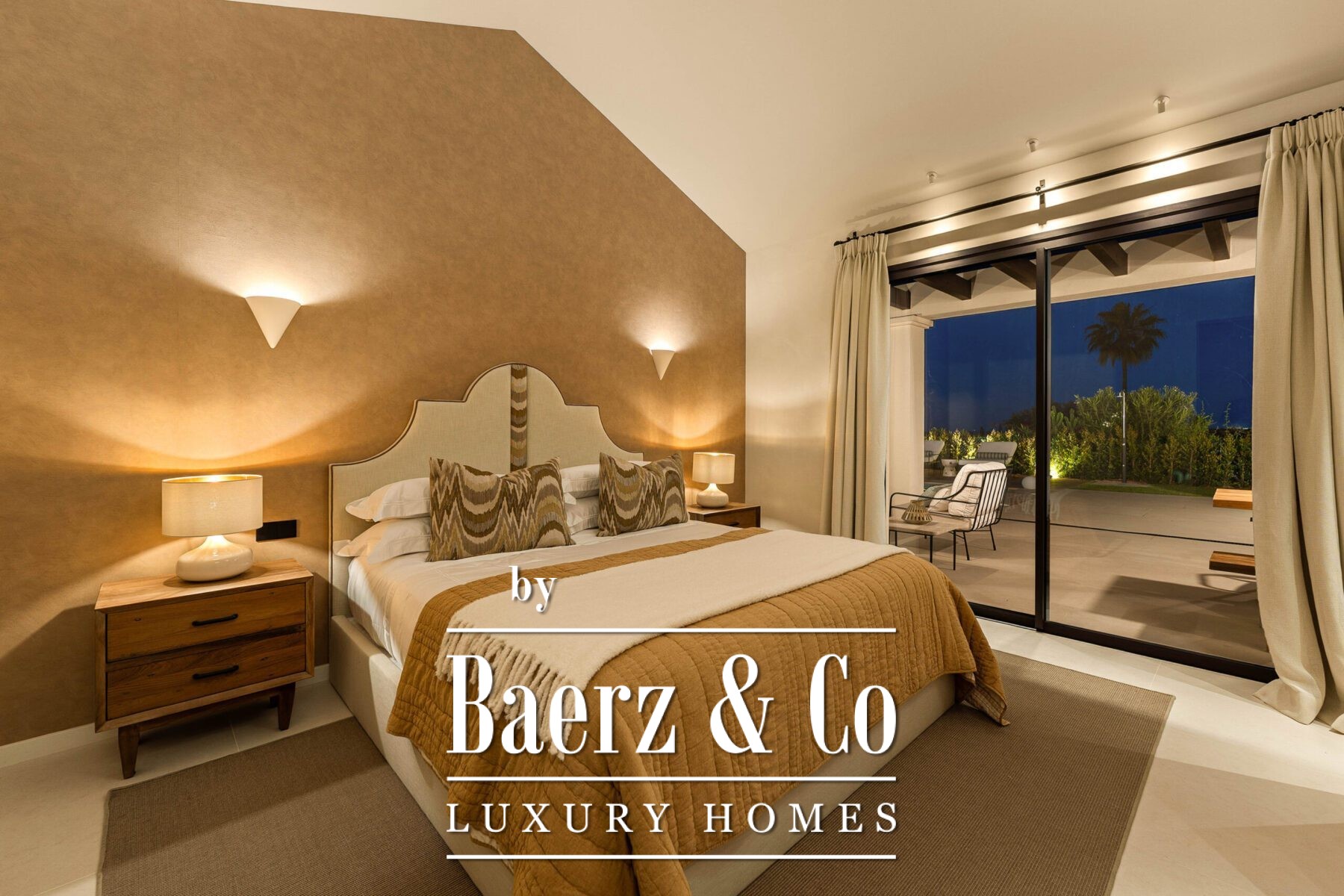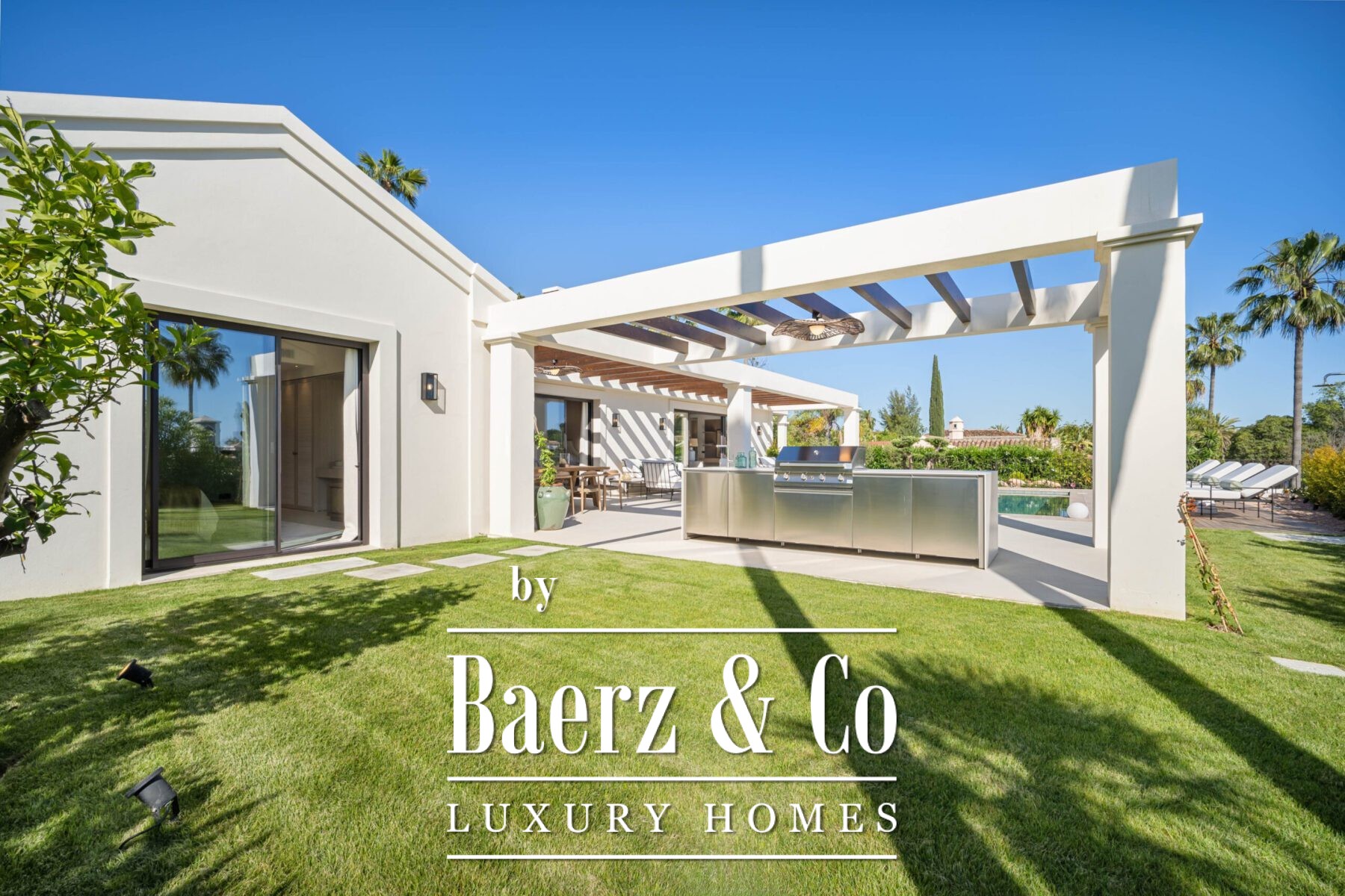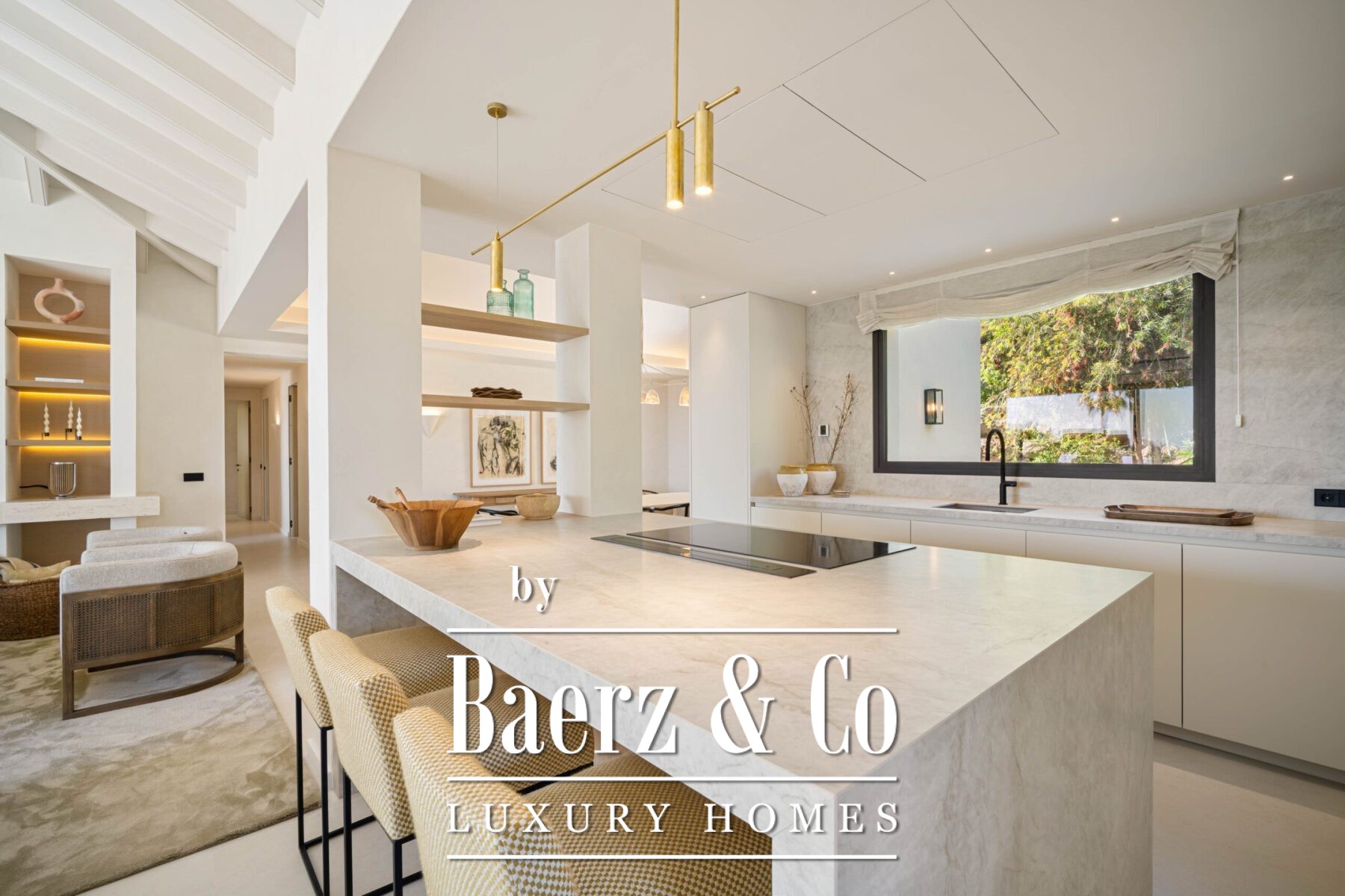 A beautifully reimagined single-level villa nestled in the heart of Nueva Andalucía, just minutes from the renowned Los Naranjos Golf Course. Designed and developed by known developers, this exquisite 4-bedroom home merges Mediterranean elegance with contemporary comforts. Set on a lush, elevated plot, the villa offers privacy, tranquillity, and breath-taking views across the valley to the sea, all while being moments away from Marbella’s best golf, dining, and beach experiences.