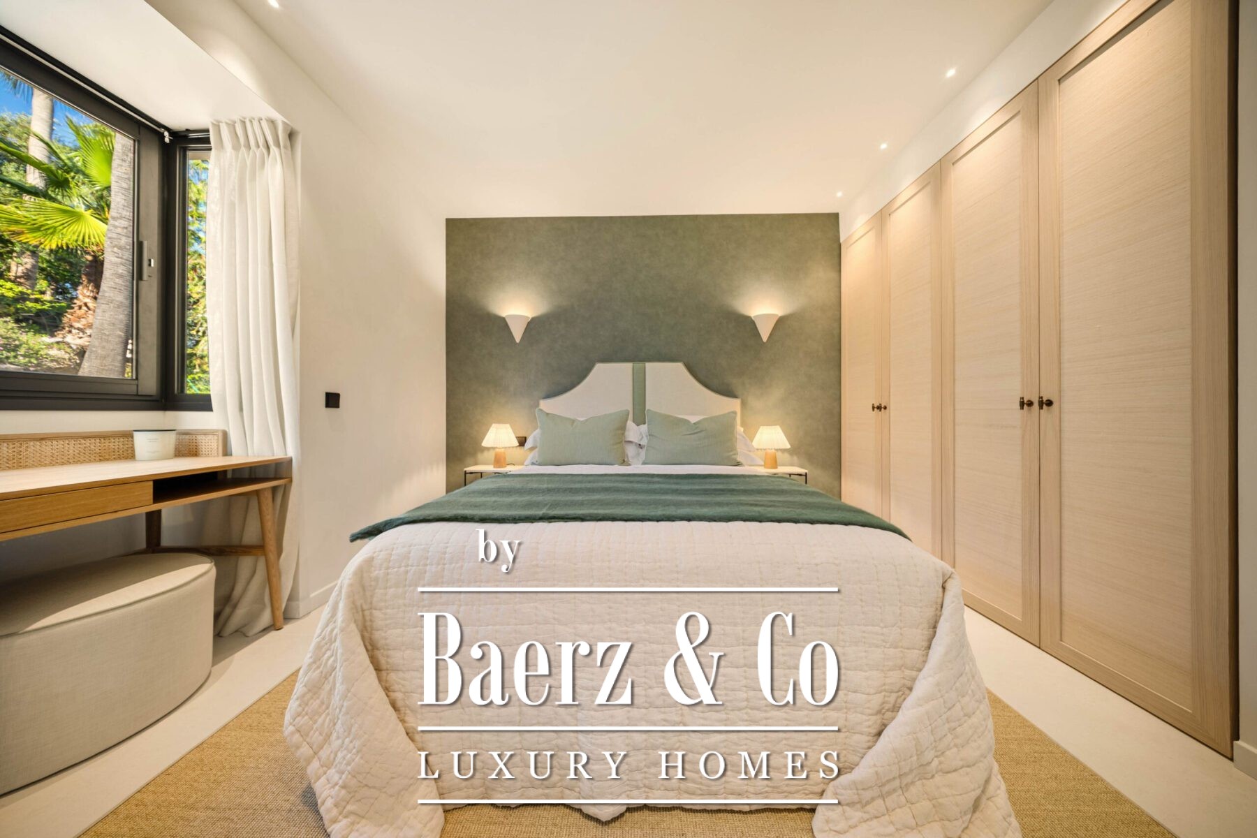 Outside, manicured gardens surround multiple alfresco living zones, ideal for entertaining or unwinding in complete seclusion. A rooftop terrace captures stunning views, while a peaceful courtyard with a water feature offers an intimate retreat. With four spacious bedrooms, including a serene master suite with garden access, and luxurious amenities throughout, this villa is a rare fusion of sophisticated living and relaxed coastal charm in one of Marbella’s most desirable locations.