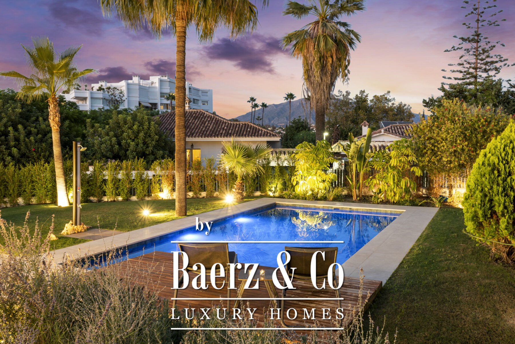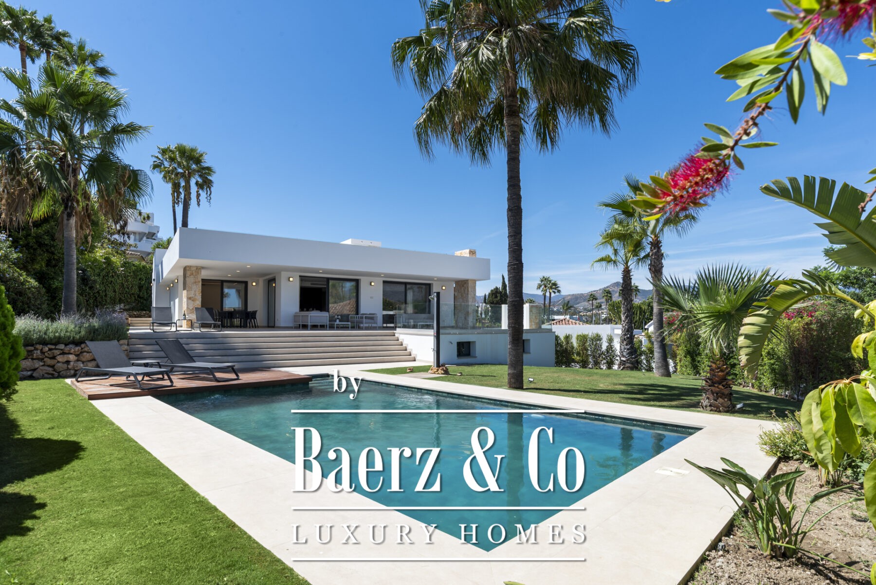 Villa Marbella with sea and mountain views welcomes you to an atmosphere of refined Mediterranean living. Ideally situated within walking distance of Guadalmina Golf Club and only minutes from the coastline, this 320 m² villa offers both seclusion and accessibility in Marbella’s coveted surroundings.