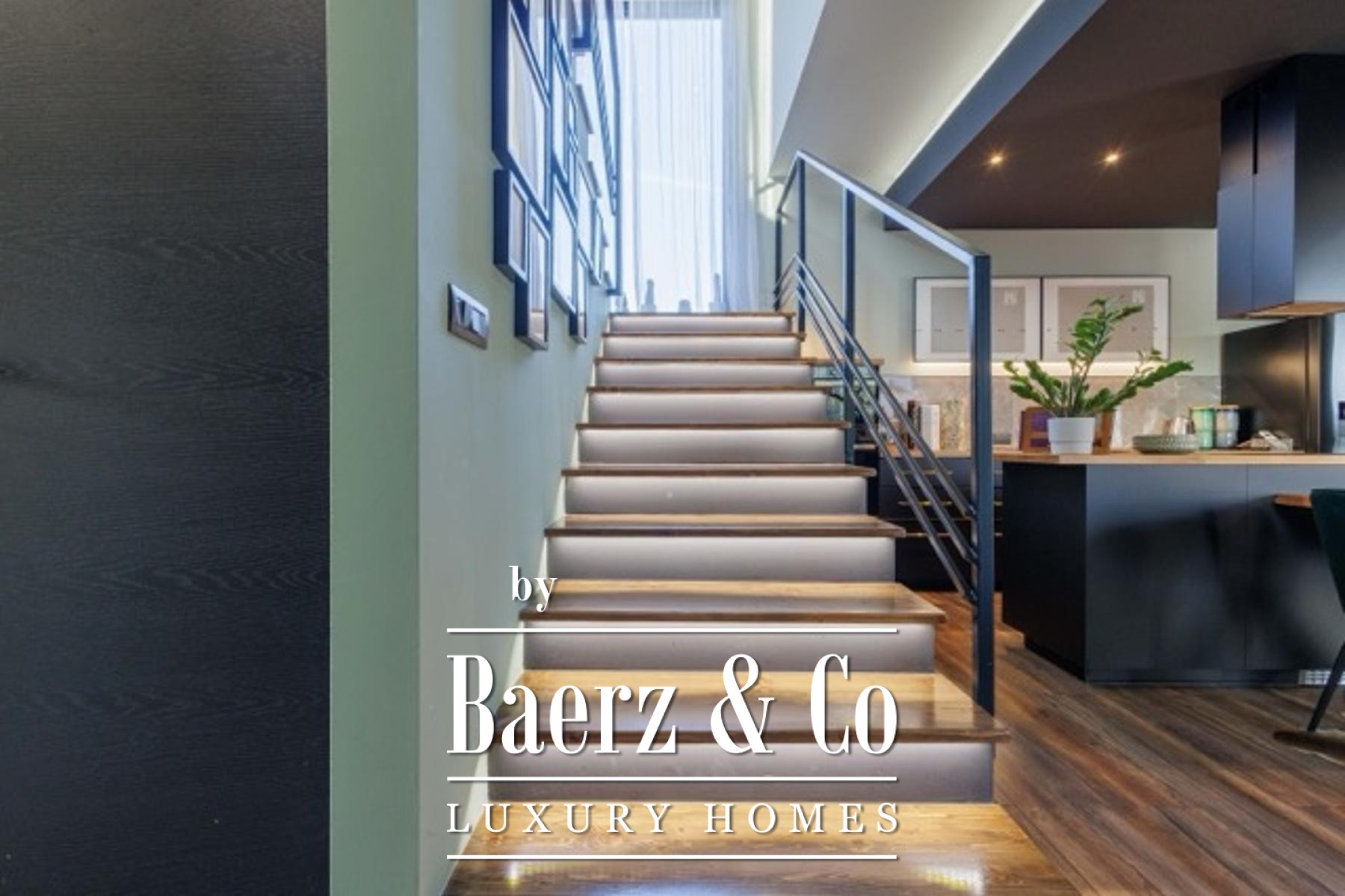 On the ground floor, an expansive living room anchors the home, featuring bespoke furnishings sourced from Germany, Italy, and the Czech Republic. The interplay of soft color palettes, a statement fireplace, and generous glazing blurs indoor and outdoor life, opening to the private pool and surrounding terrace. Adjoining rooms include a thoughtfully equipped kitchen, a guest bedroom, a toilet, additional service spaces, and direct garden access.