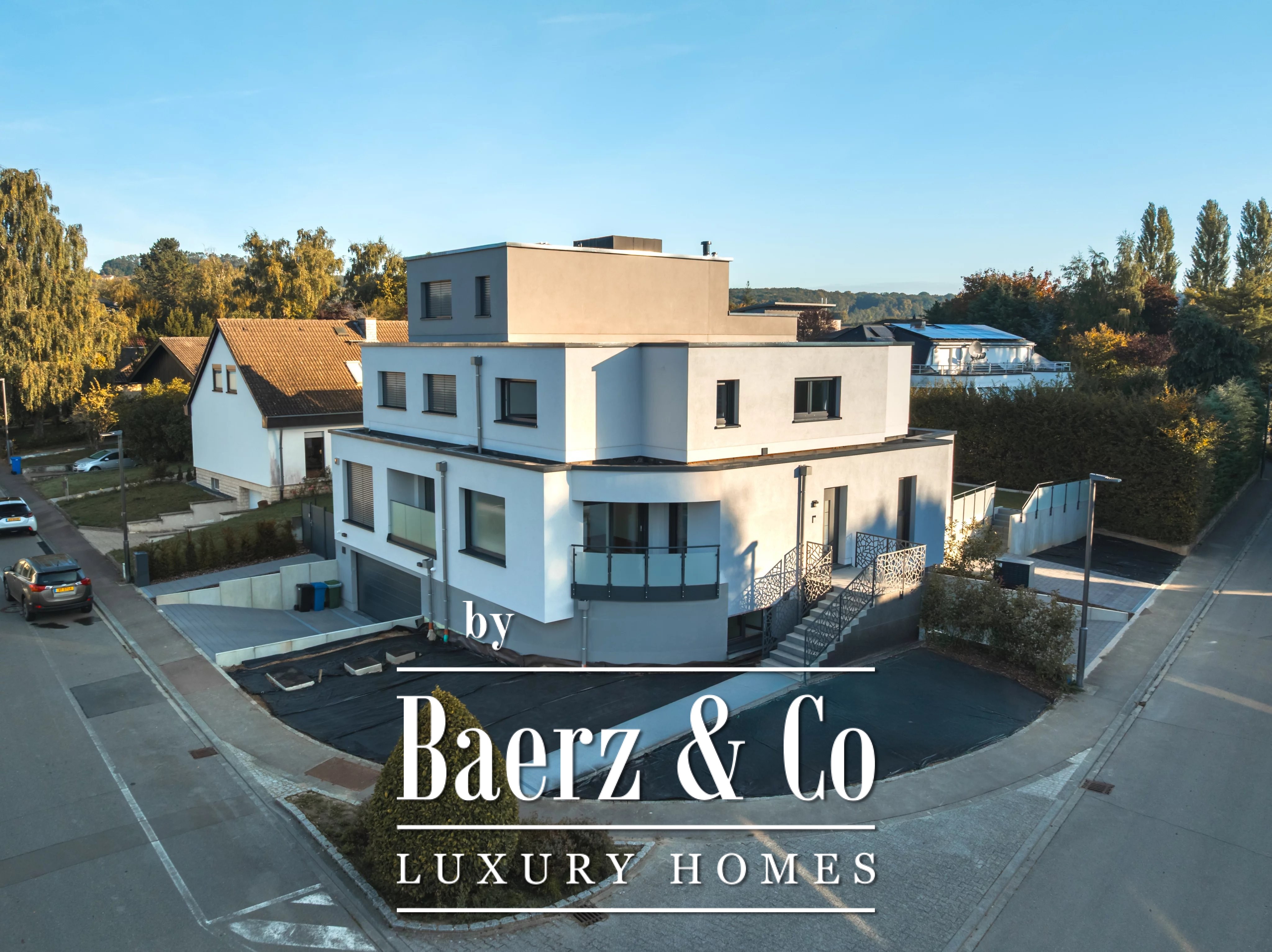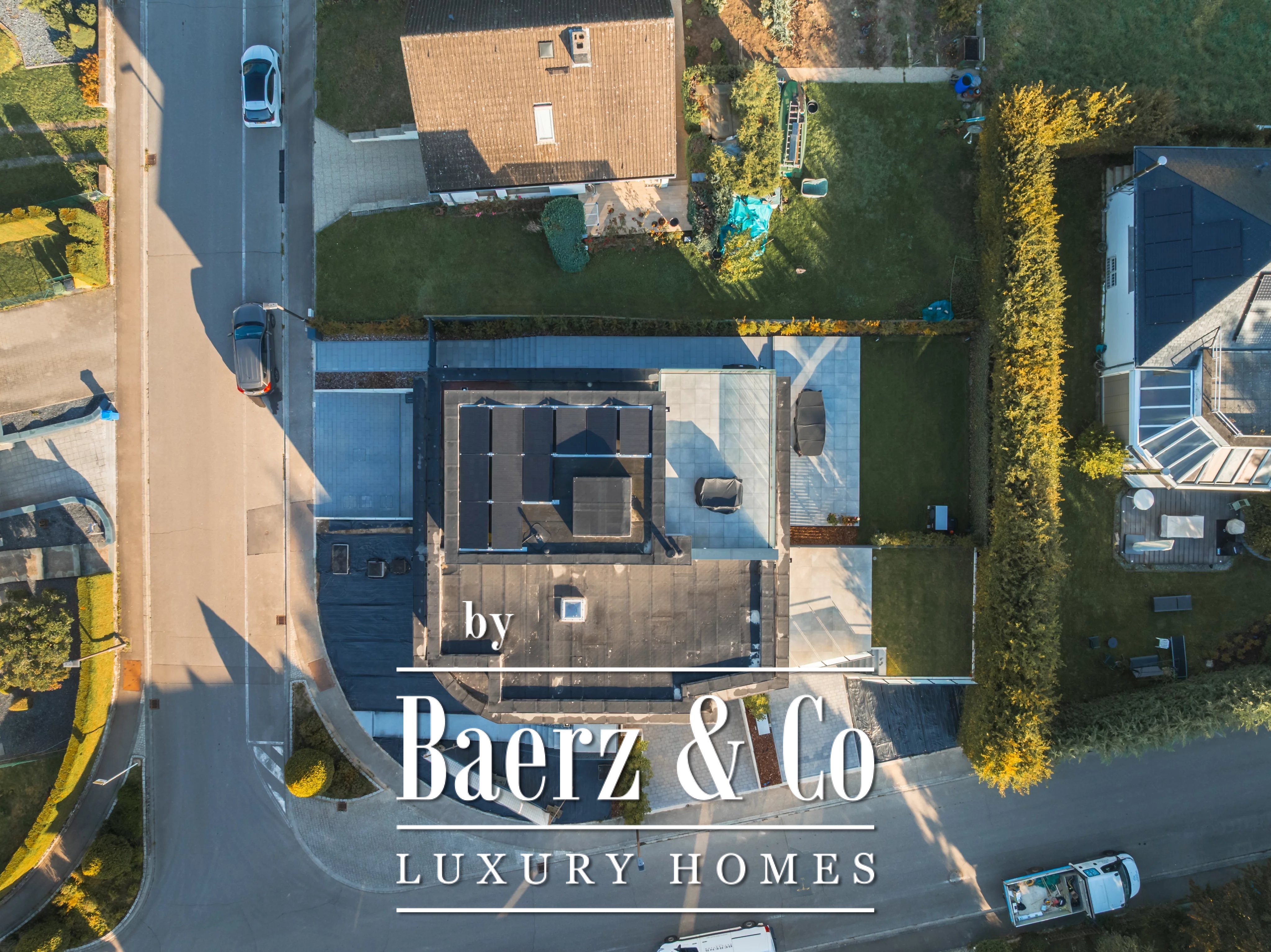 Triple glazing, sliding windows, electric awnings, and an advanced alarm system underscore a commitment to comfort and security throughout this A+ energy class home. The 40.45 m² double garage and videophone entry add further assurance. For those seeking a luxury single-family house for sale in Niederanven, this address articulates contemporary architecture with enduring discretion.