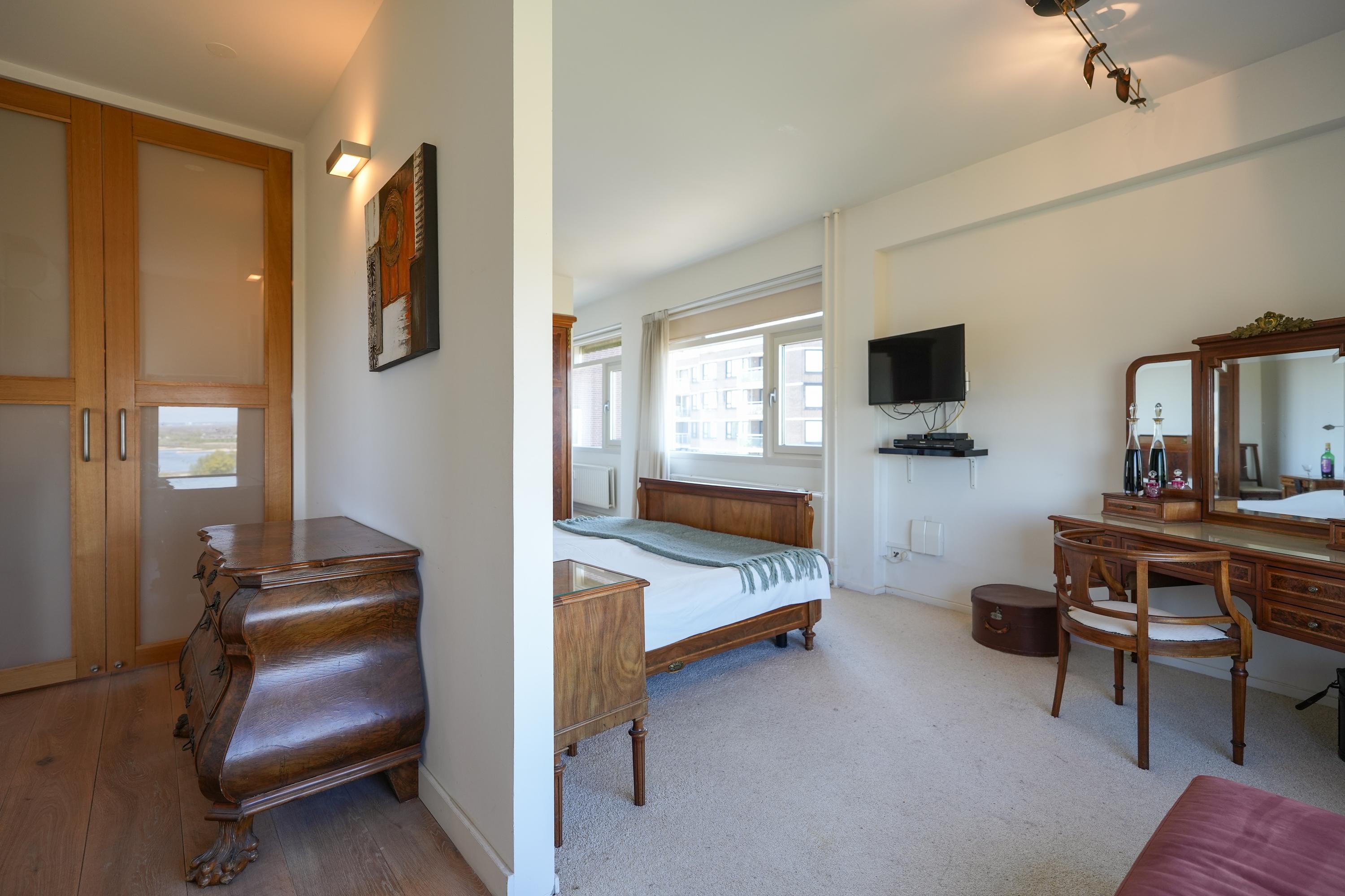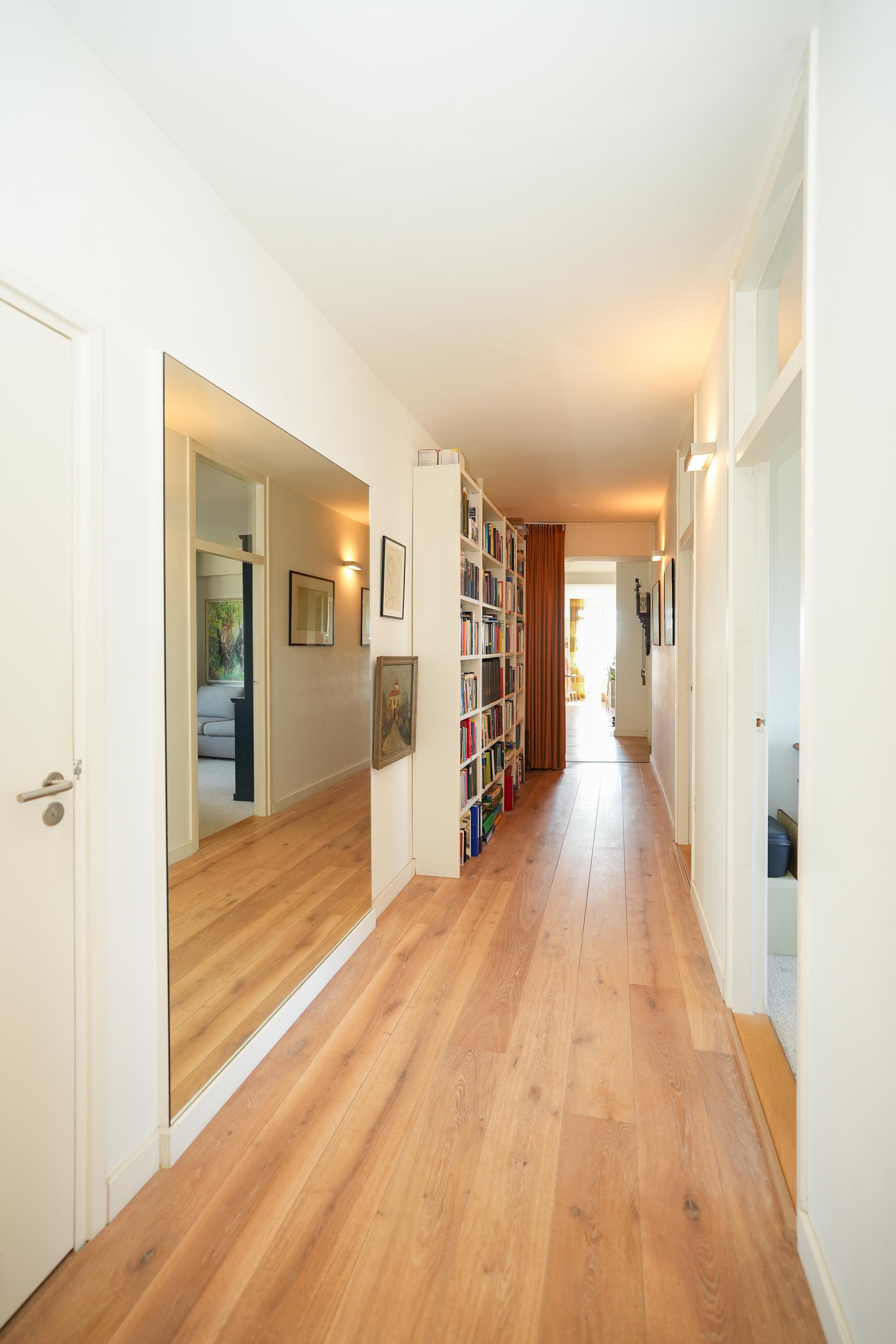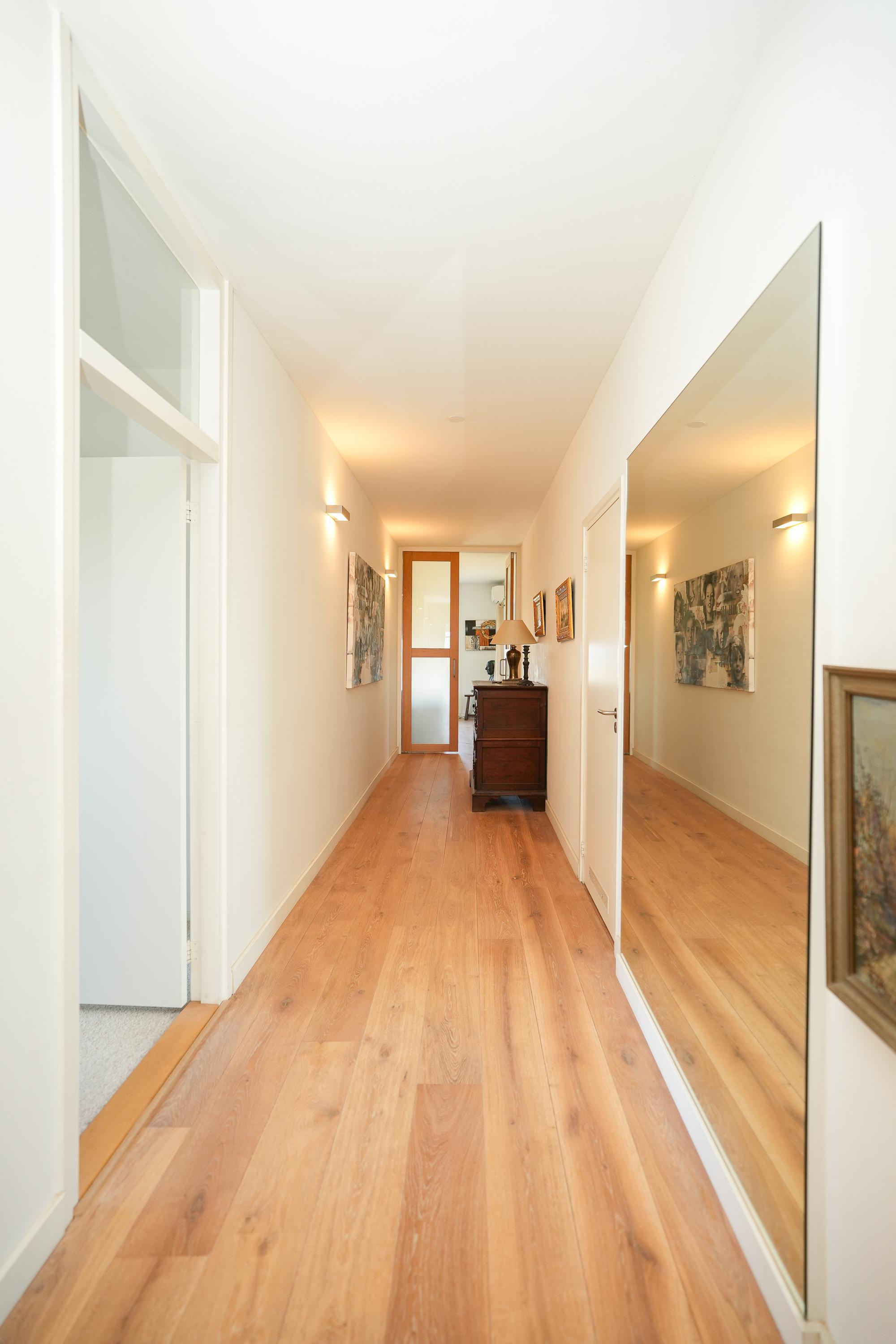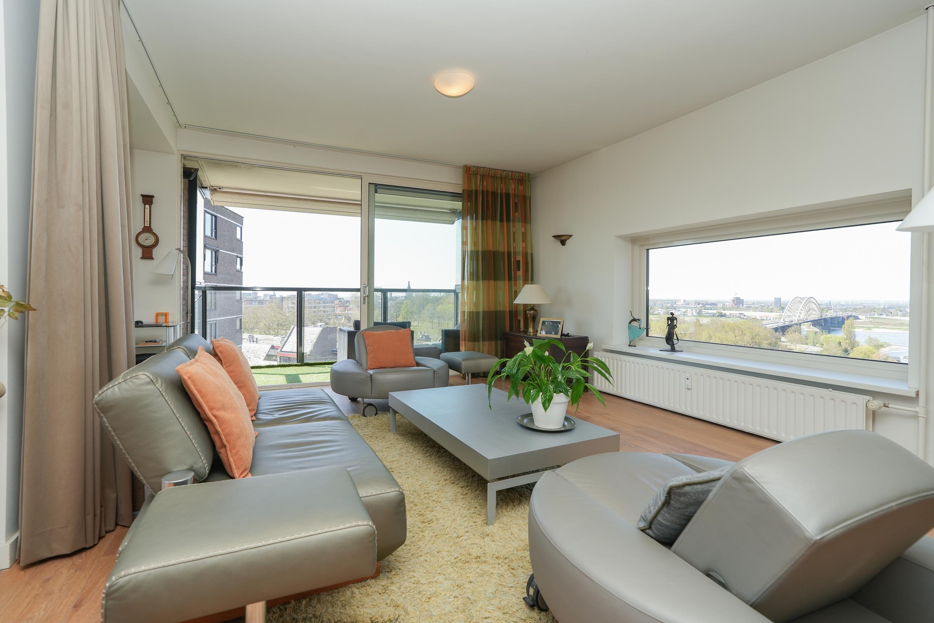 This property was created from two separate flats (numbers 44 and 46), which were merged into one generous unit in 2009. Number 44 now forms the living area, while number 46 serves as the bedroom wing. Upon merging, the entire property was thoroughly renovated, using high-quality materials and a finish that has been taken care of in detail. The living room and hallway feature solid oak flooring, which adds to the warm, luxurious feel. Large windows offer plenty of light and impressive sightlines with panoramic views over the Waal bridge, the Ooijpolder and the city. Privacy, comfort and finish come together here in a unique living experience.