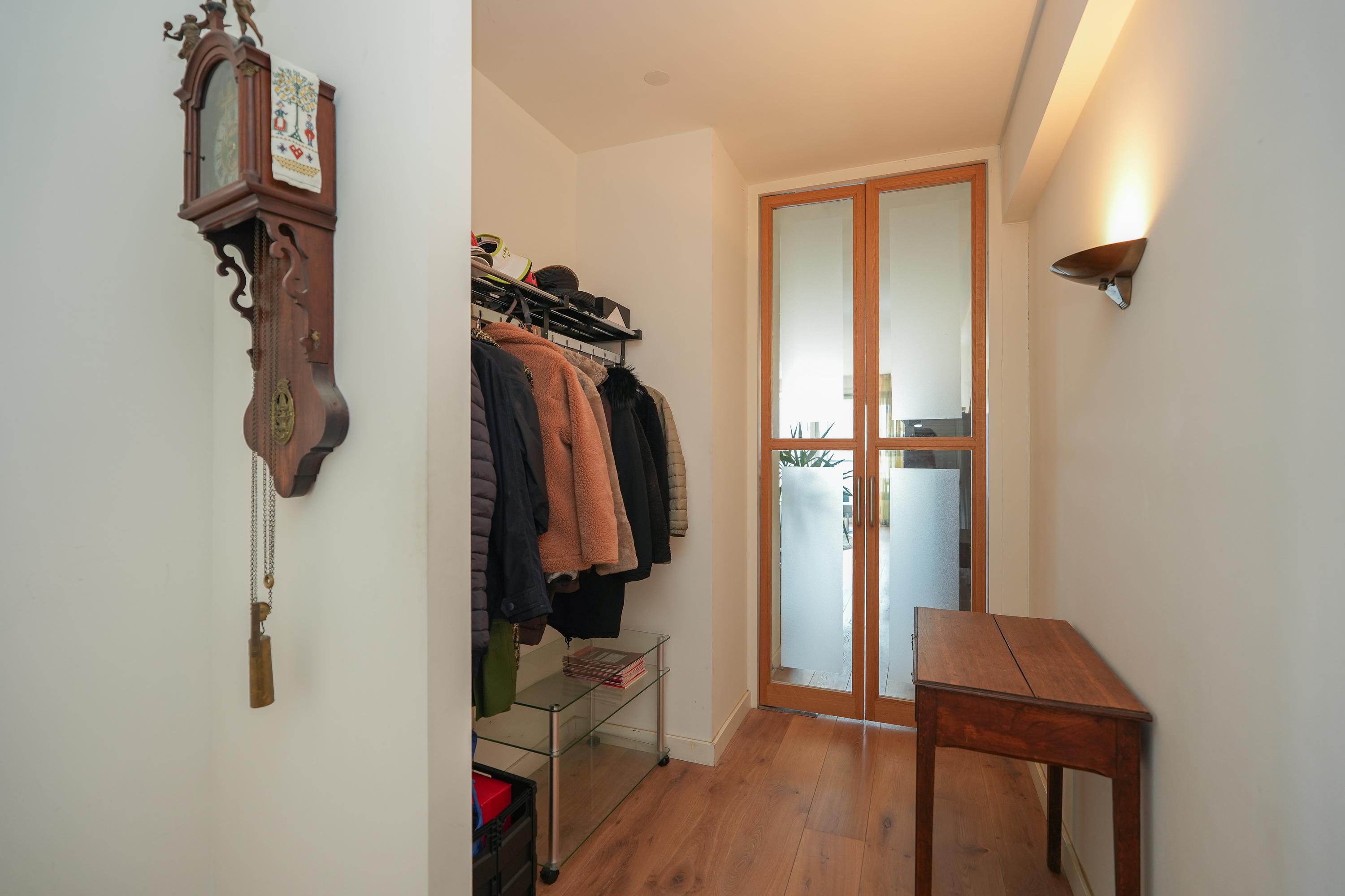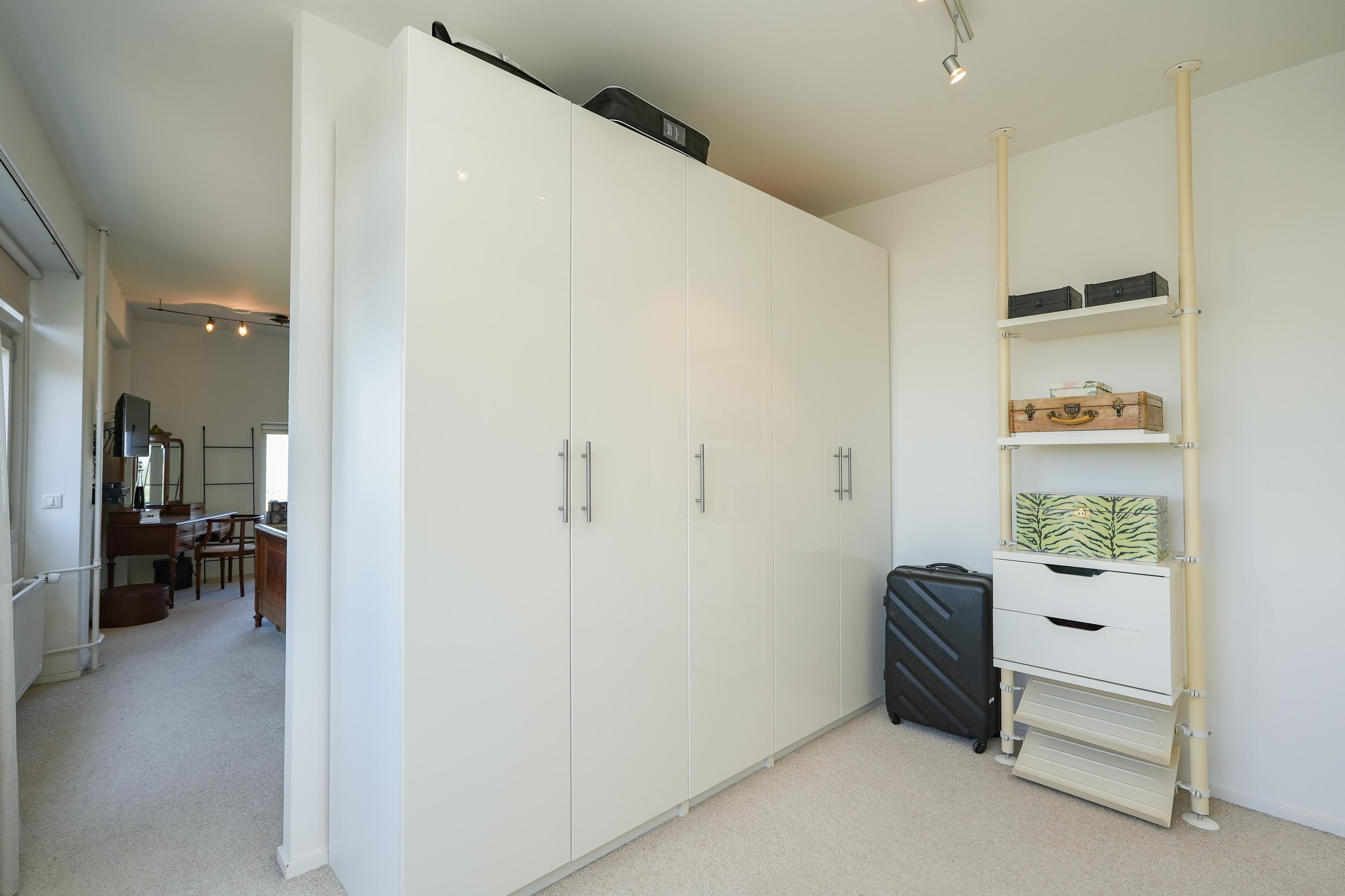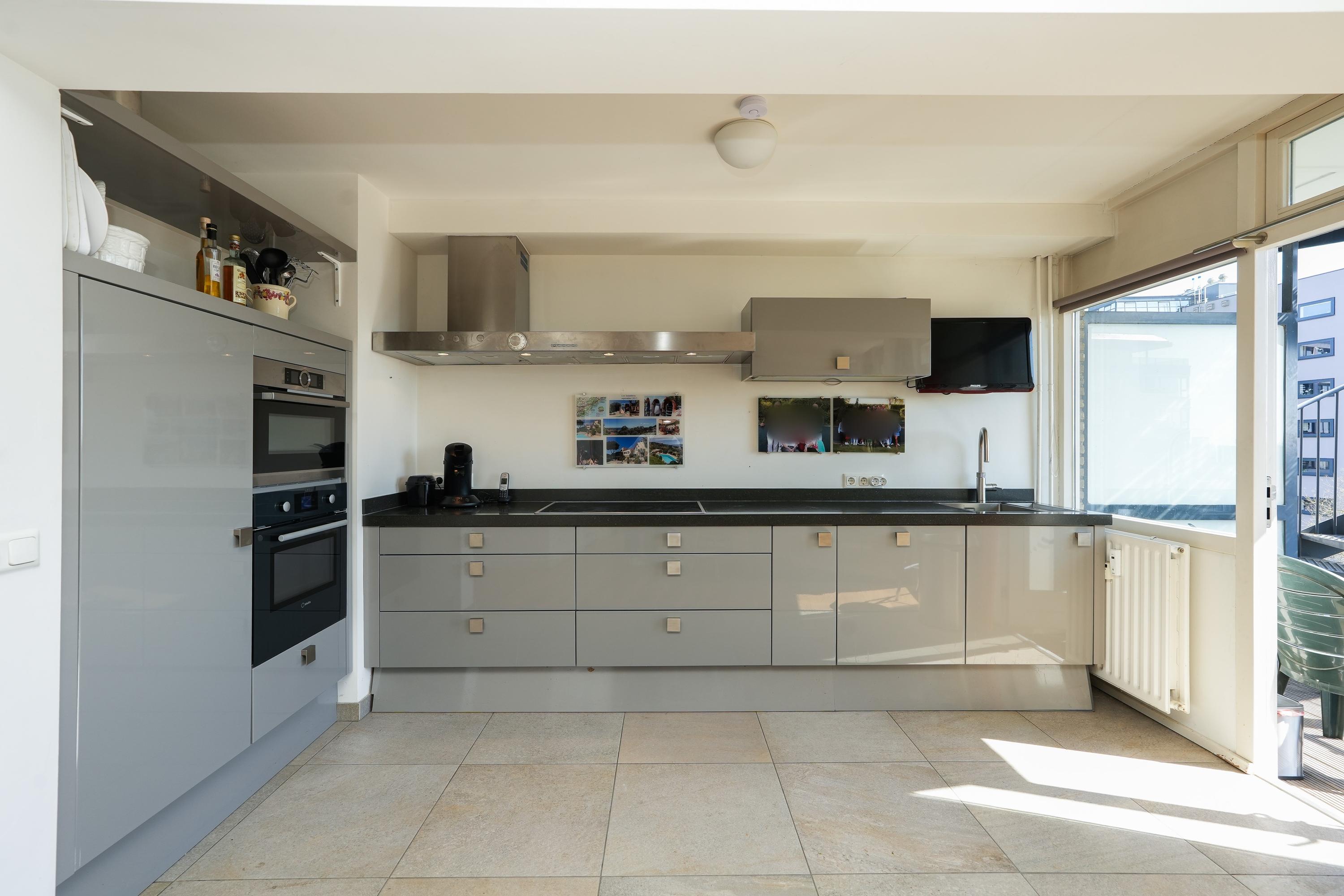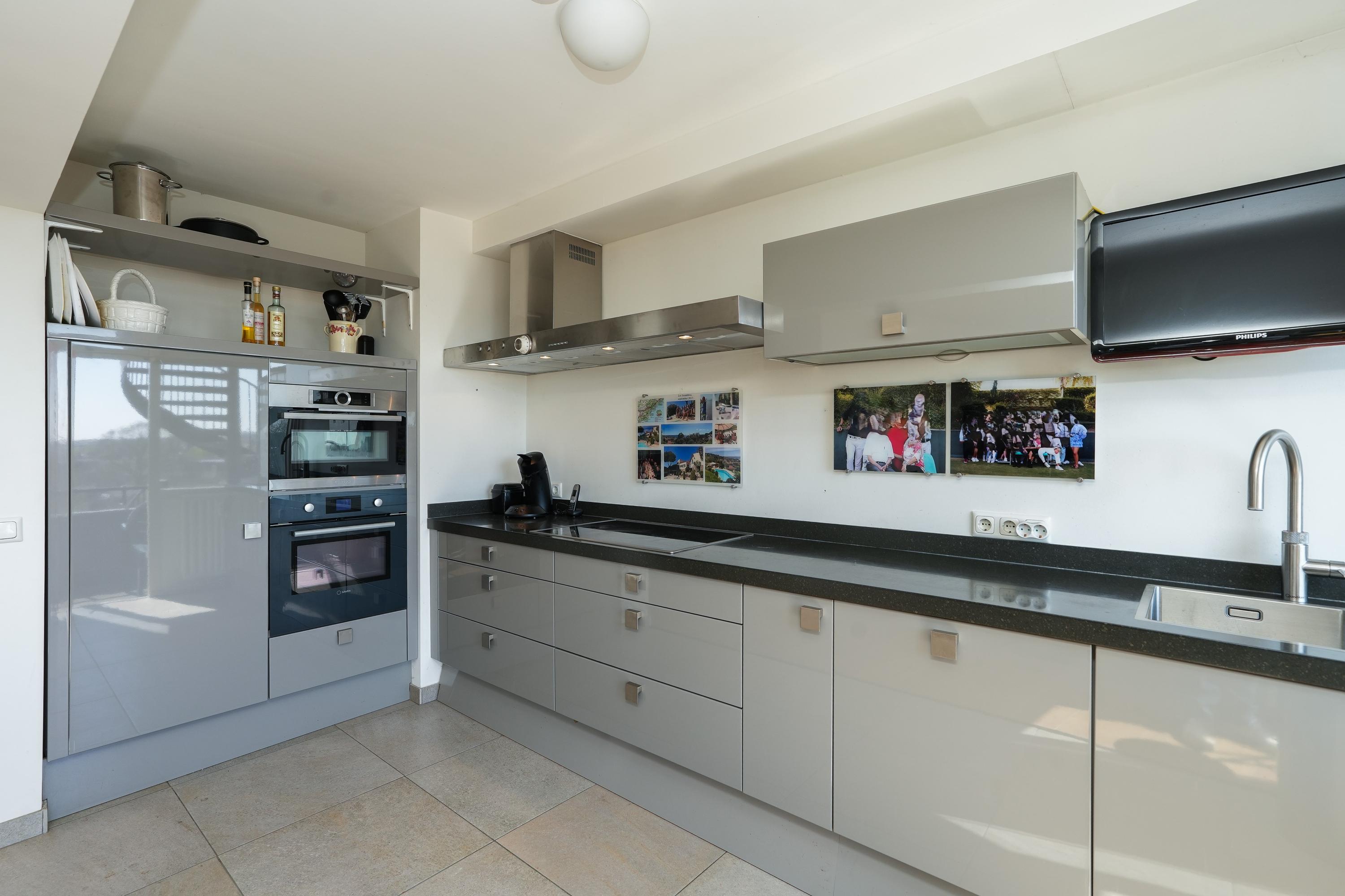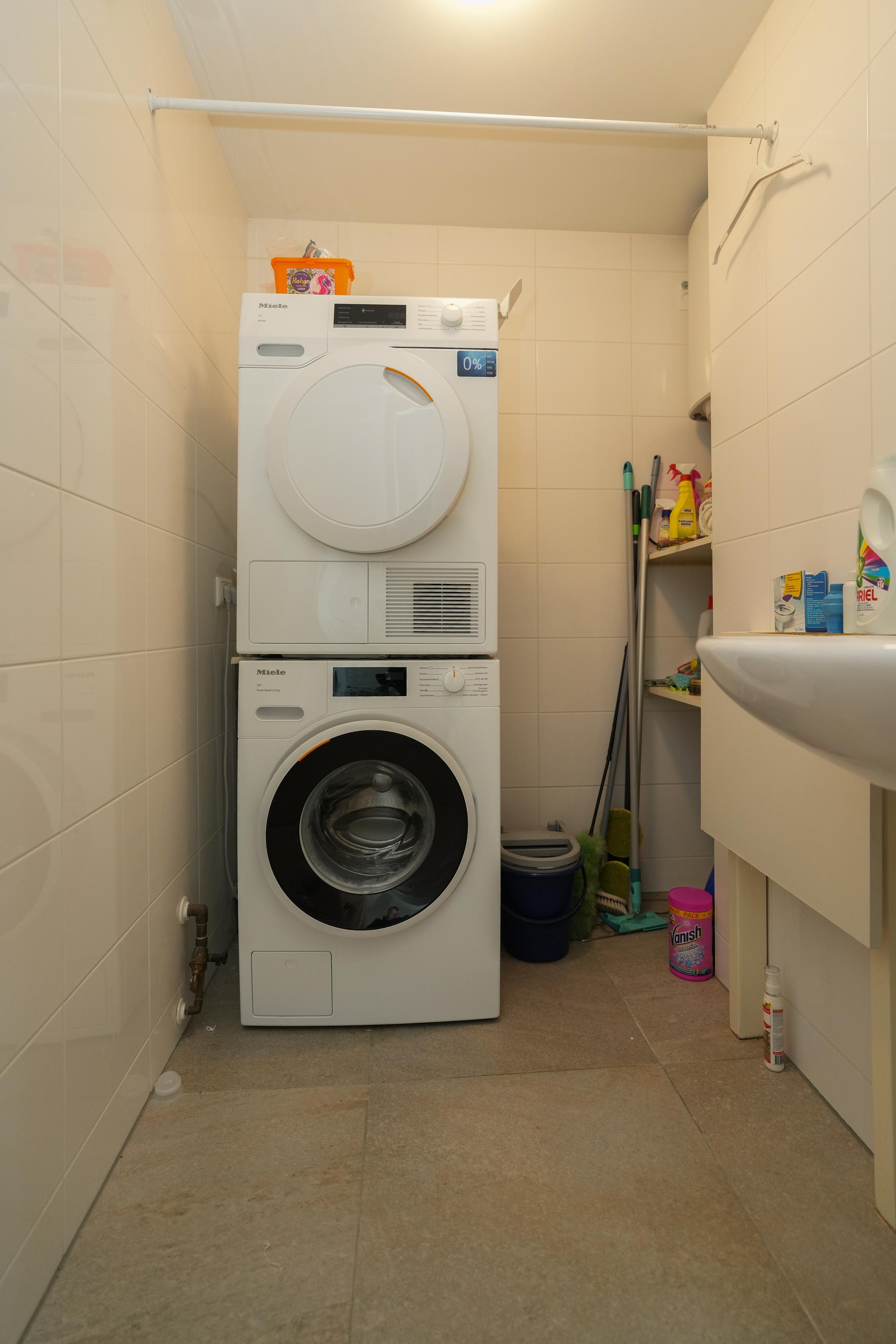Entrance flat with a secure entrance door. The tastefully finished flat features a long, wide hallway that serves as a central connection between the various rooms. Upon entering are the cloakroom, guest toilet, a laundry room and the open kitchen. The kitchen and living room are both directly accessible from the hall, making for a nice, logical walk-through. The high-quality and complete kitchen is equipped with various built-in appliances and provides access to the first balcony, which faces south. Adjacent to the kitchen/dining room is a spacious utility room with additional storage and work space. From the balcony there is a beautiful view over the city of Nijmegen and Radboud University. The living room is loft-like in design and exceptionally spacious. A modern gas fireplace separates the dining room from the seating area on the south-west side. Large windows provide a sea of light and from the sitting area a sliding door gives access to a second, west-facing balcony with fine views towards the river Waal and the iconic Waal bridge.
