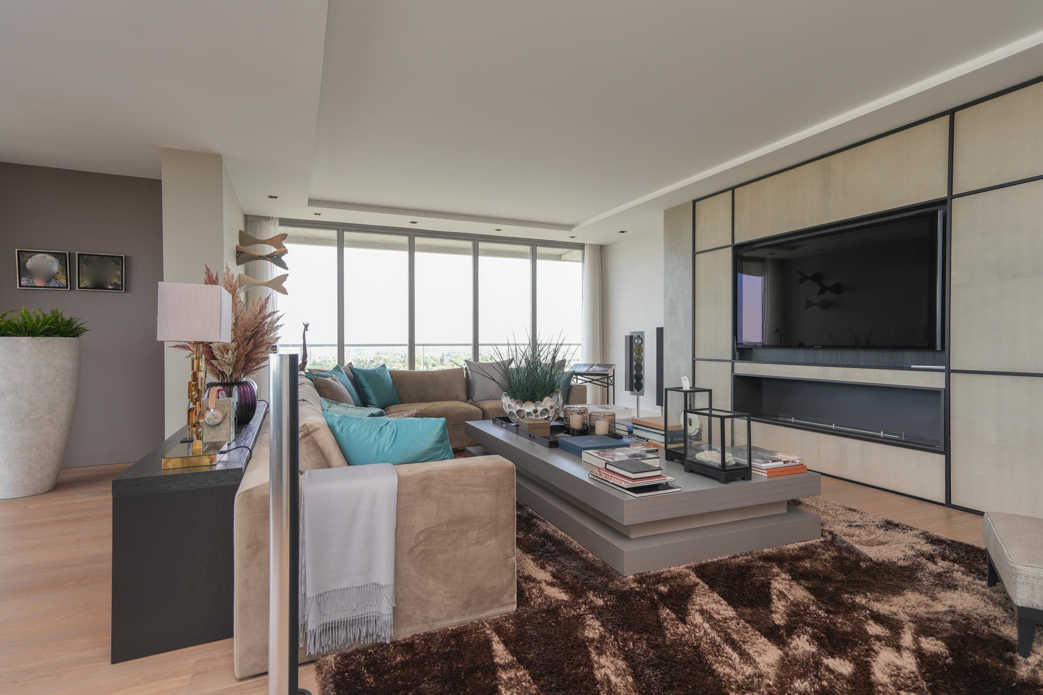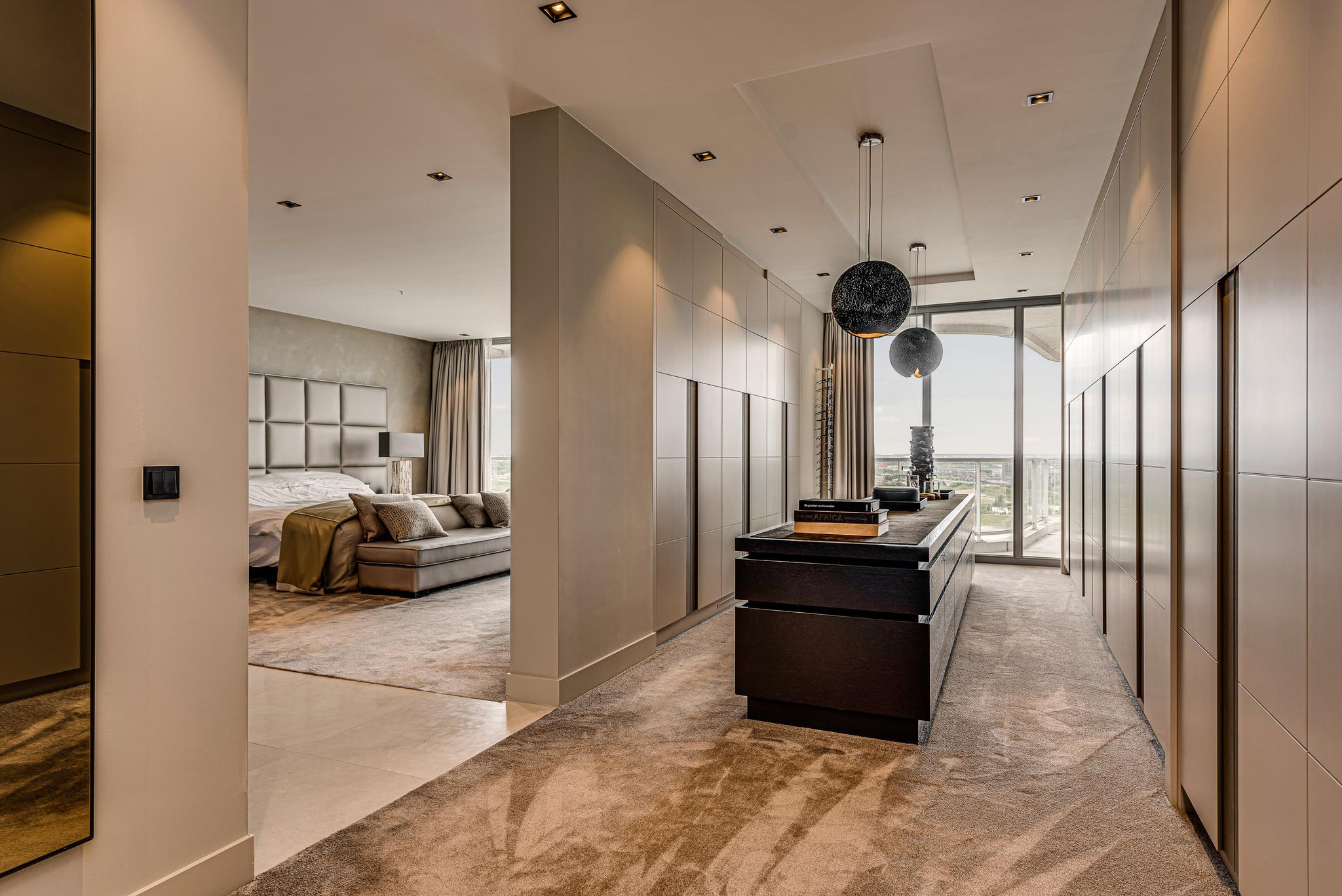 Tall glass doors, rich upholstery, exclusive wall treatments, stunning marble in the bathrooms and restrooms and the sophisticated furniture, everything is perfectly balanced with the distinct, opulent character of this penthouse.