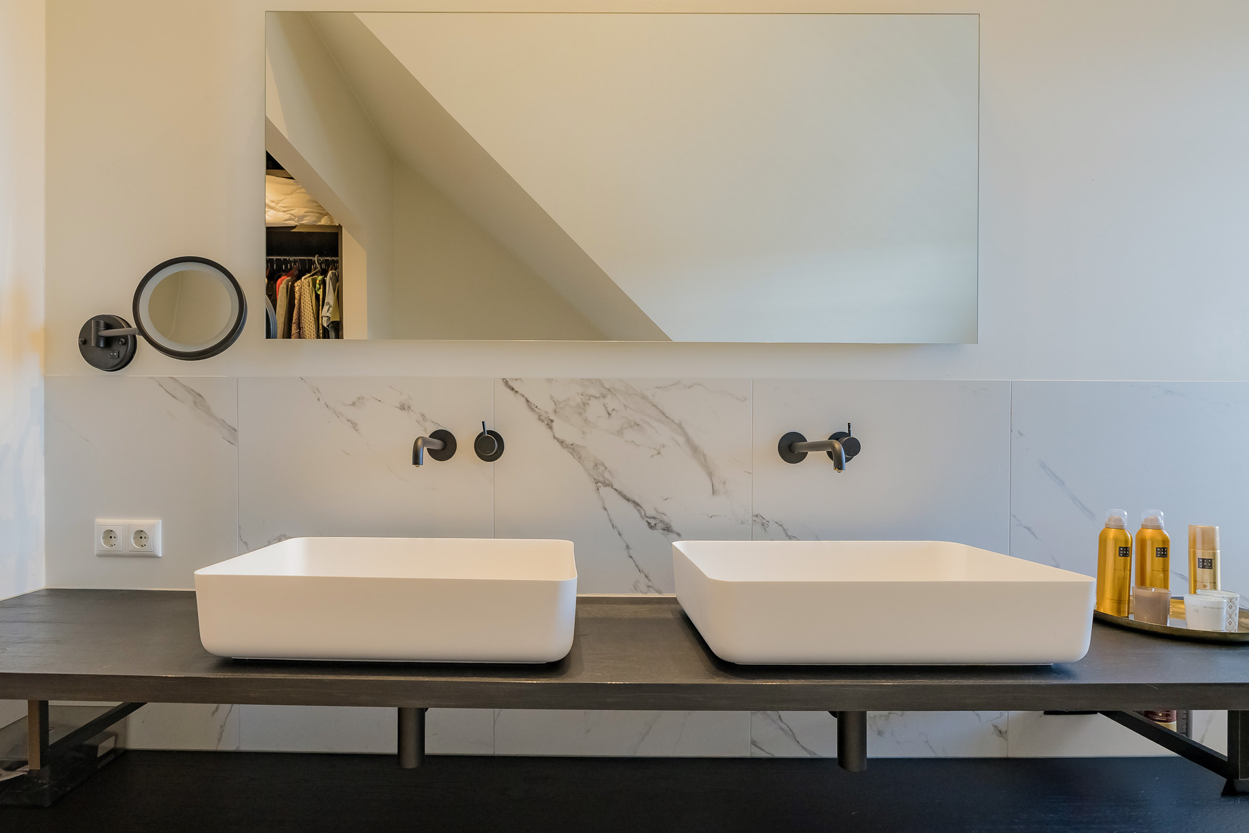 The second floor is a wonderful private retreat: a spacious bedroom with its own walk-in closet and a spacious, luxurious bathroom. An ideal place to completely unwind. There is also a laundry/boiler room with a Japanese toilet.
