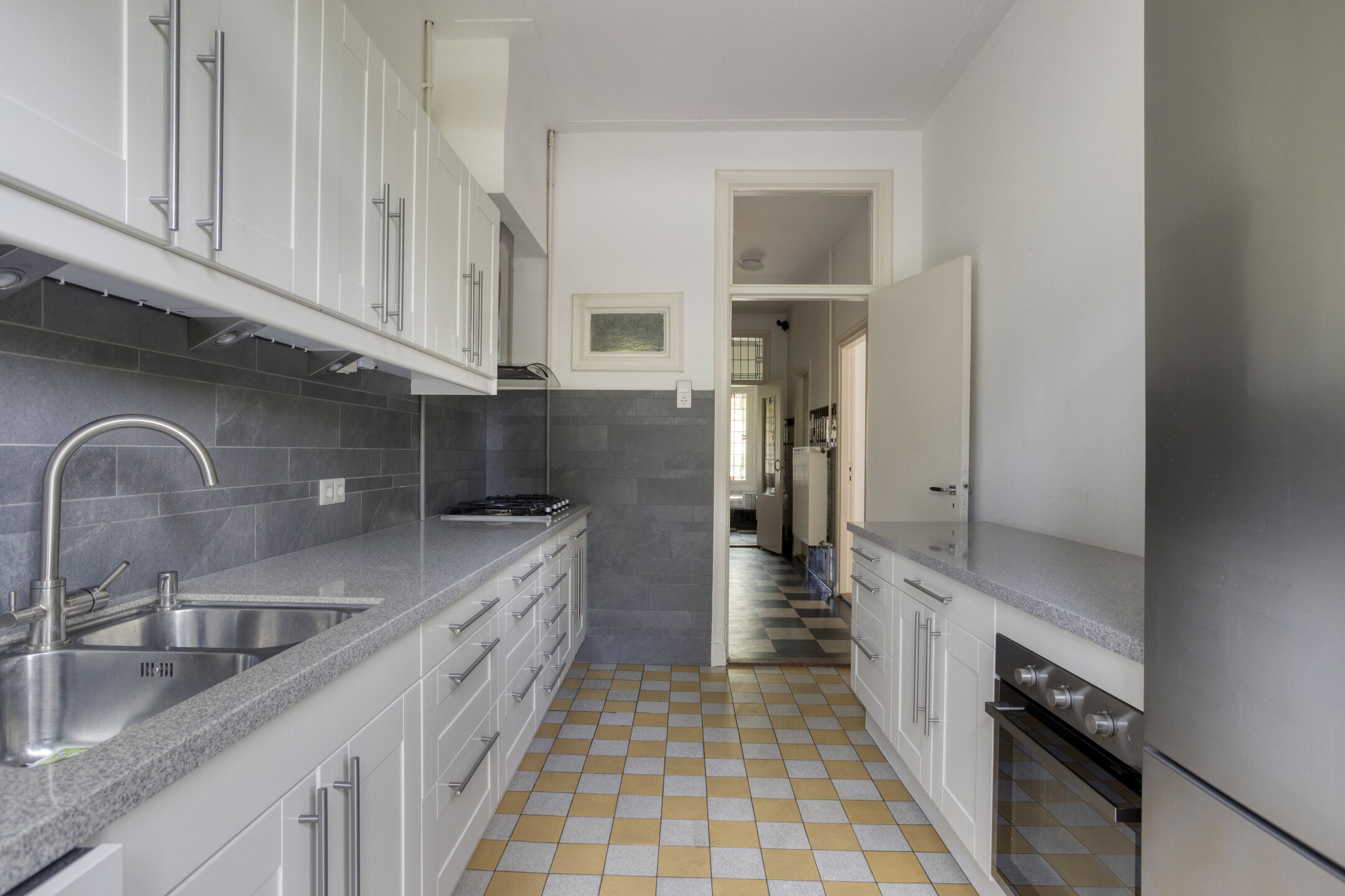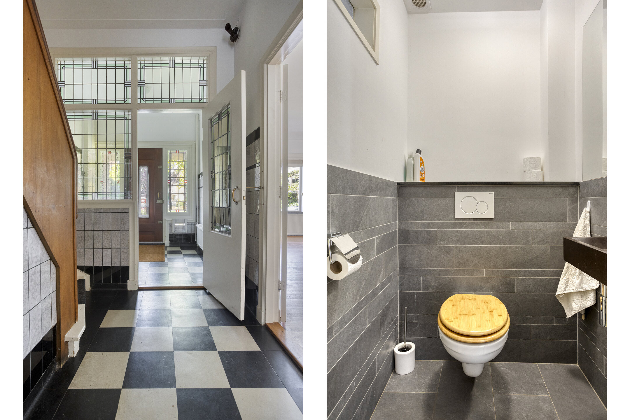 Many authentic details have been preserved, giving the property its characteristic atmosphere: high ceilings, stained-glass windows, wooden floors, and classic wainscoting. At the front lies a spacious front garden, while the deep, sunny back garden offers plenty of privacy and possibilities – ideal for a large family and wonderful outdoor living.