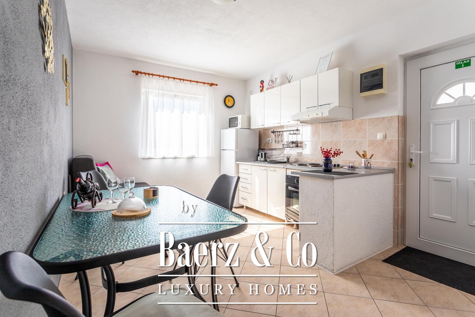 Čiovo, Okrug Gornji - apartment house located on a plot of land measuring 420 m², only 80 m from the sea.It is divided into four fully equipped apartments, which allows the continuation of the already established and profitable tourist rental.Layout: