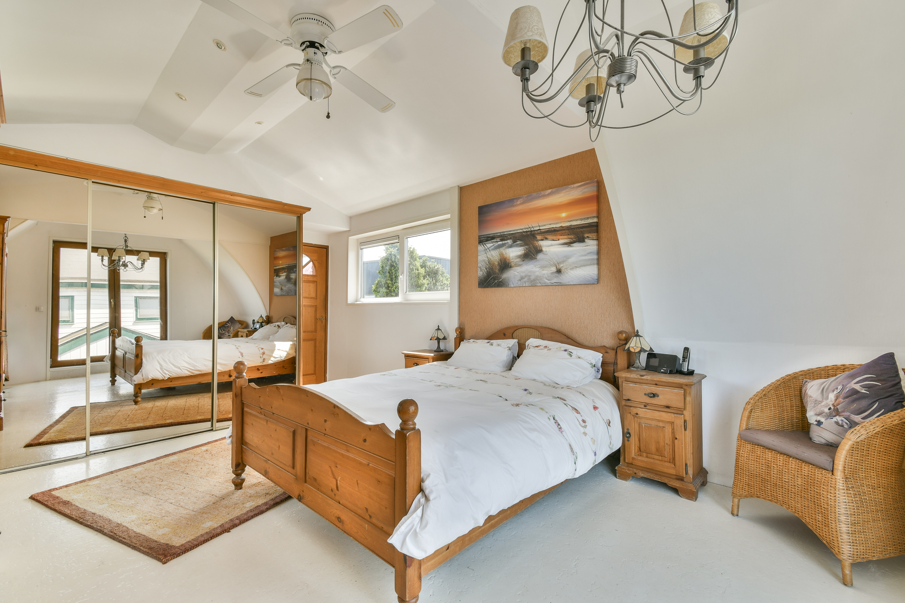 1st floor: Landing, sauna, third bathroom, two bedrooms including a spacious master bedroom with double doors / French balcony.