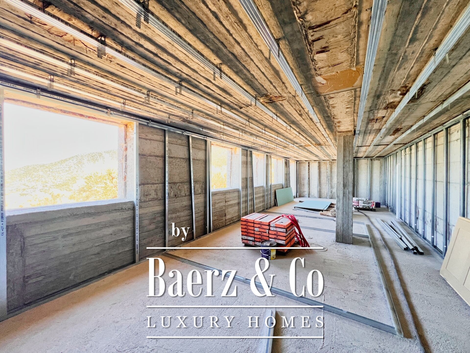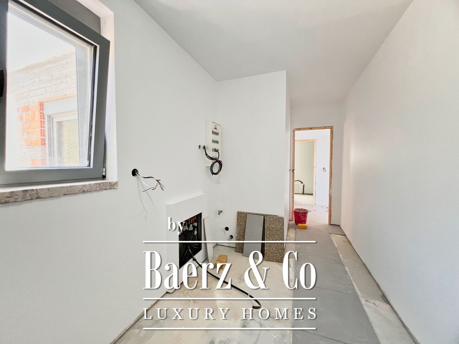 space. On the upper floor, which consists of 140 sq m of main spaces, one finds an ideal living room with kitchen, three bedrooms and two bathrooms. The courtyard is carefully landscaped and includes a 5x10 m swimming pool, as well as an elegant stone BBQ. The residence will be delivered complete, with an excellent selection of materials, offering sea views from every point. Access to the beach is easy and direct, while landscaping and tree plantings are planned in the surrounding area that will further highlight the natural beauty of the property.