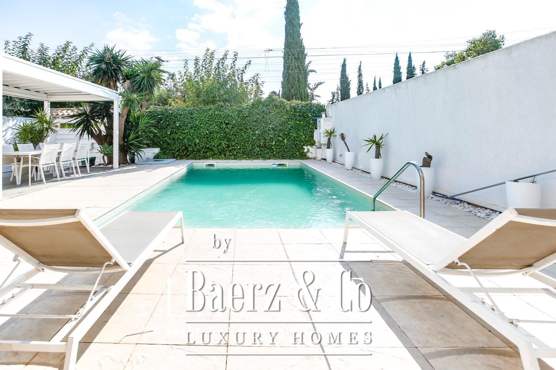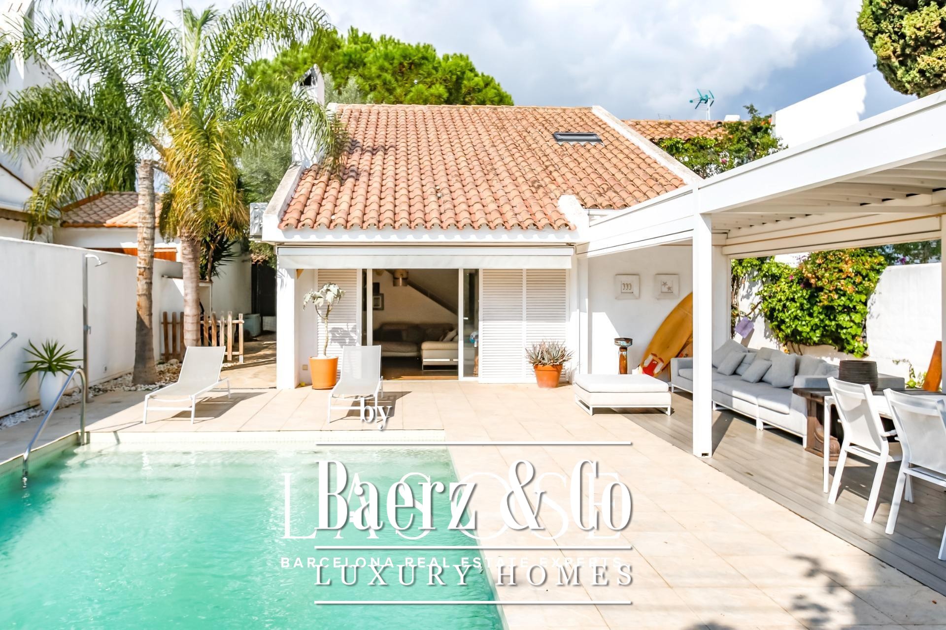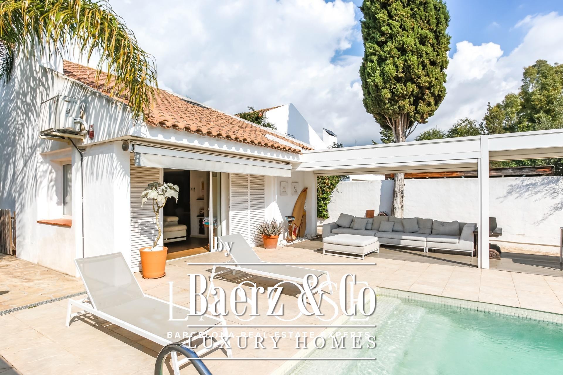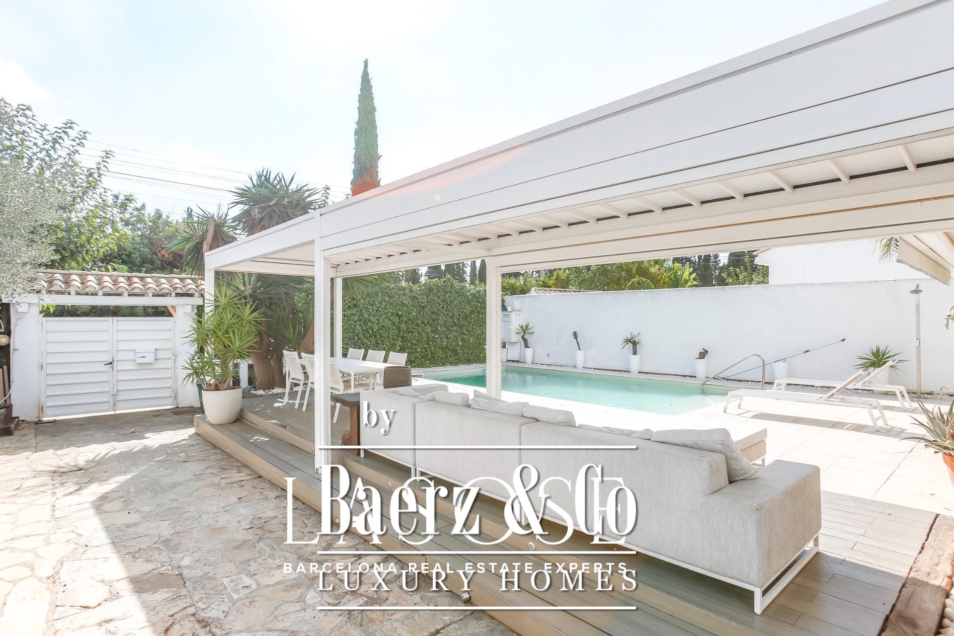 LASOSE is delighted to present this fabulous detached house located in the prestigious residential area of Los Viñedos, in Sant Pere de Ribes.. . This magnificent home perfectly combines Mediterranean charm, comfort, and contemporary functionality. Set on a spacious and well-maintained plot, it offers absolute privacy and a serene atmosphere, reinforced by 24-hour private security. It belongs to one of the most exclusive and sought-after communities in the Garraf region, known for its tree-lined streets, peaceful ambiance, and proximity to vineyards, tennis and padel courts, and high-quality restaurants.. . With a built area of 155 m², the house has been designed to provide a bright and well-balanced layout. Each space has been conceived to make the most of natural light and to create a seamless connection between the interior and exterior areas. The result is a home that invites relaxation and conveys a true sense of wellbeing in every corner.. . A charming landscaped entrance leads to the main door. Outside, a lush garden, private swimming pool, and several lounge areas create the perfect setting to enjoy the Mediterranean lifestyle. Whether hosting gatherings with friends, reading under the trees, or dining al fresco, the outdoor space becomes a natural extension of the interior comfort.. . Large sliding windows connect the living-dining room directly with the terrace and garden, allowing sunlight to flood the interiors and creating a warm, welcoming atmosphere. The spacious living room, centered around an elegant fireplace, combines elegance and functionality. On this same floor, there is also a double bedroom and a full bathroom, ideal for guests or as a quiet workspace..