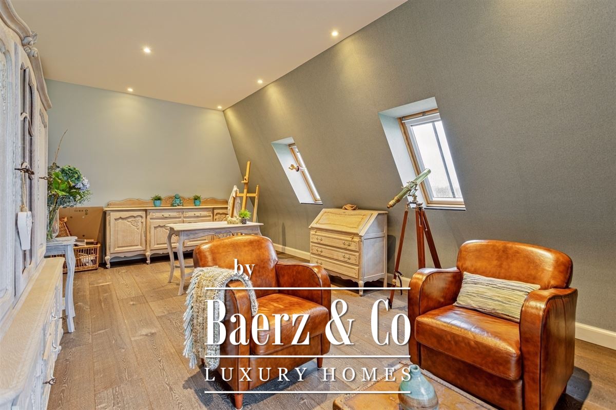 This duplex apartment Schilde stands quietly just outside the town center, situated in Zandhoven yet easily accessible from Schilde, and offers sweeping, uninterrupted vistas over the Albertkanaal. The property blends understated design with tailored comforts across its 364m² living area. On arrival, a landscaped front garden leads you to multiple parking options, including a garage with automated entry, carport, and a extended basement of 182m². The private entrance hall, accessible via lift or stairs, introduces a thoughtfully arranged interior highlighted by oak and natural stone finishes.
