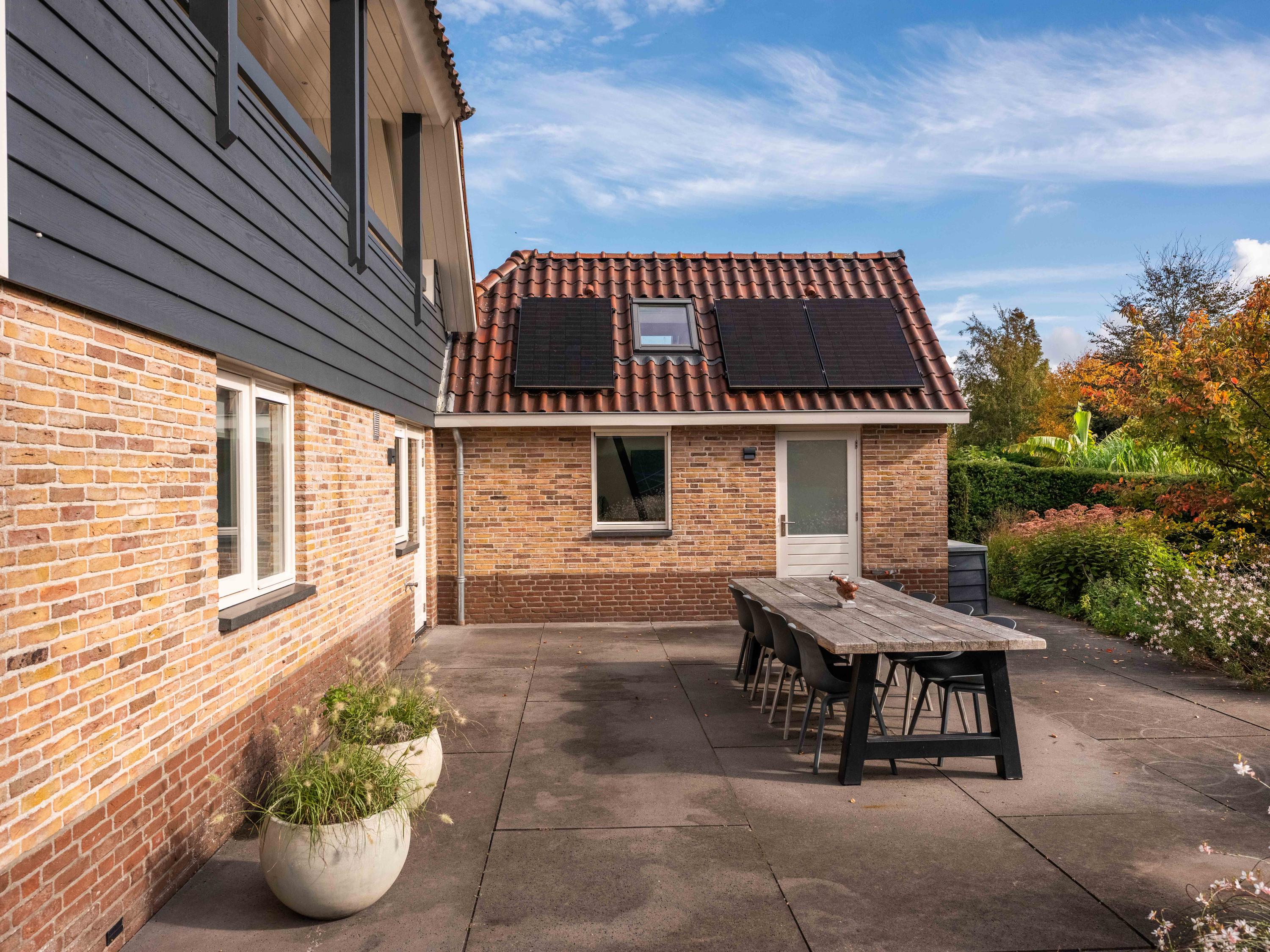 The back garden is very spacious and well landscaped. There is a lovely veranda with a wood-burning stove, seating area, storage space, electricity, lighting and (cold) water. There is also a spacious chicken coop in the garden, which will remain.