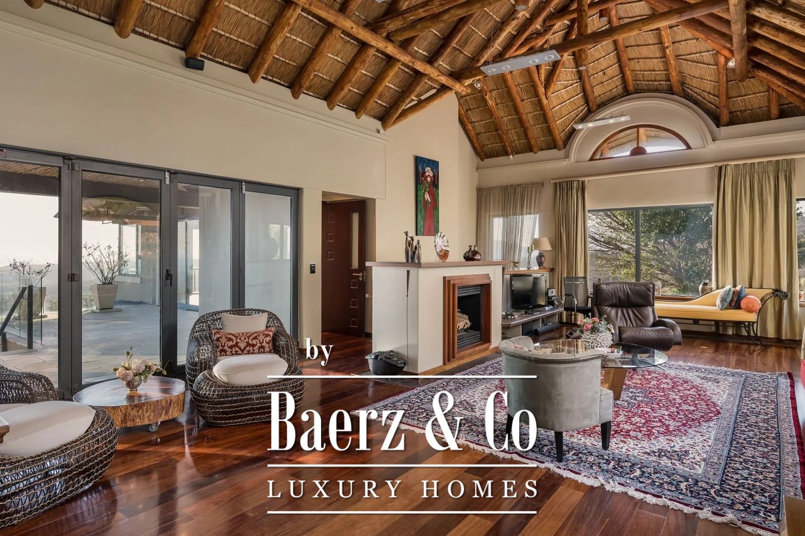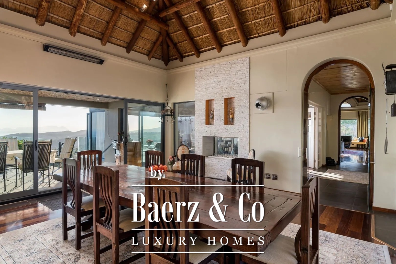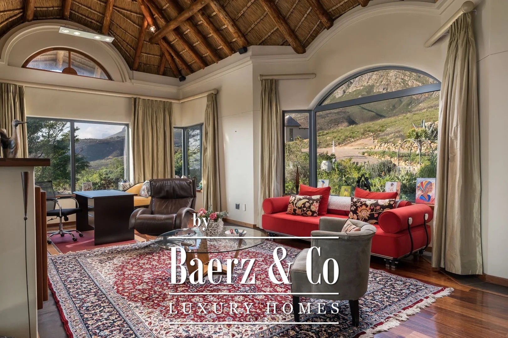 The Dutch owners built this fabulous thatched manor house in 2006, complete with gatehouse and a separately located guesthouse/manager’s residence on an extraordinarily beautiful site. The entire property is designed in the characteristic African rondavel style. It has become an extraordinary dream home offering all contemporary European luxury and comfort; nothing is lacking.